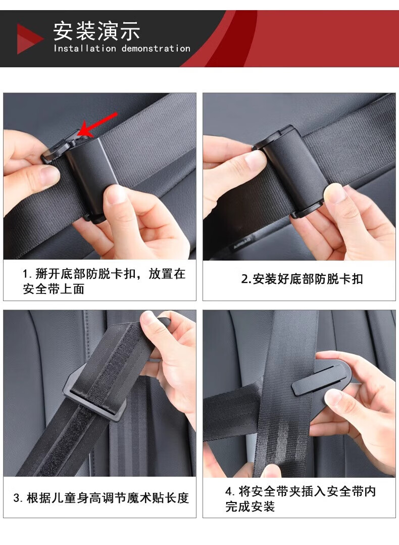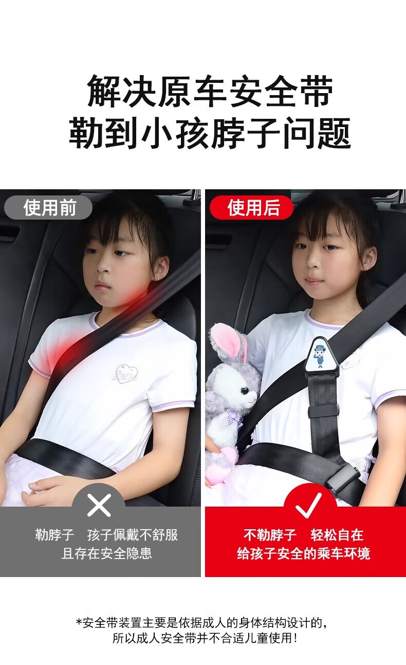接运猫汽车儿童安全带调节固定器专用座椅防勒脖简易辅助带限位器护肩套 【黑色-可调节松紧 固定限位】