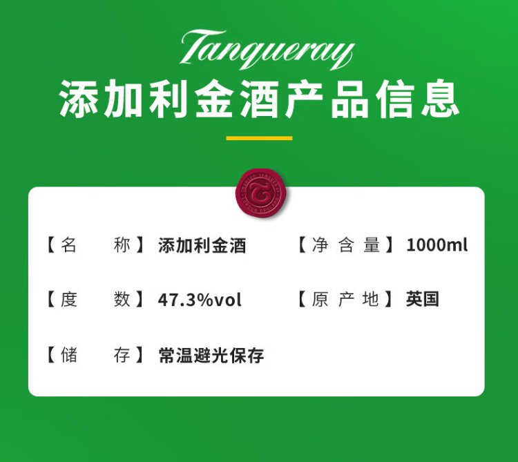 Tanqueray (TANQUERAY) original imported wine, gin, base liquor, gin, gin, tanqueray gin 1000ml