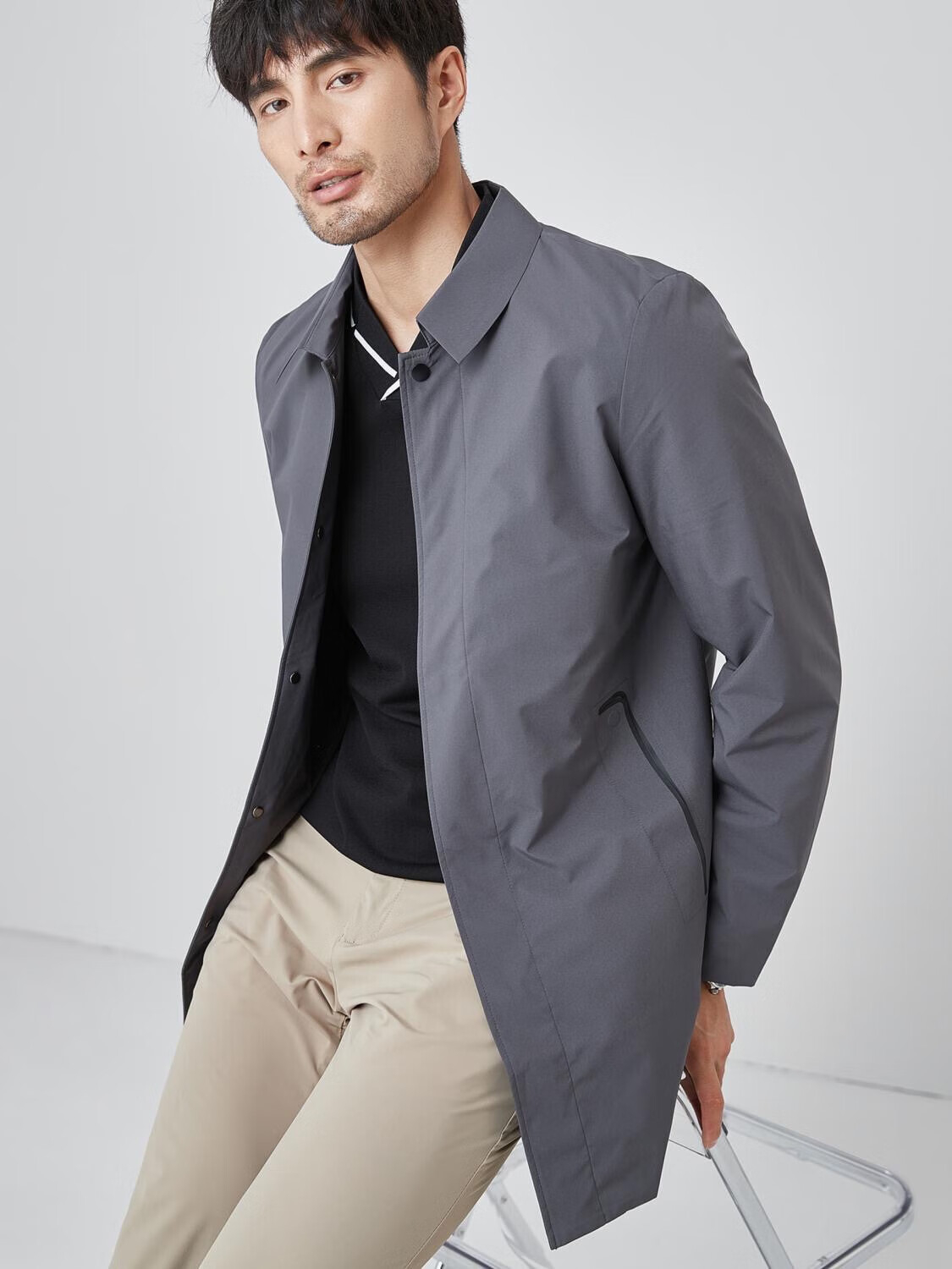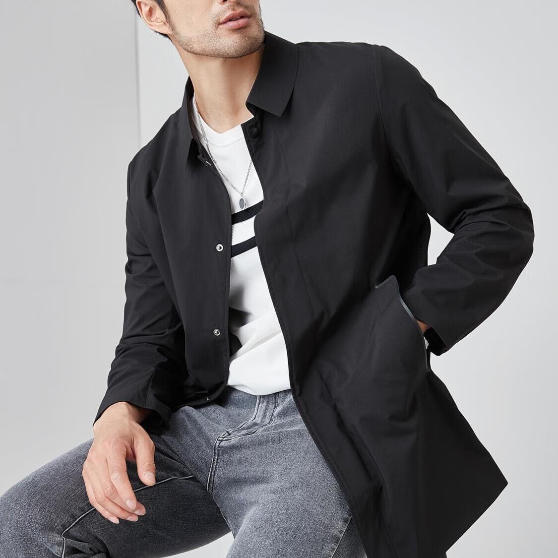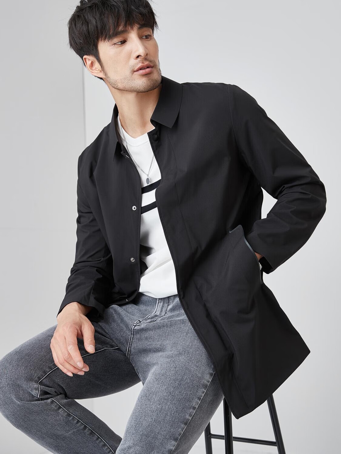 Su Lai Hangzhou Italian-French men's windbreaker high-end lapel mid-length men's 2025 spring simple loose thin coat black M