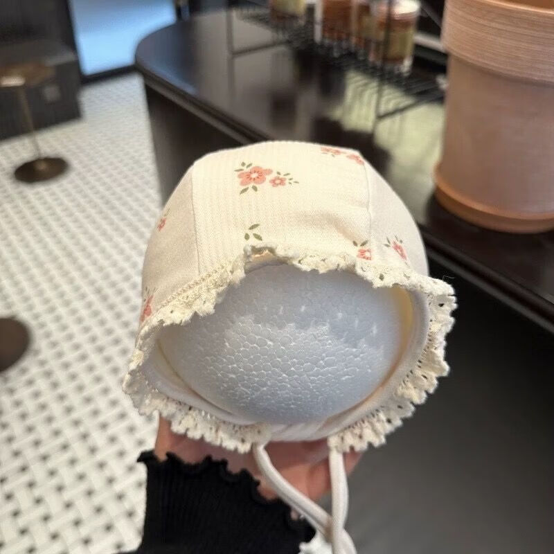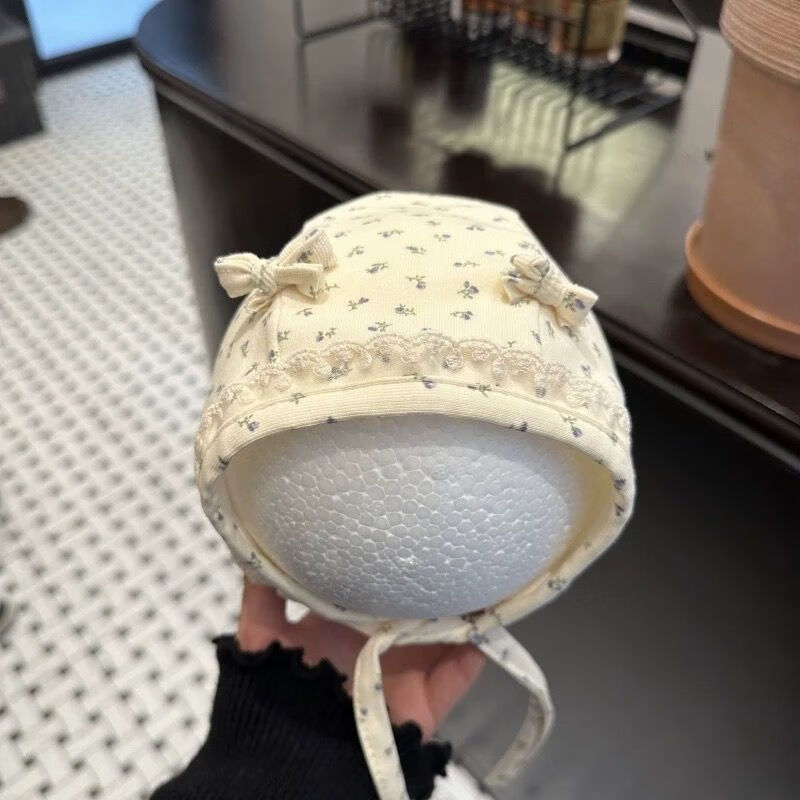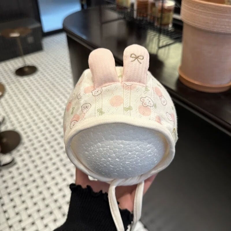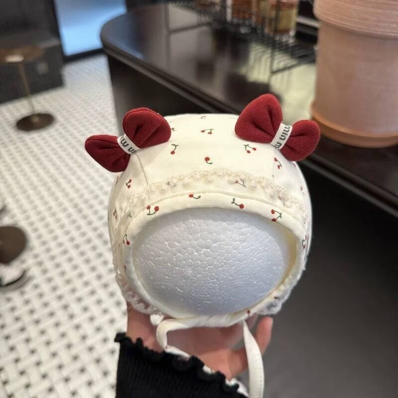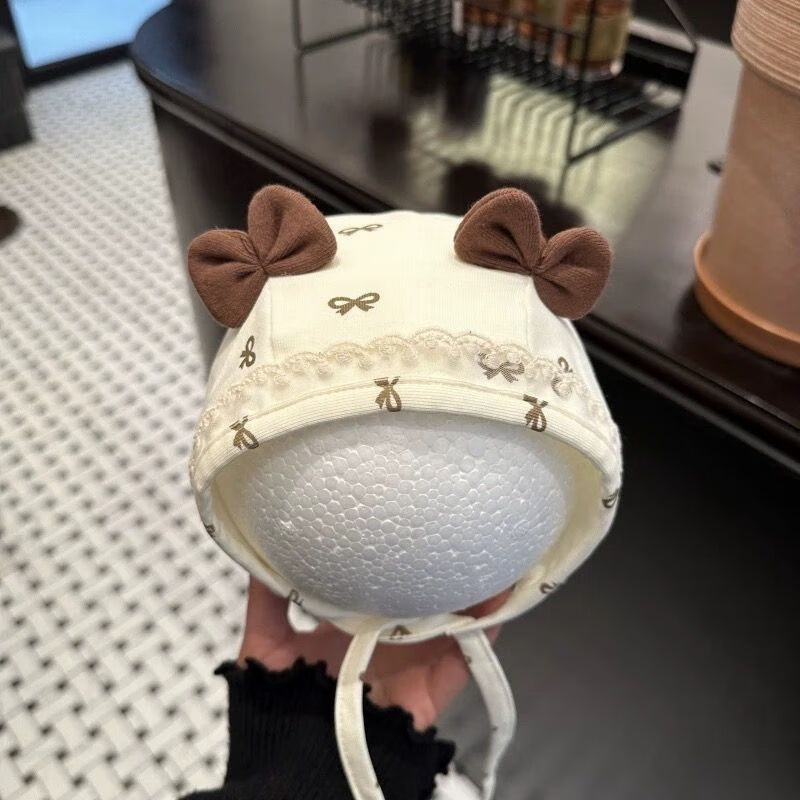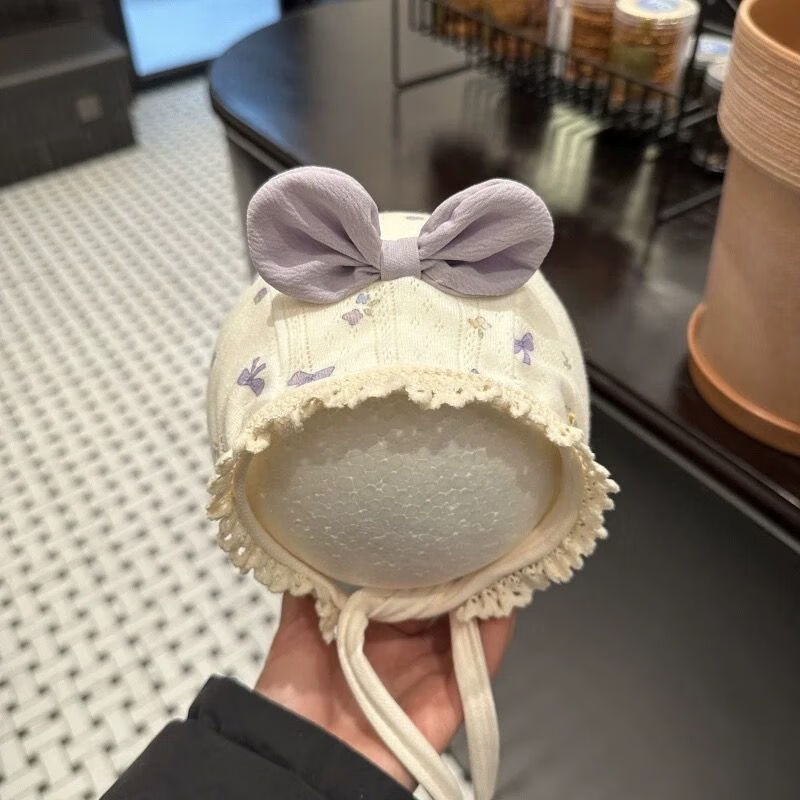 宝宝开春帽子可爱护耳帽可爱系带婴儿套头帽春夏小月龄甜美洋洋 粉色蝴蝶结 2个月-12个月
