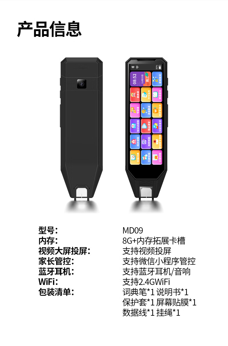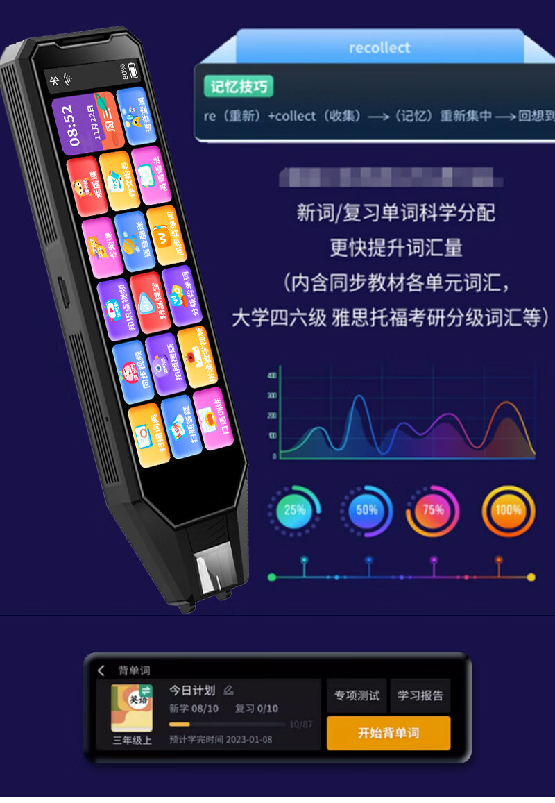 登科郎俄语翻译笔专业版离线翻译扫描拍照日语韩语西班牙语点读笔德语多国语言小语种学生专用全科学习笔 黑色 8GB 默认翻译法语