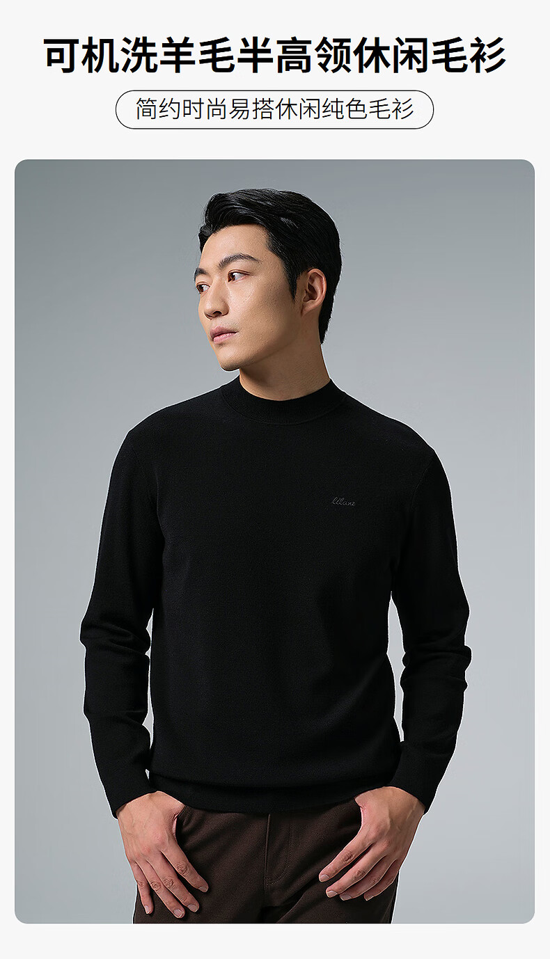 利郎可机洗羊毛衫男冬季毛衣2025新款商务男士毛衫保暖针织衫打底衫 黑色(G5DMS0081S) XL 175/88A