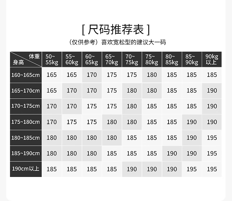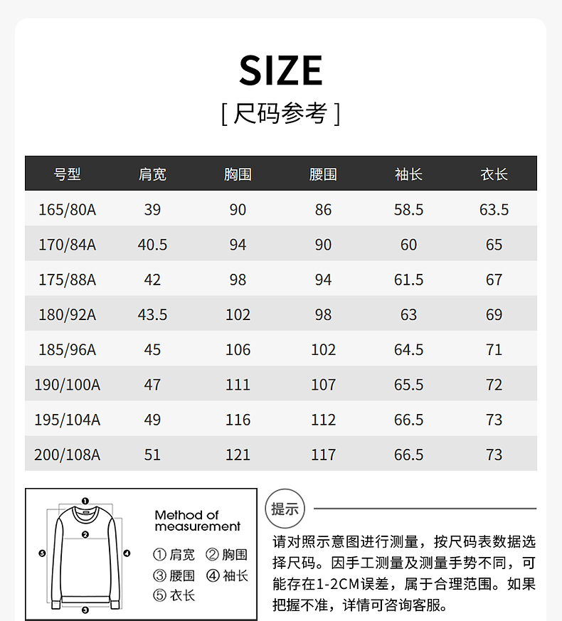China (cm) 160-165/84-86 165-170 / 88-90 167-172 / 92-96 168-173 / 98-102 170-176 / 106-110