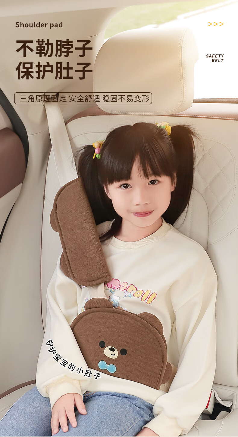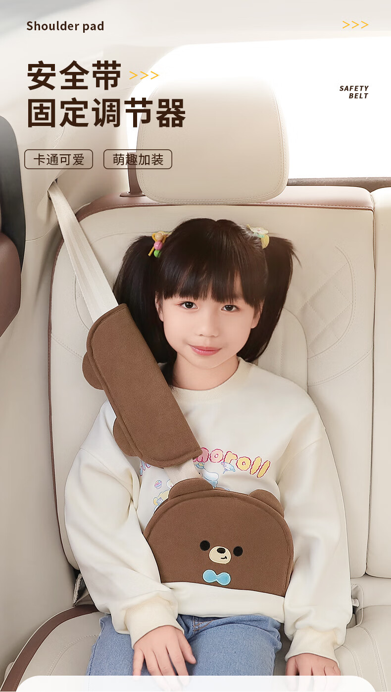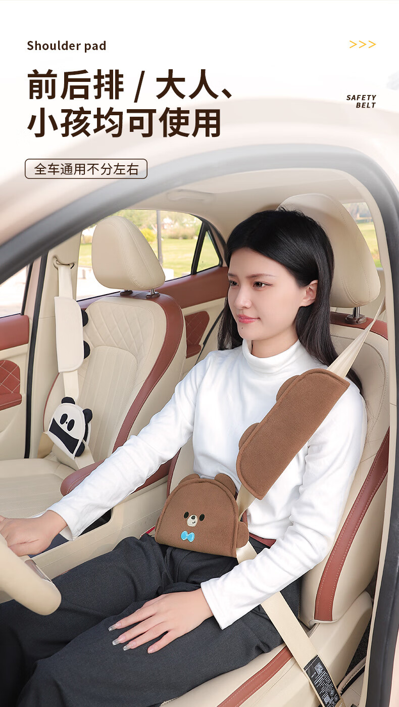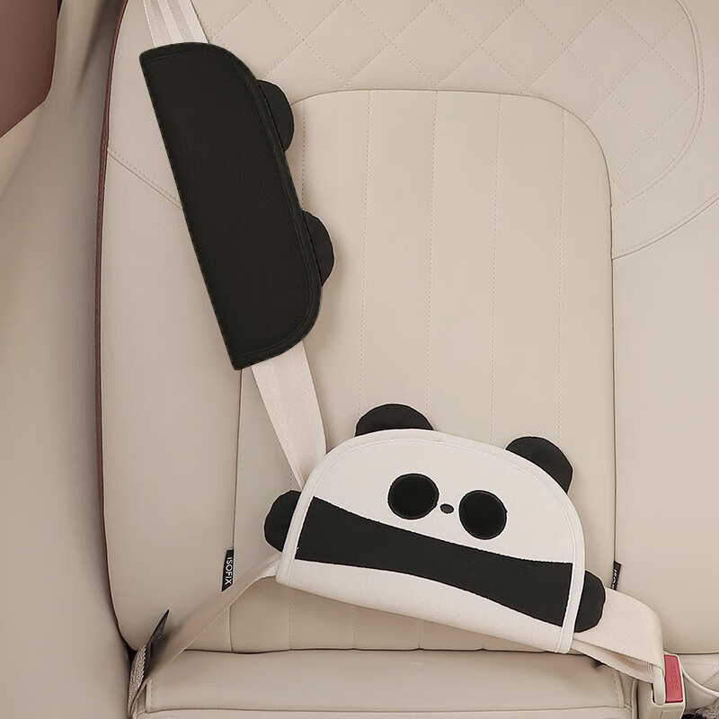 汽车儿童安全带护肩卡通可爱车载宝宝睡觉防勒脖保护套车用调节器 熊猫-【护肩+调节器】