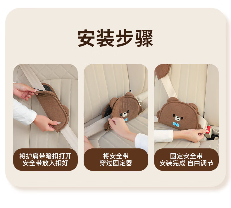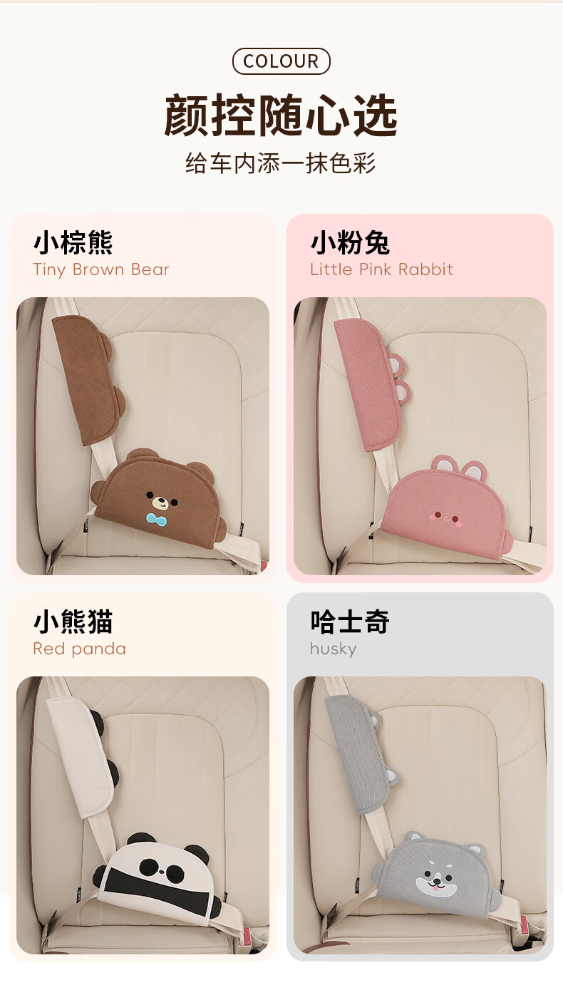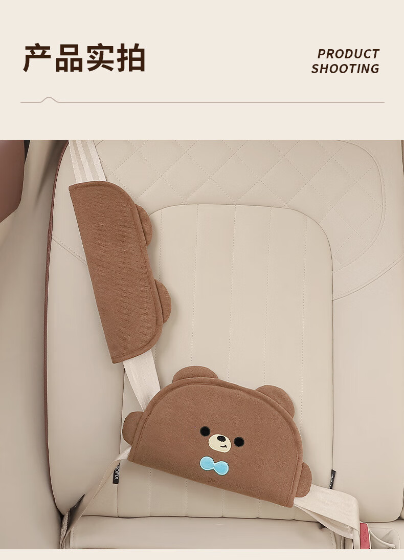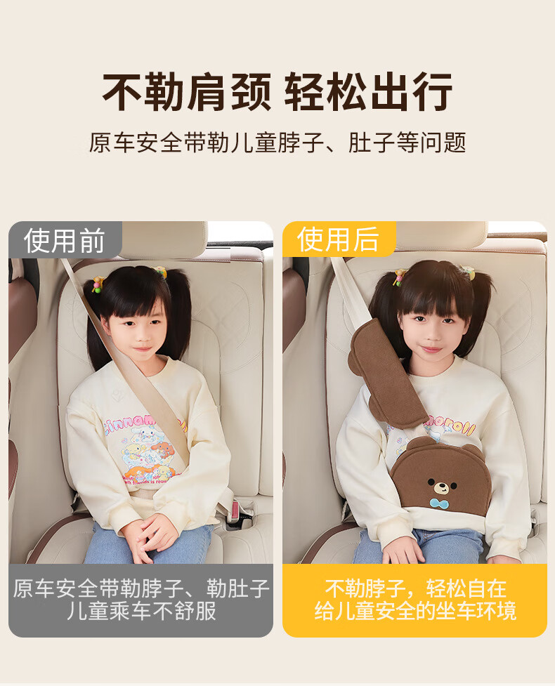 汽车儿童安全带护肩卡通可爱车载宝宝睡觉防勒脖保护套车用调节器 熊猫-【护肩+调节器】