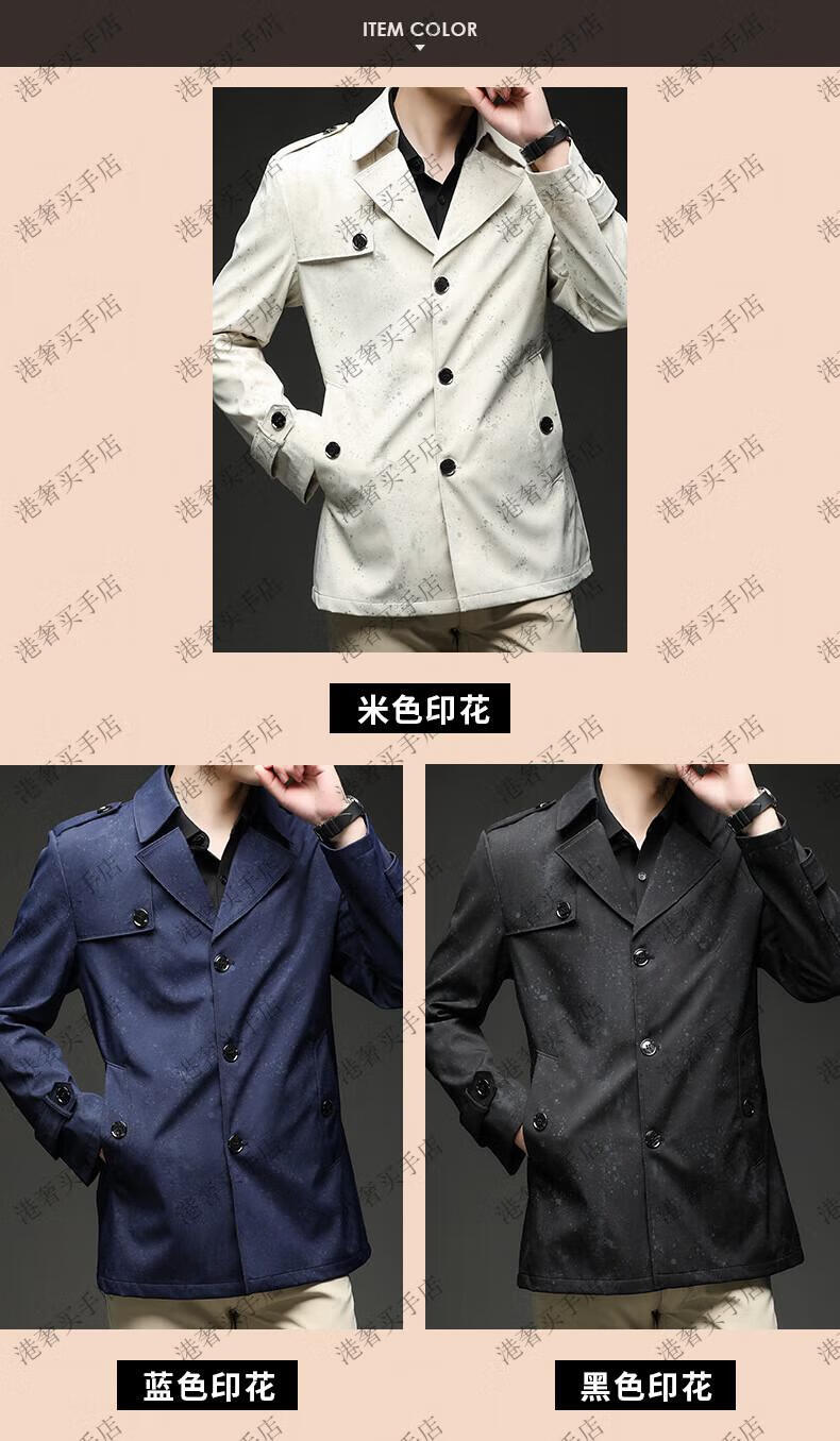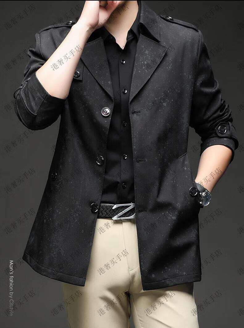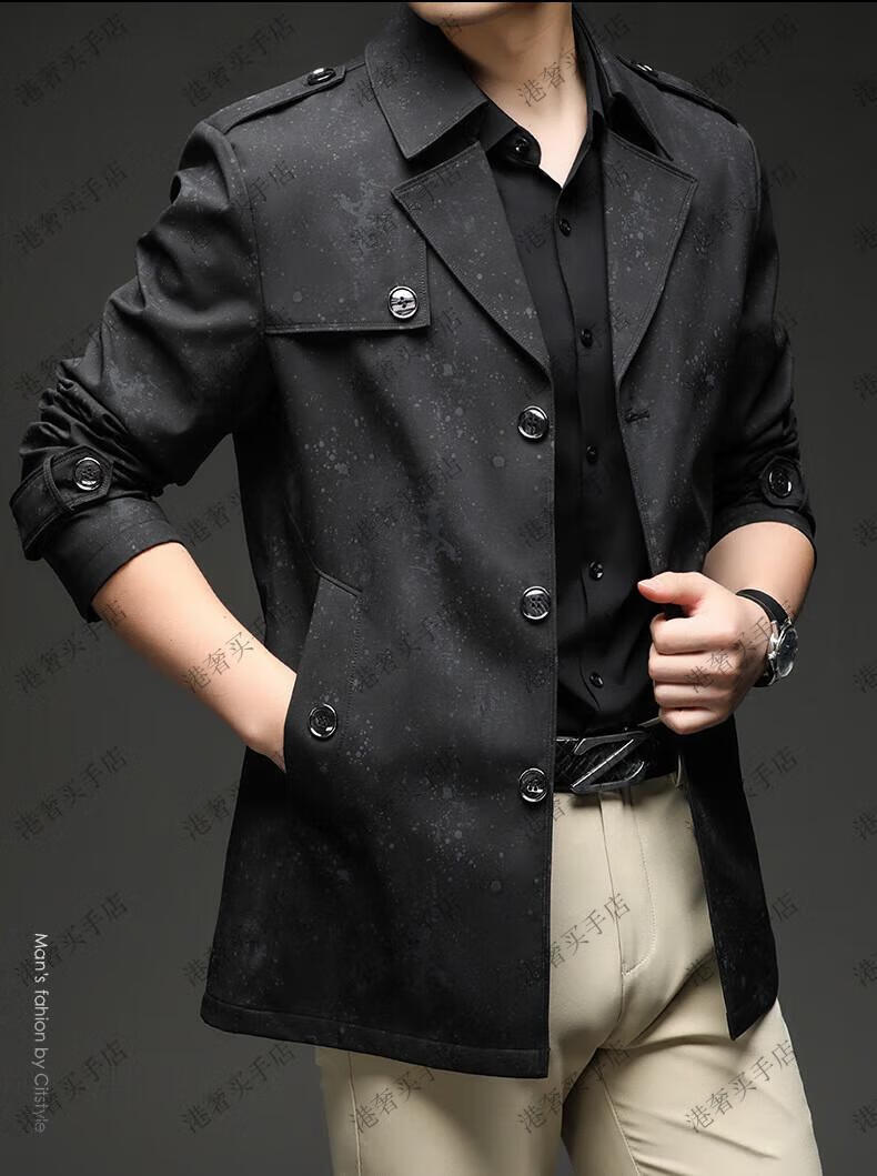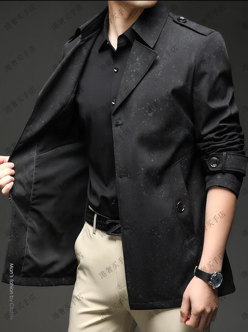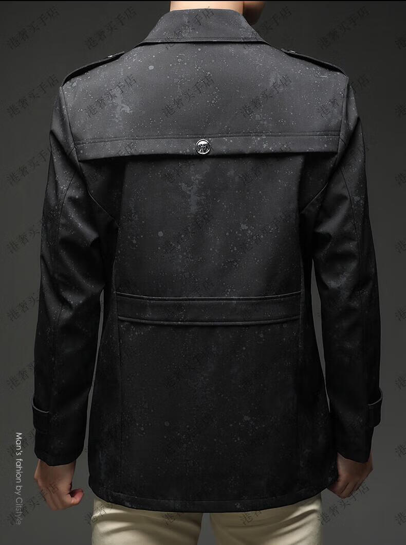 SUSTYLE高端男装2025年春秋新款印花短款风衣男青年时尚潮牌风衣外套气质 黑色 M
