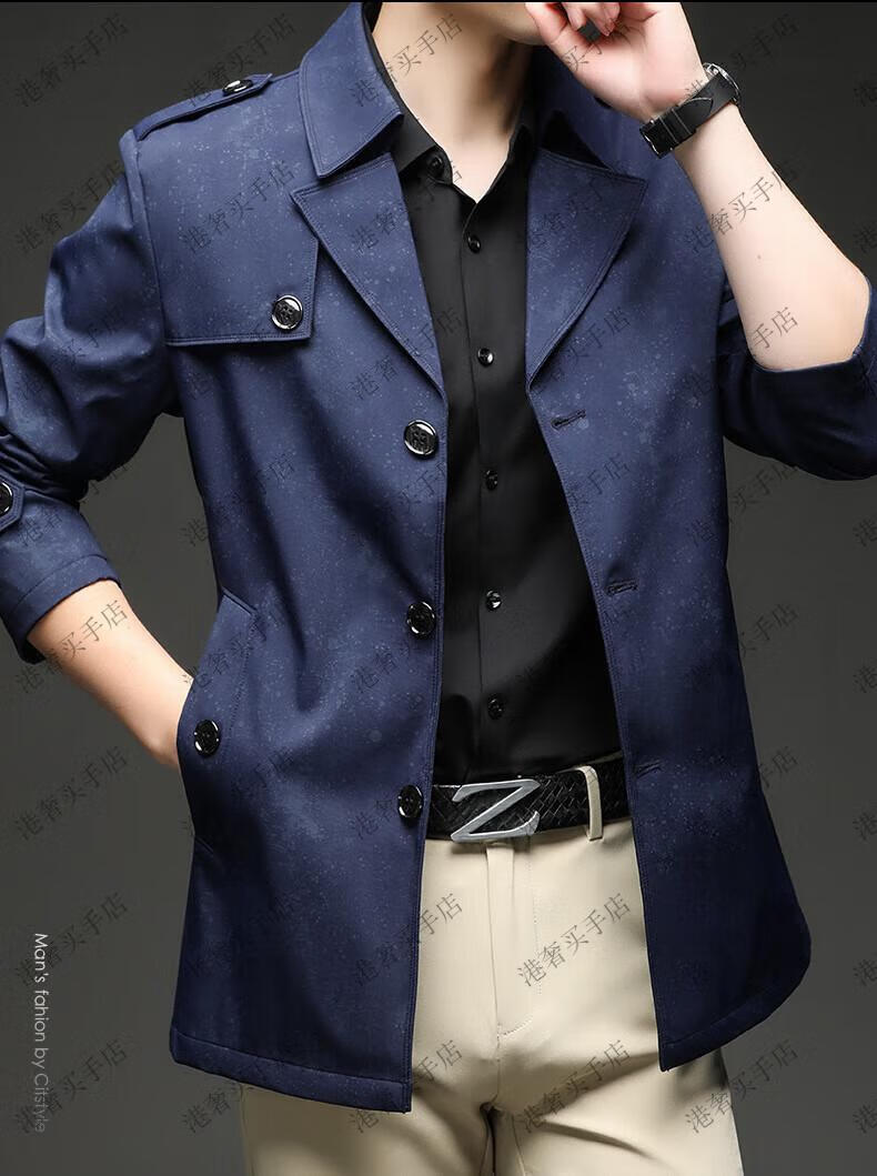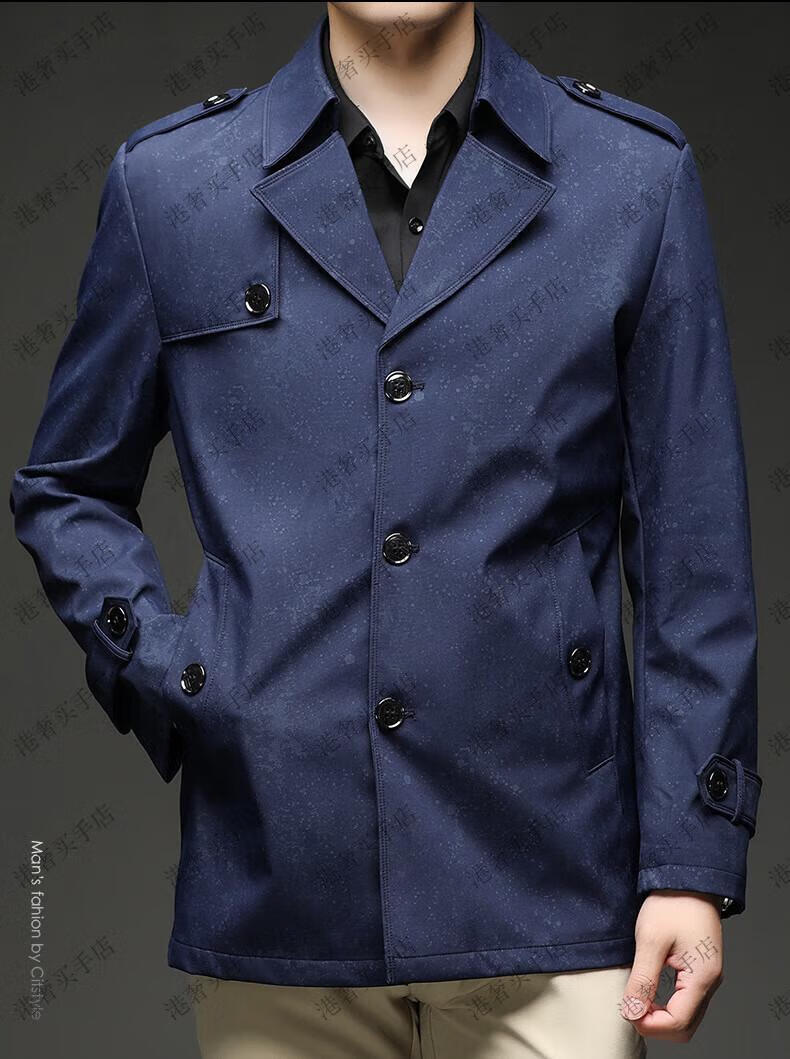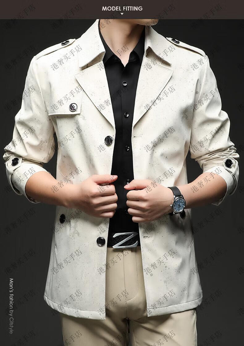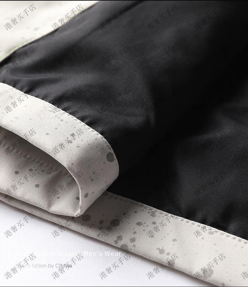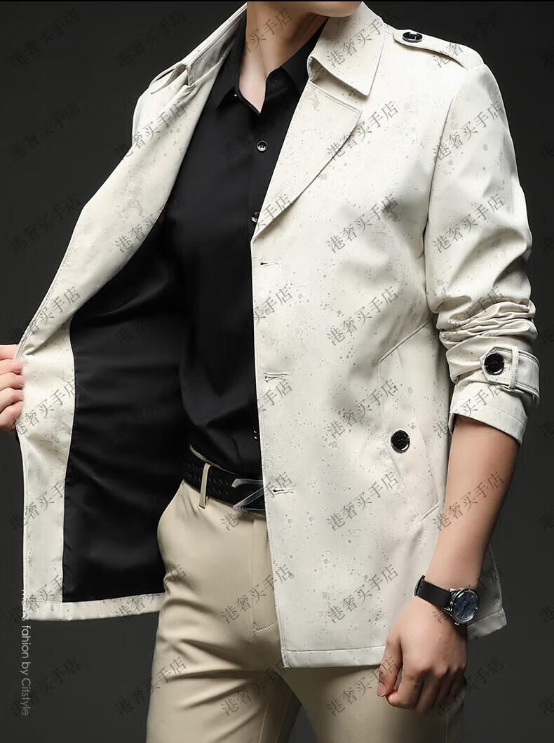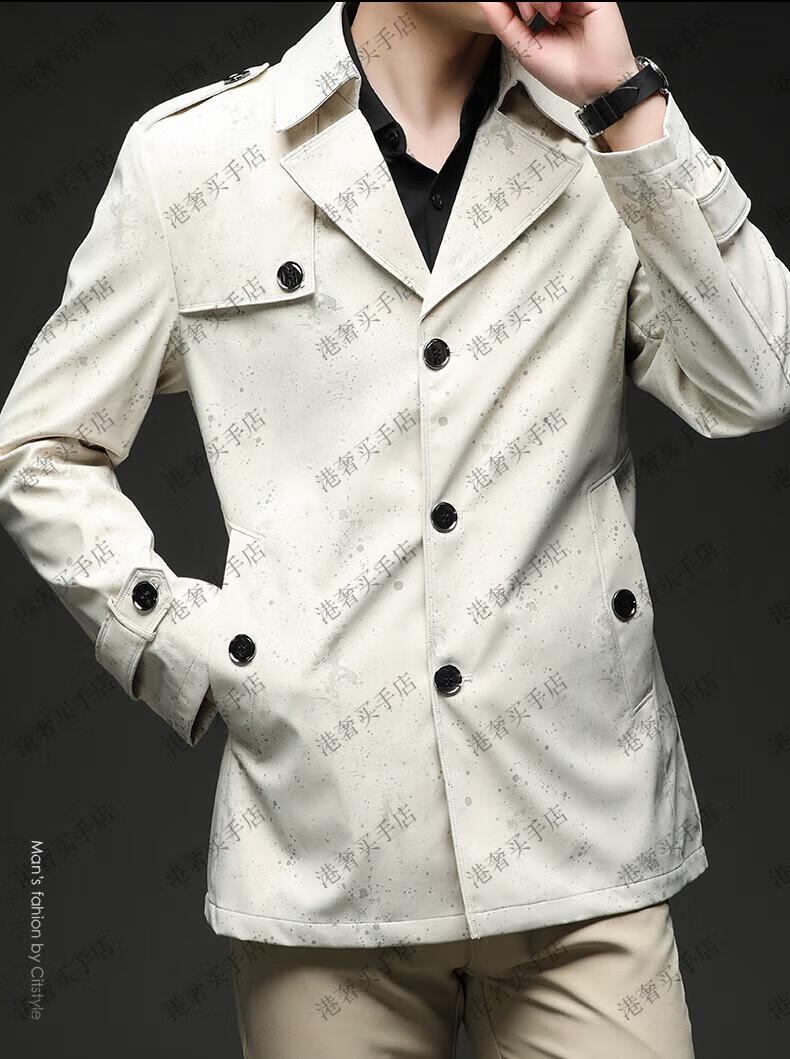 SUSTYLE高端男装2025年春秋新款印花短款风衣男青年时尚潮牌风衣外套气质 黑色 M