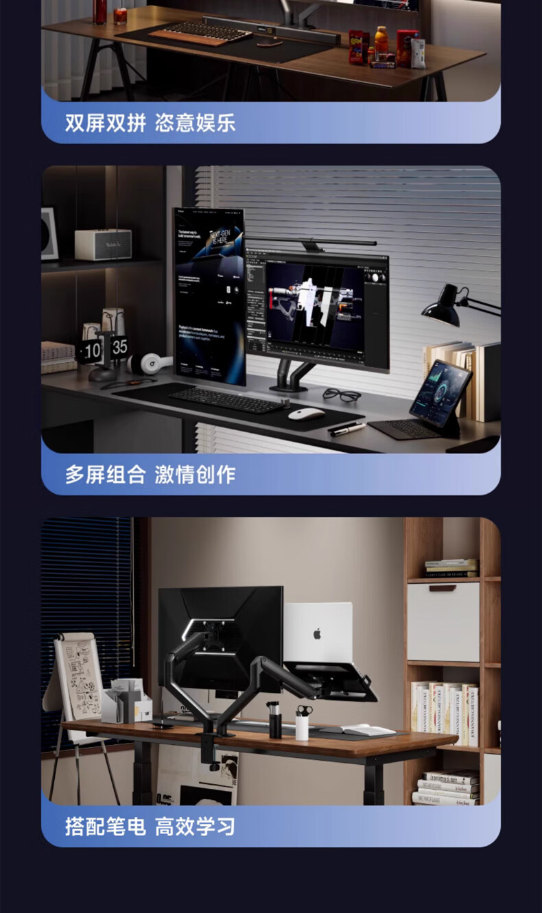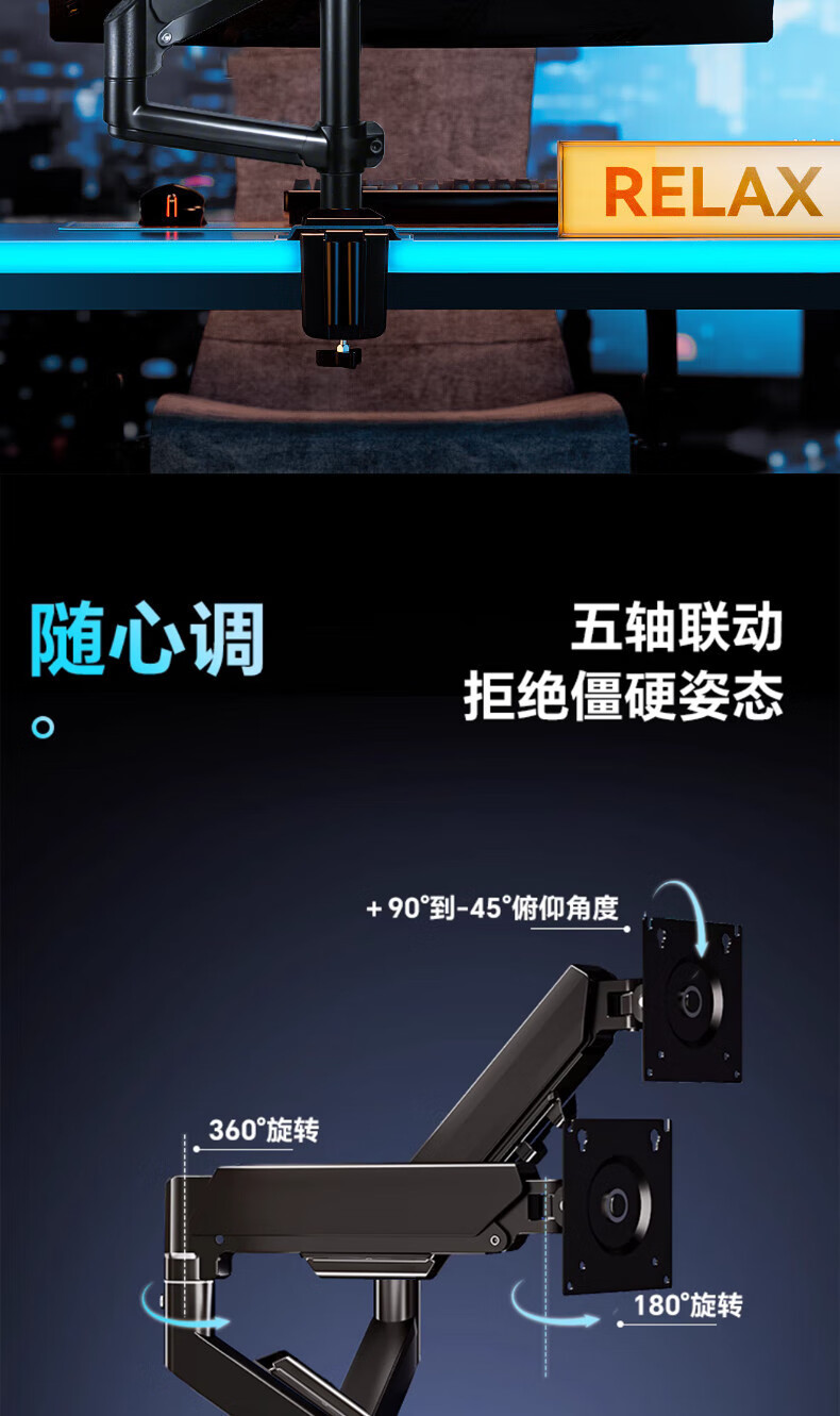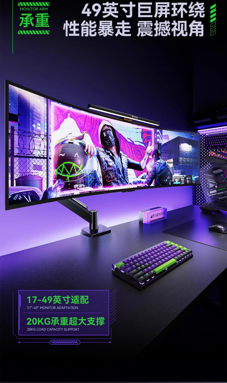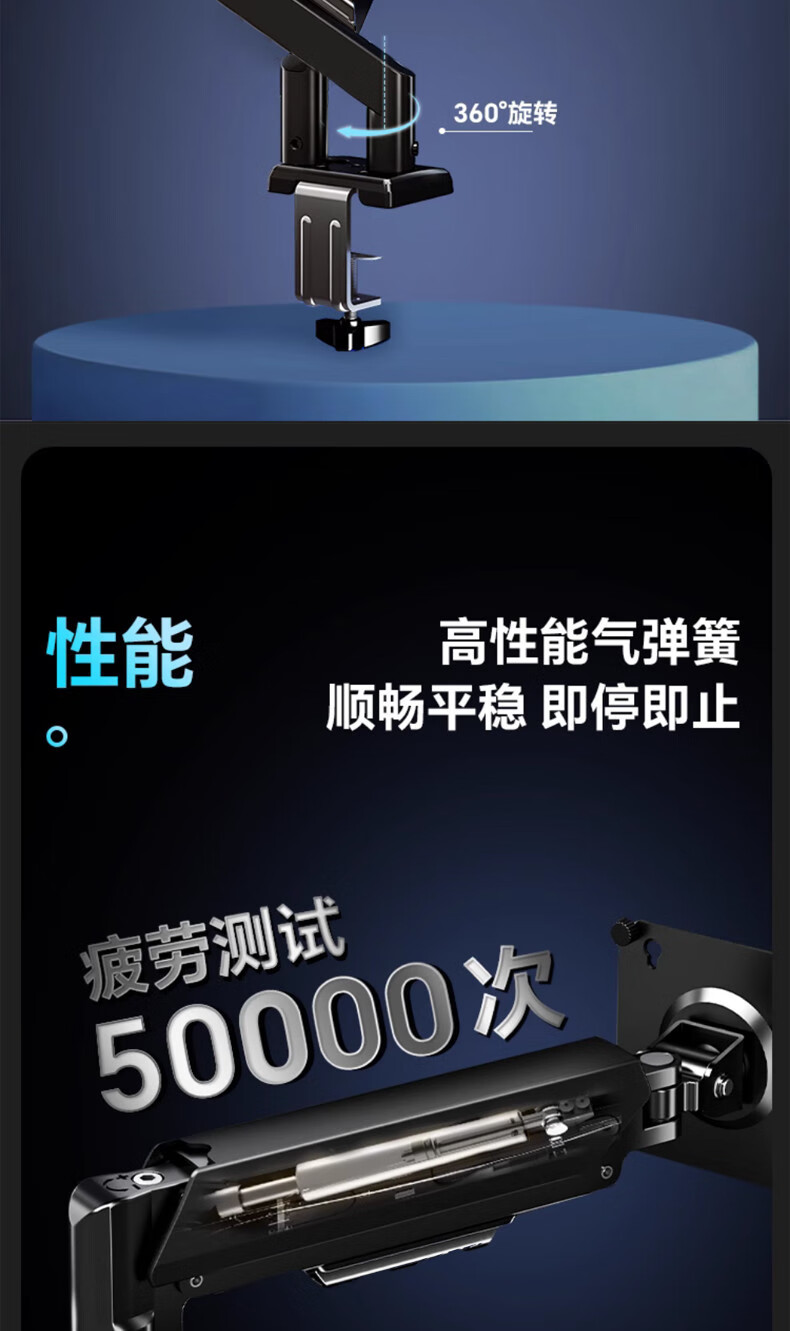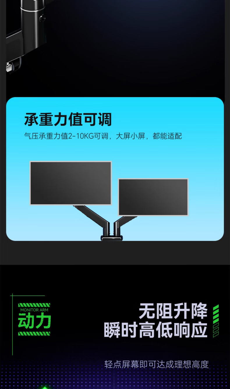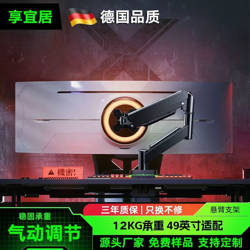 HKC适用享宜居显示器北弧支架机械增高悬臂旋转电脑承重屏幕升降打孔底座 单屏立柱气动升级可倒挂【17-32寸】 升级12公斤高承重