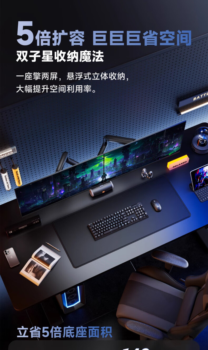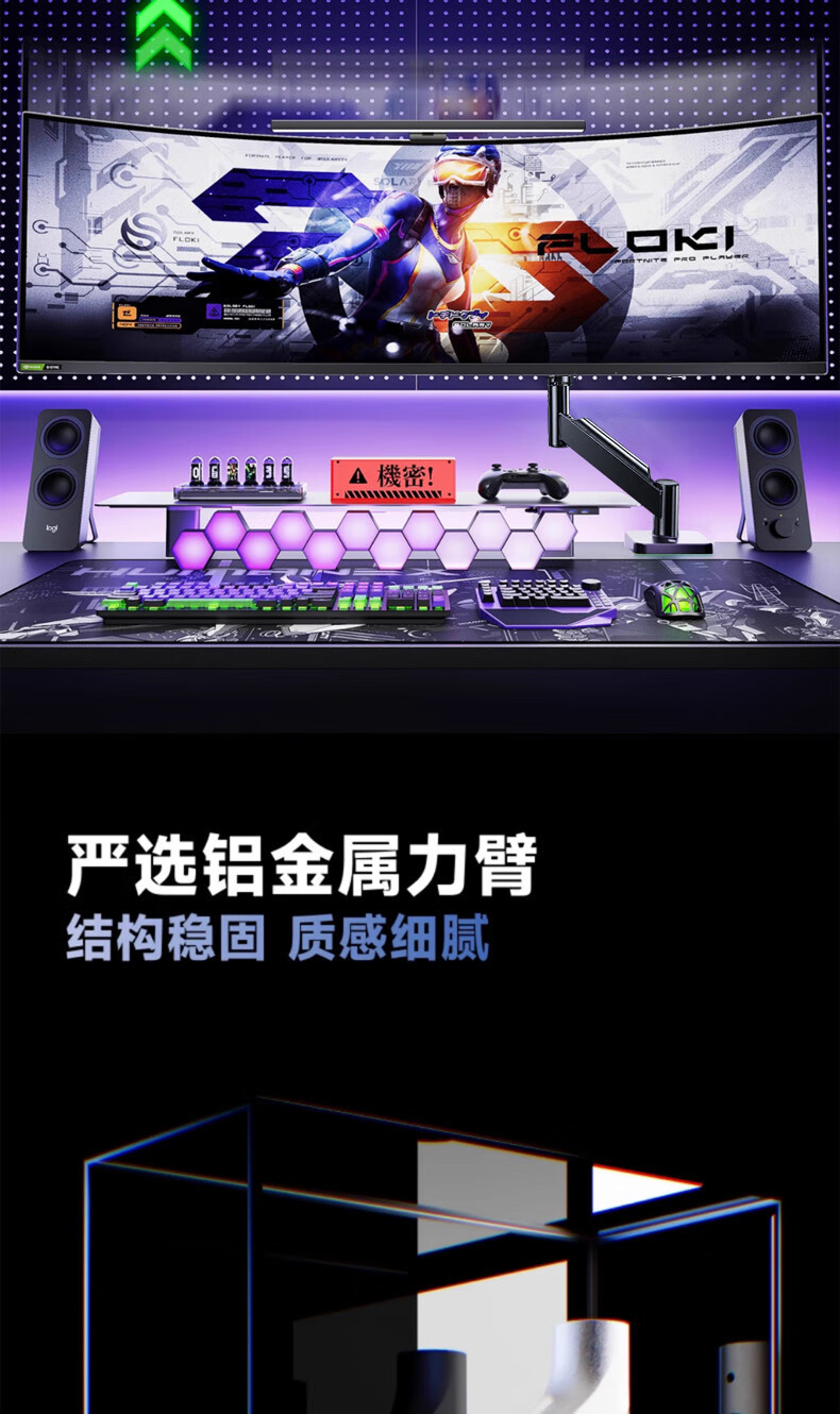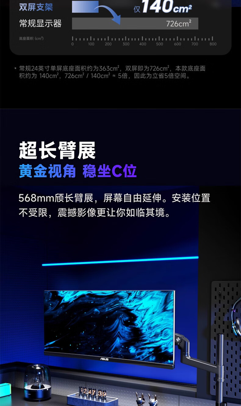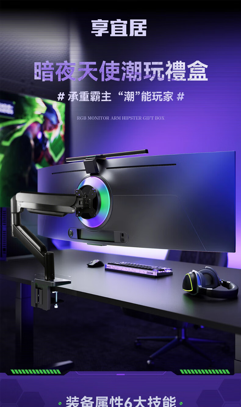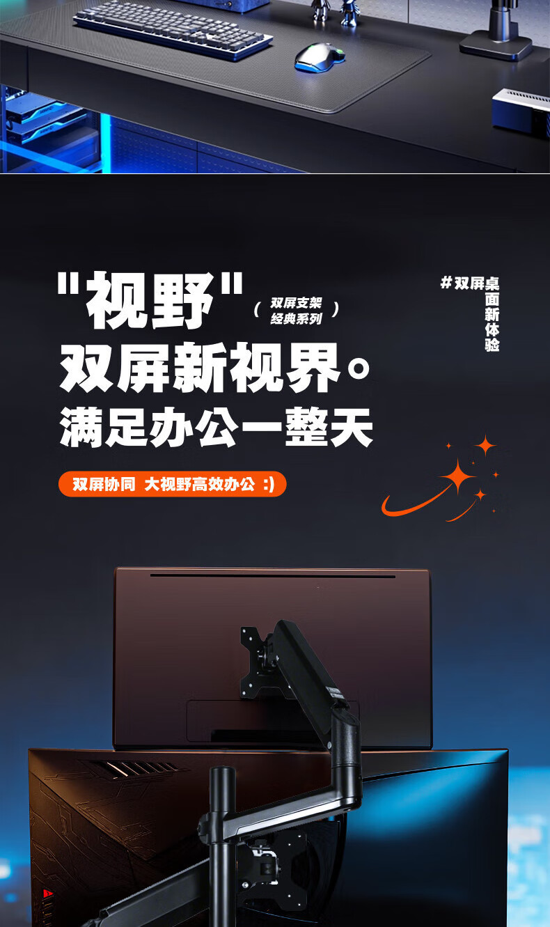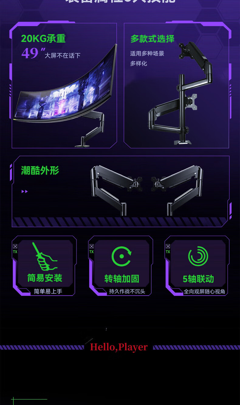 HKC适用享宜居显示器北弧支架机械增高悬臂旋转电脑承重屏幕升降打孔底座 单屏立柱气动升级可倒挂【17-32寸】 升级12公斤高承重