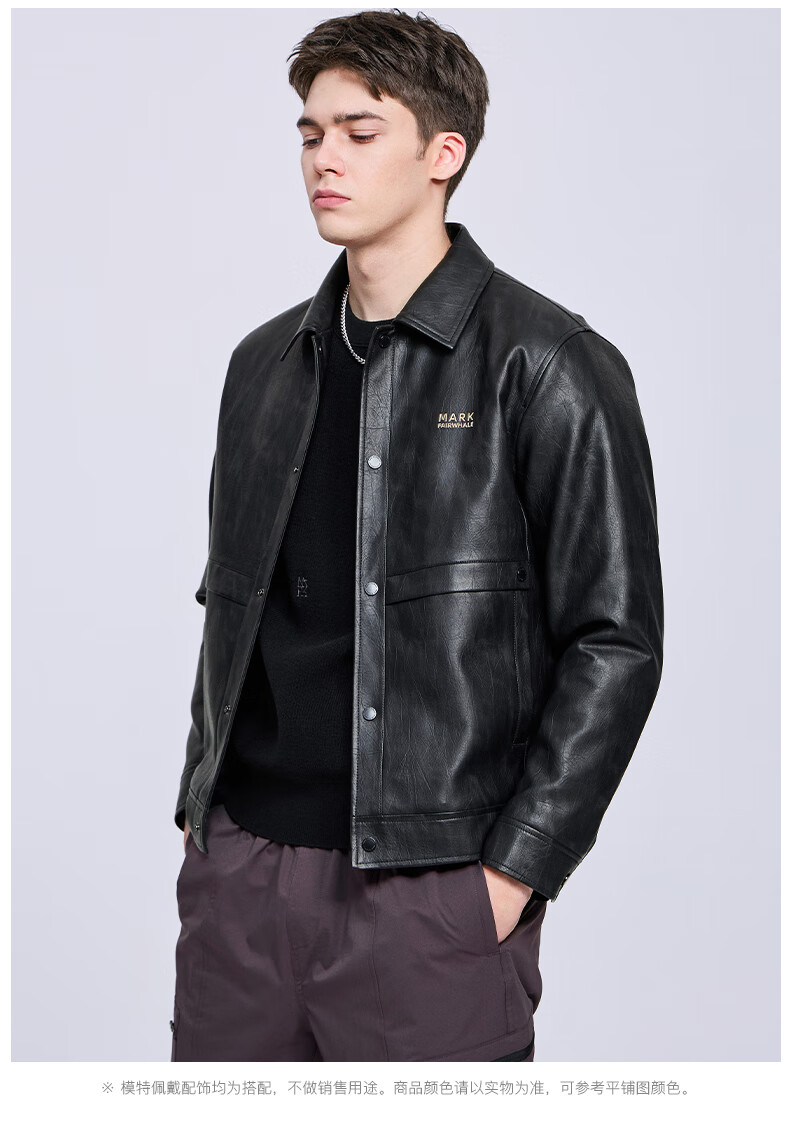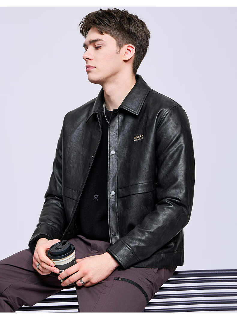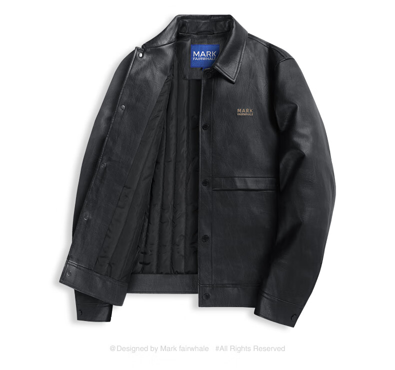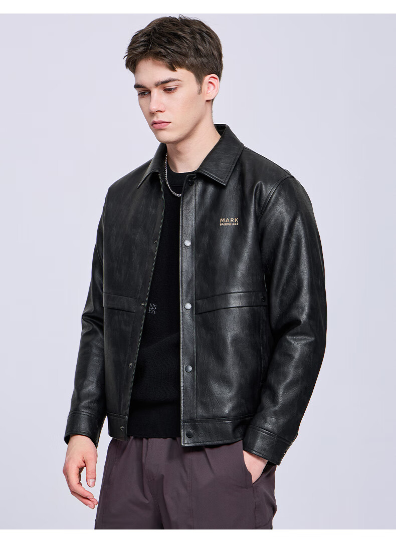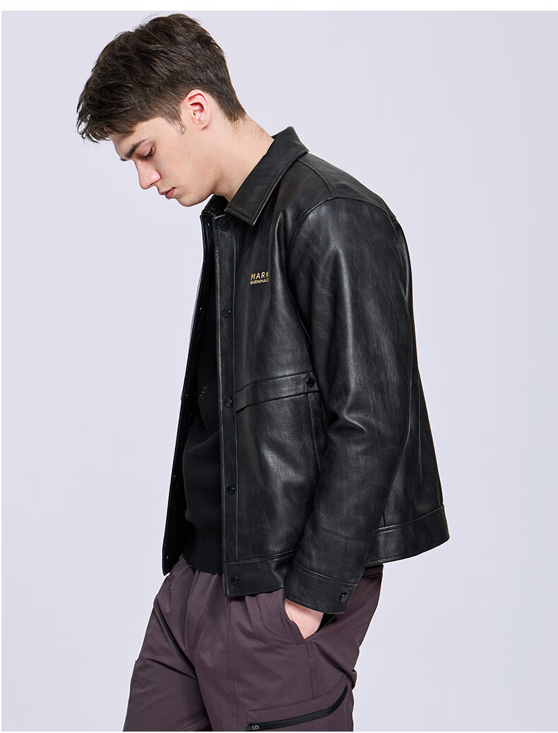 Mark Huafei Lapel Padded Leather Jacket Men's 2025 Autumn and Winter New Trendy Windproof American Texture PU Jacket 1512 Black 001 L 175