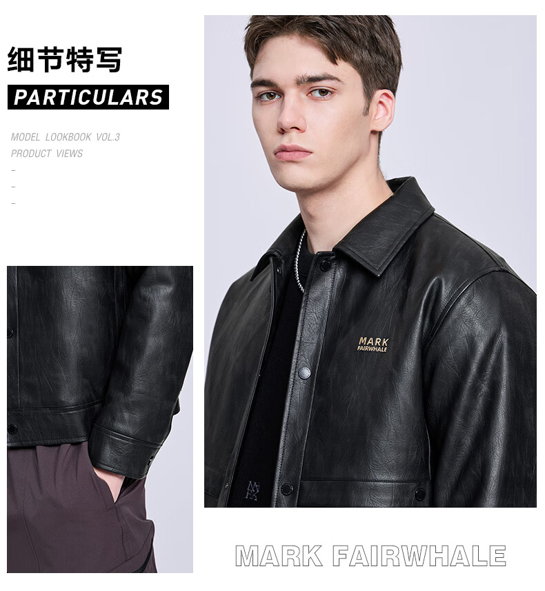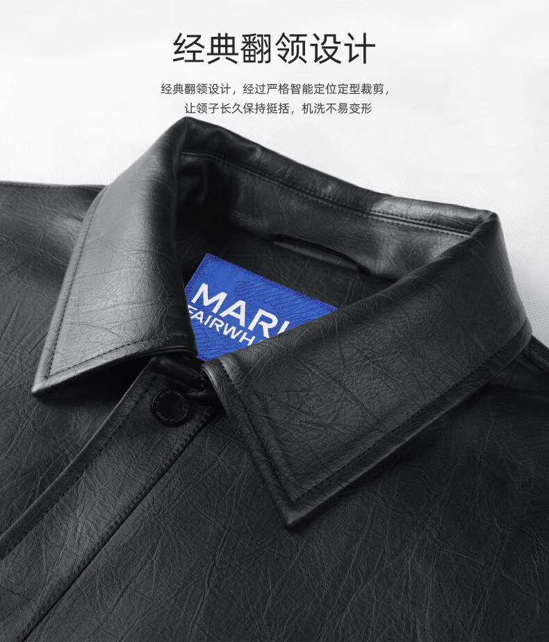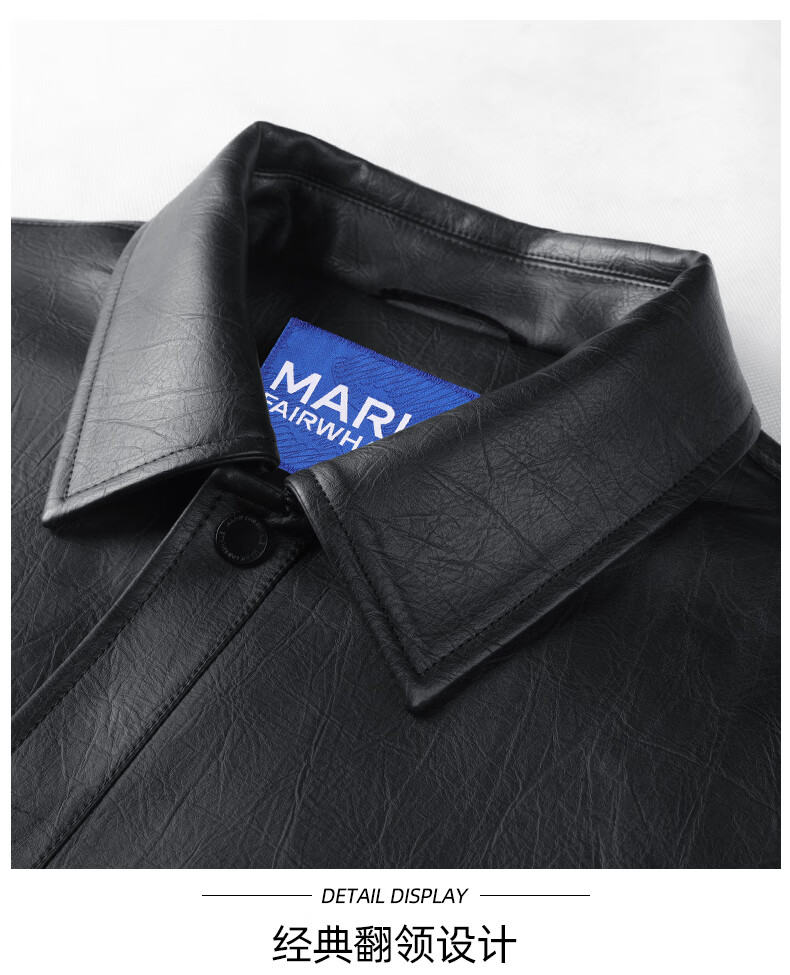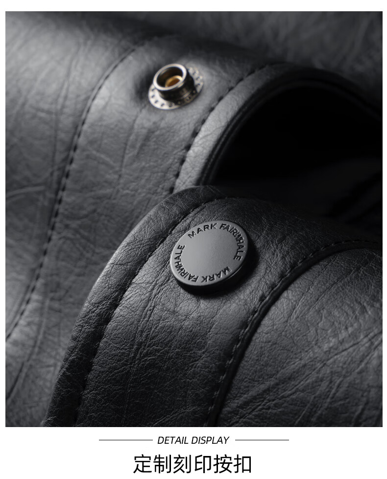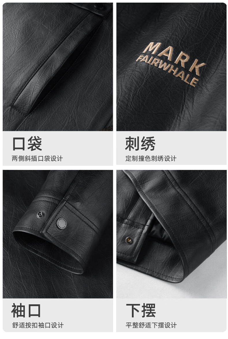 Mark Huafei Lapel Padded Leather Jacket Men's 2025 Autumn and Winter New Trendy Windproof American Texture PU Jacket 1512 Black 001 L 175