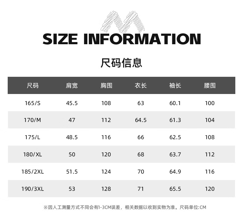 China (cm) 165 / 88-90 170 / 96-98 175 / 108-110 180 / 118-122 185 / 126-130
