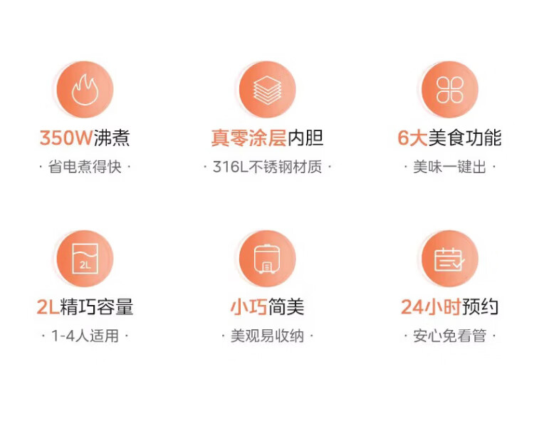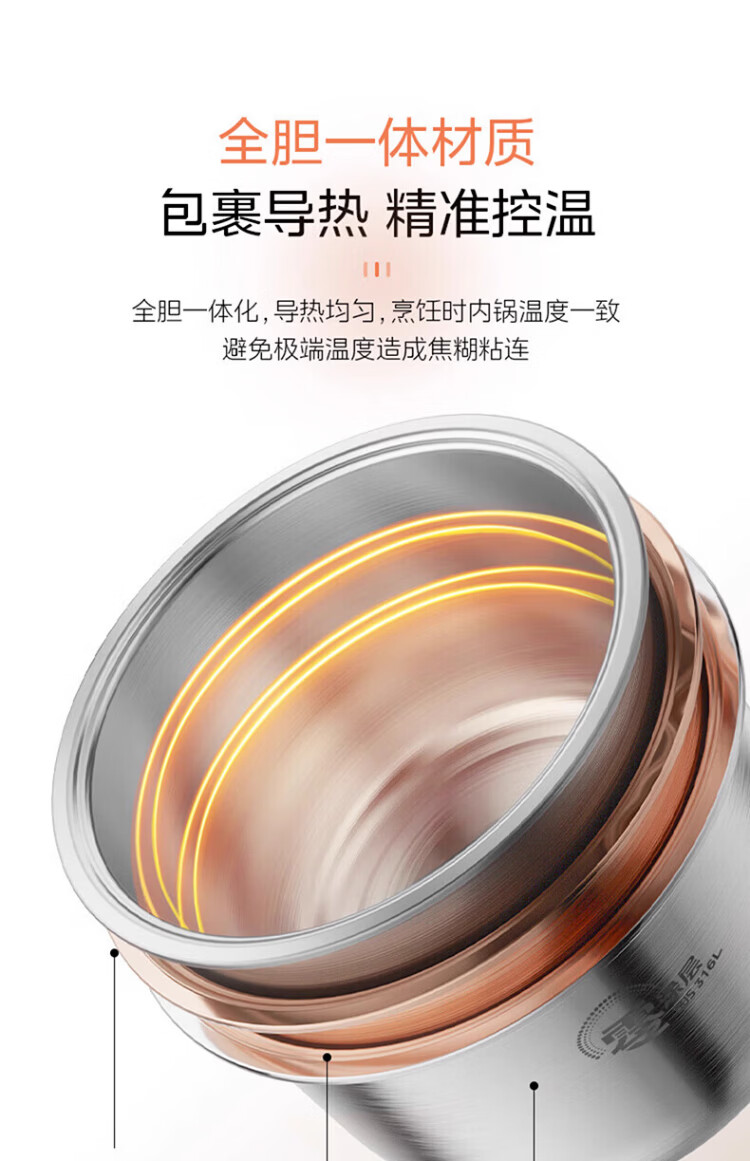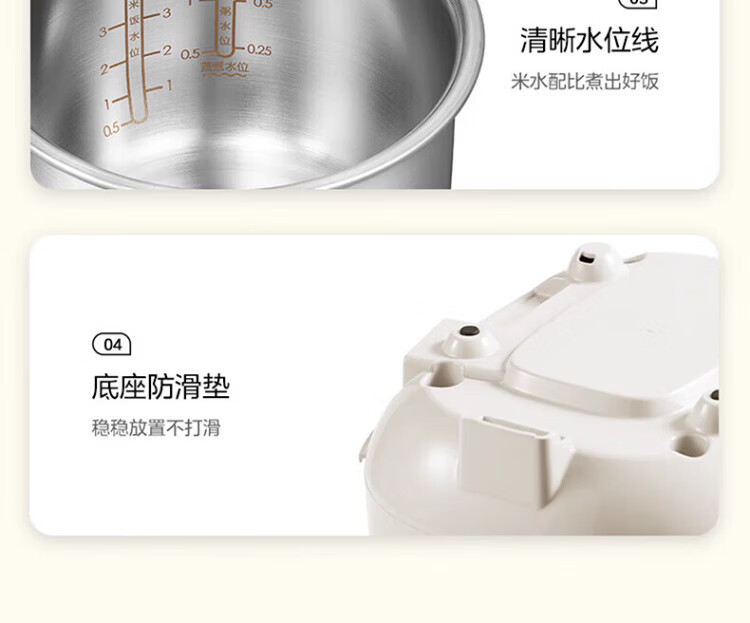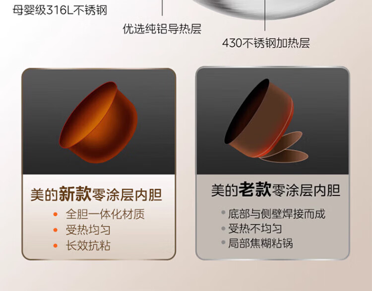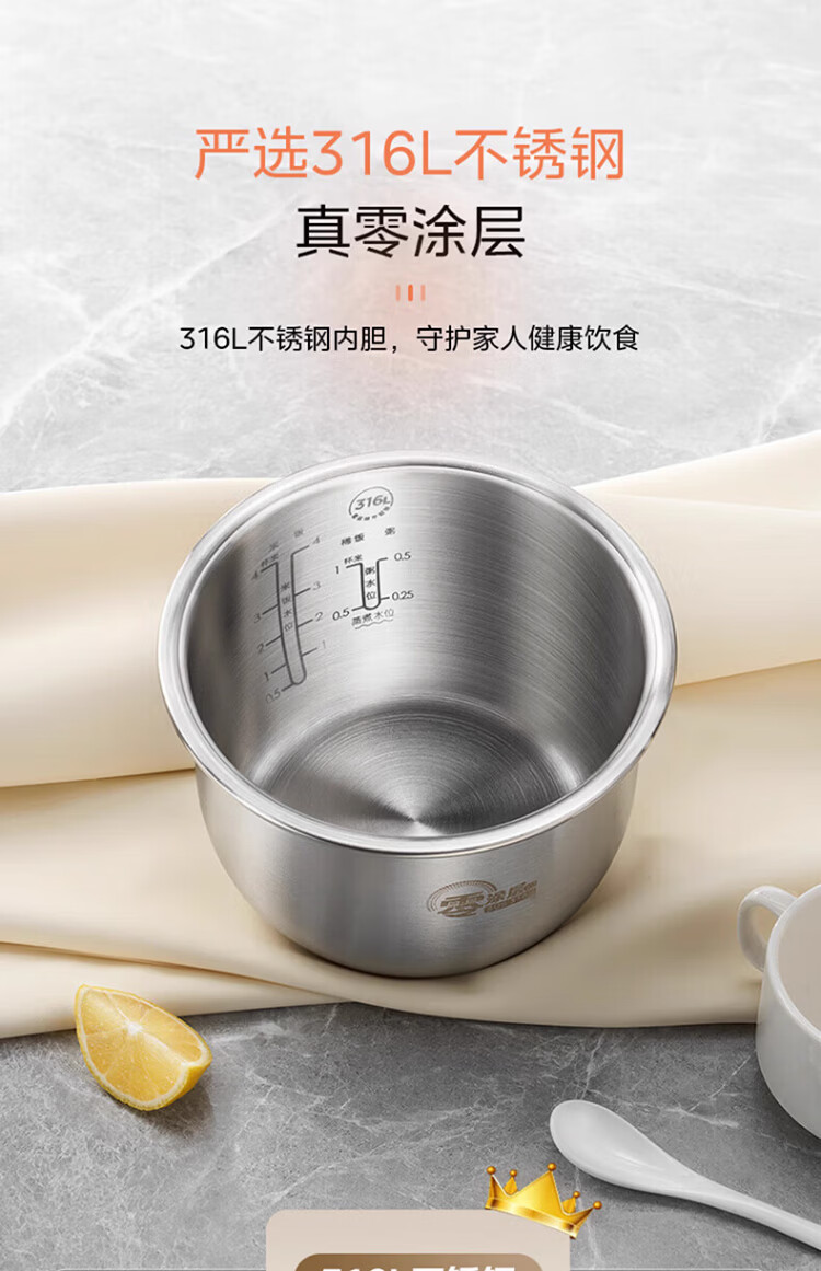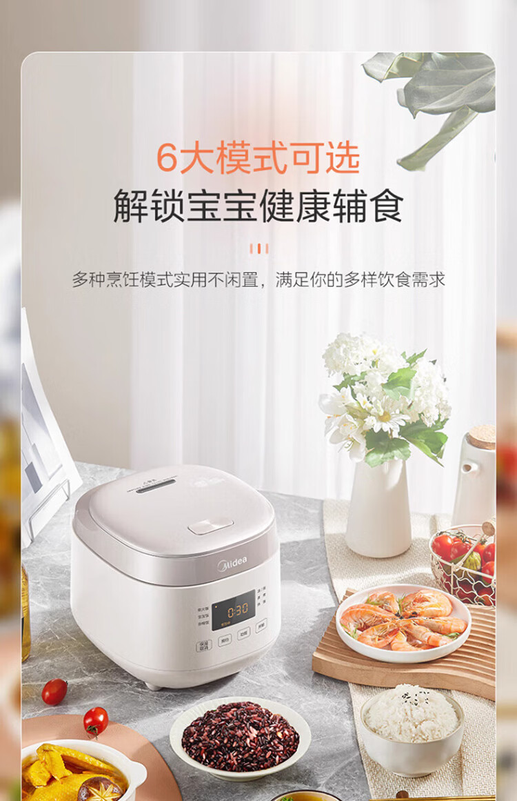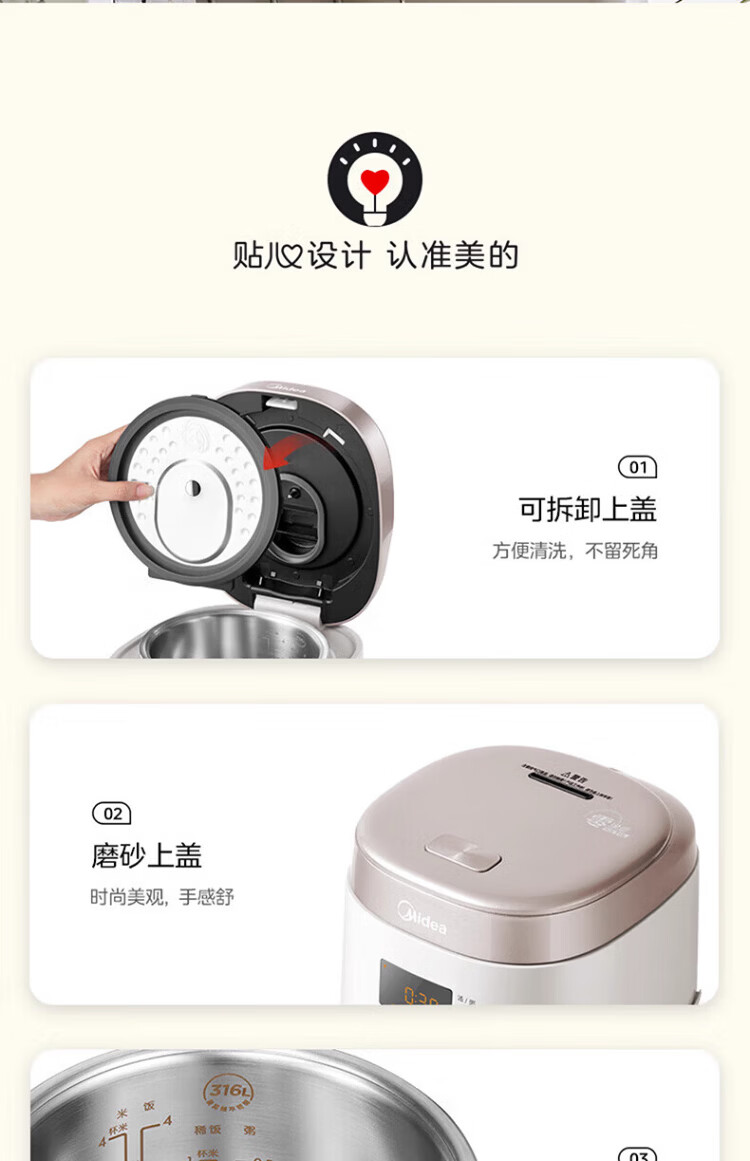 美的(Midea)电饭煲 无涂层家用小型1-2-3人智能电饭锅蒸煮炖一体多功能小电锅 RC201S【0涂层】更健康 2L