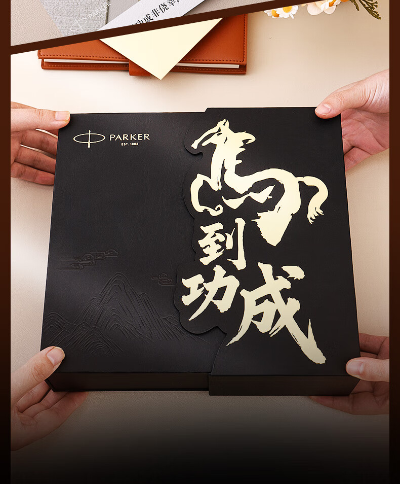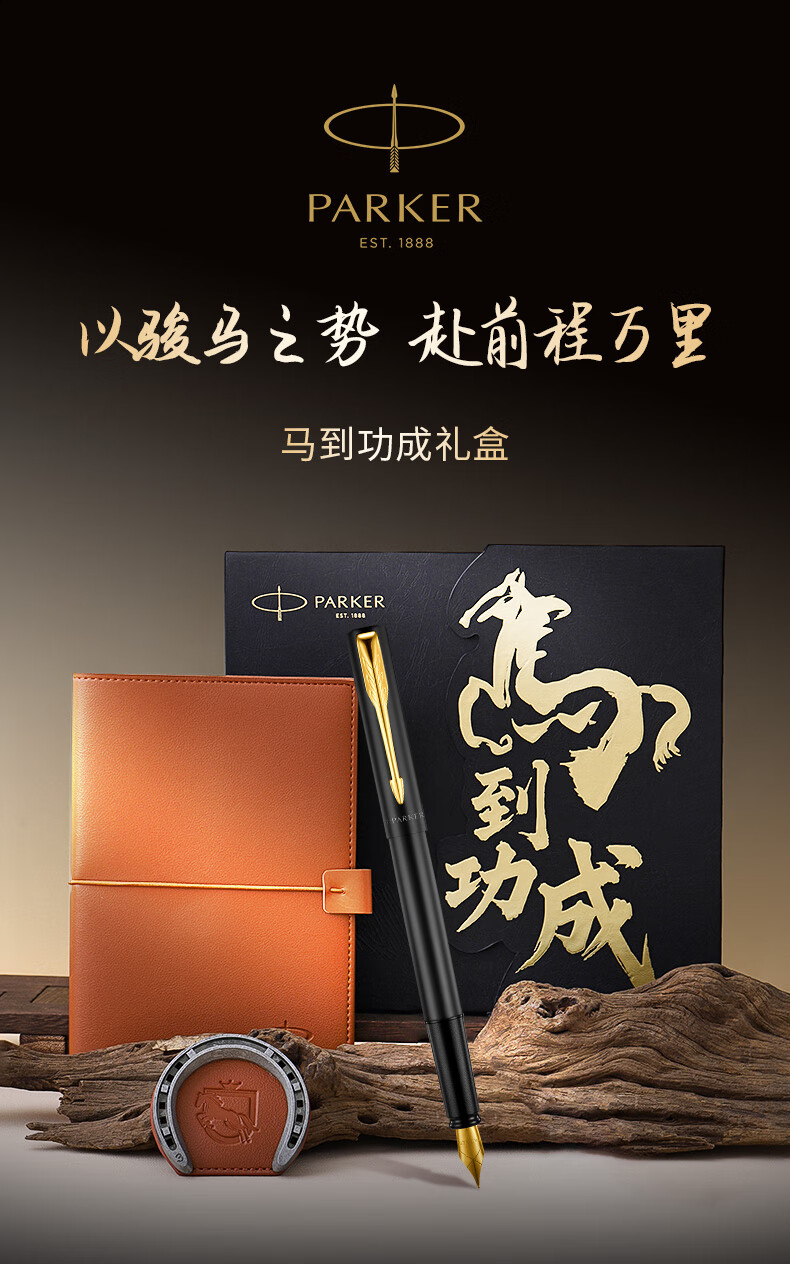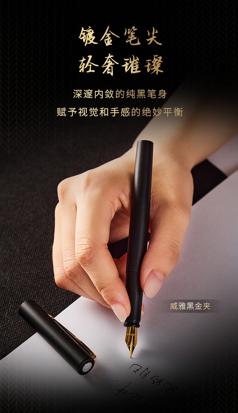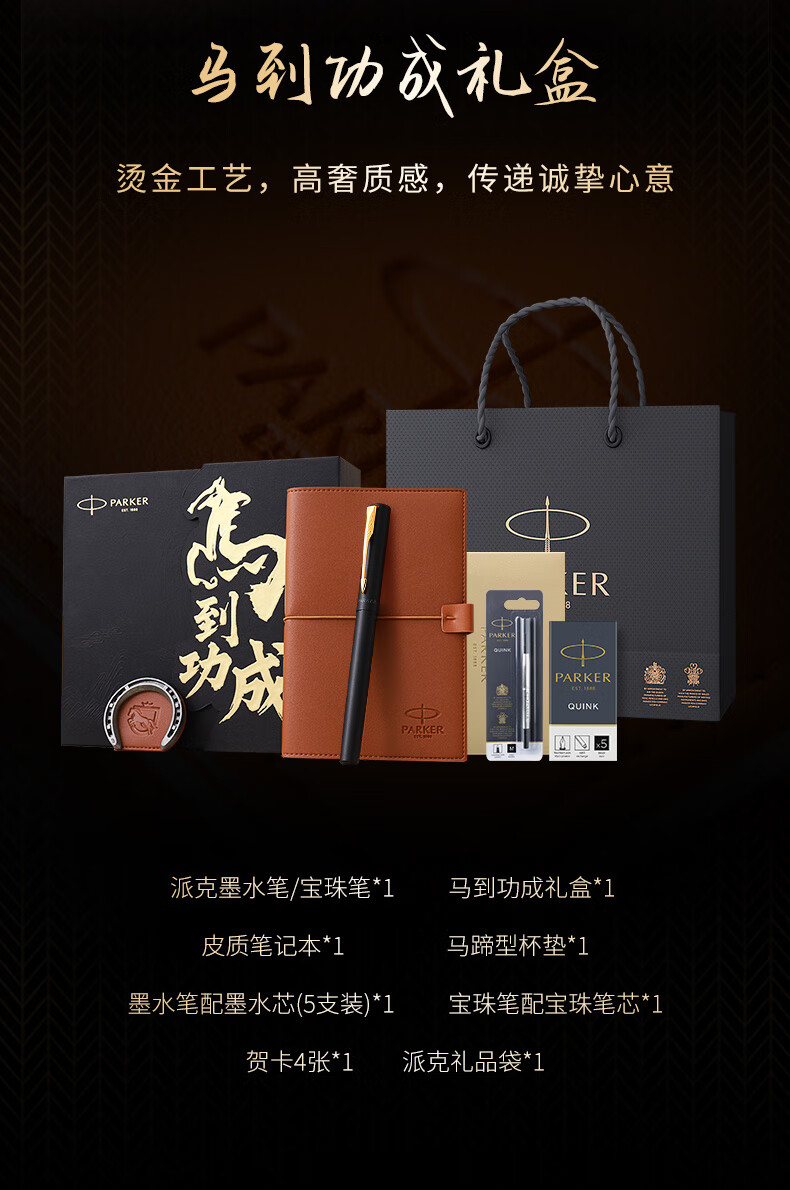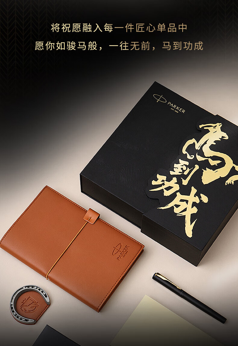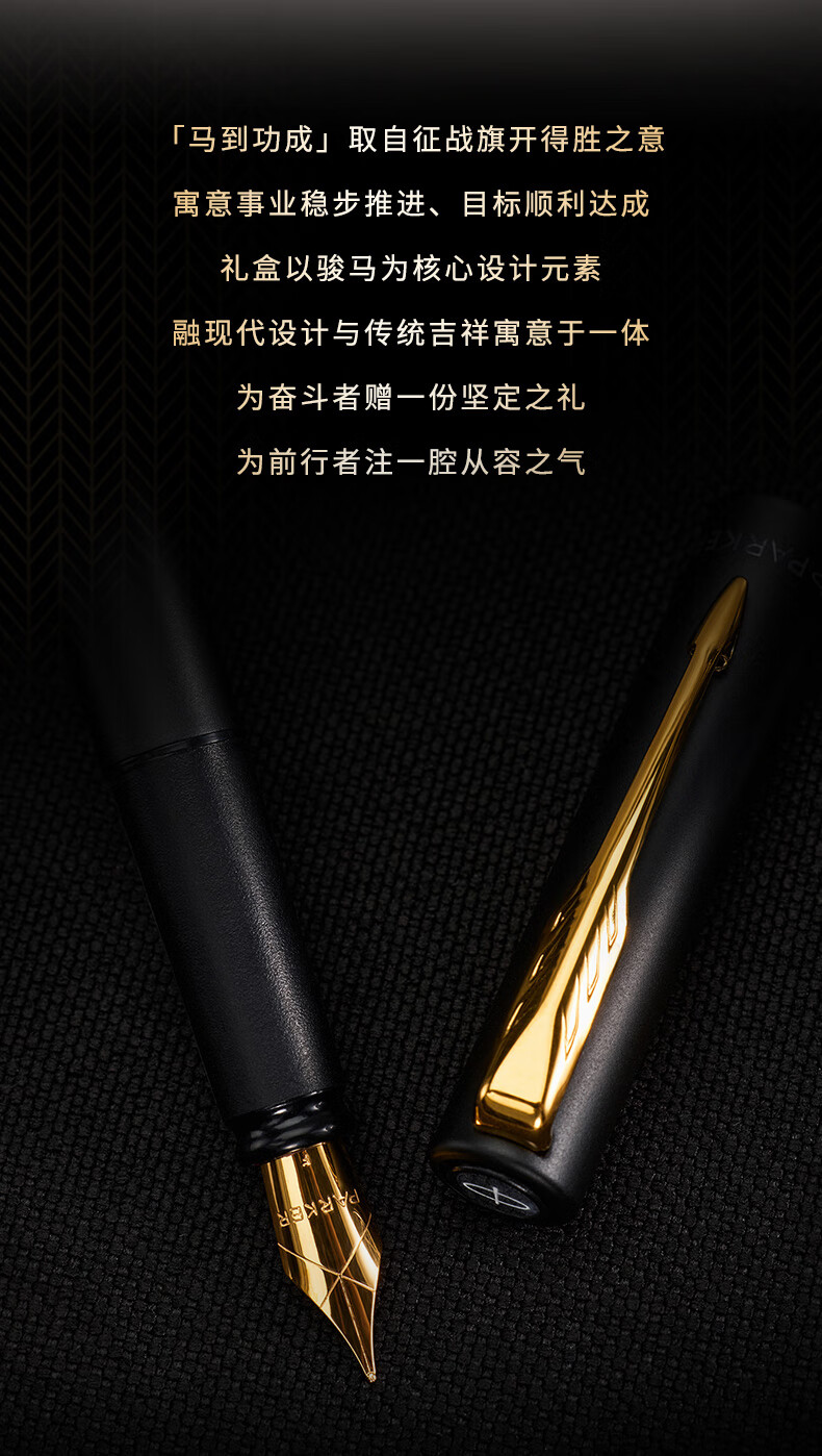 派克钢笔高端文创礼盒学生套装商务送礼定制刻字生日礼品文具签字墨水笔国潮马到功成升学上岸礼物 威雅黑金夹墨水笔+马到功成礼盒