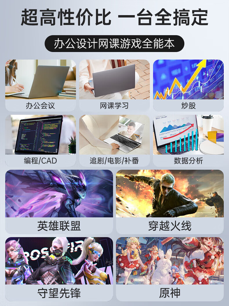 绝伦【2025款16代英特尔+AMD锐龙】大屏笔记本电脑高性能轻薄便携笔记本独显游戏本学生Ai办公设计网课 英特尔16代Ultra智能Ai+指纹背光-银色 16G运行+256G高速固态硬盘