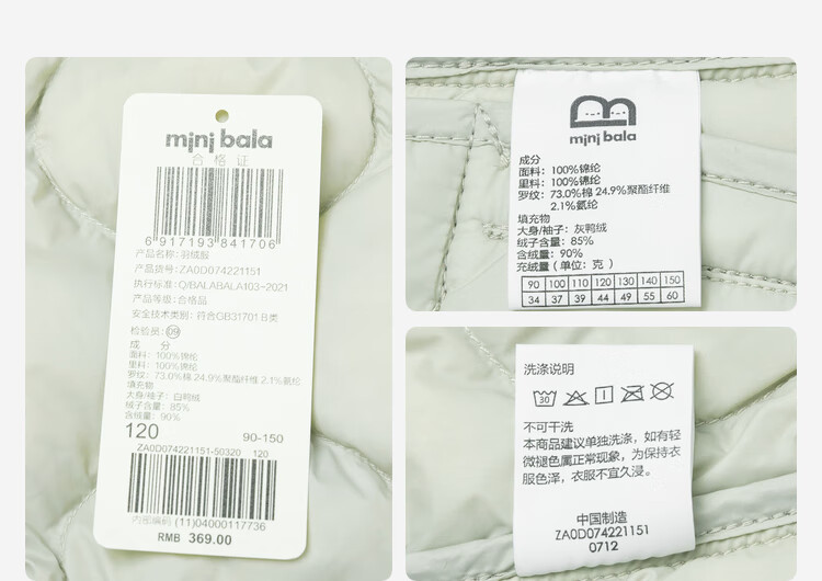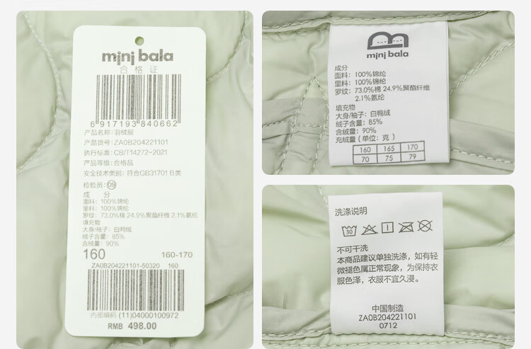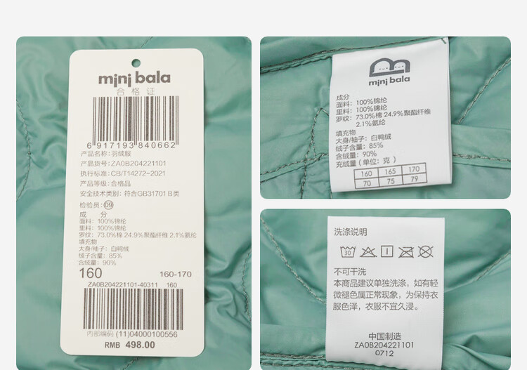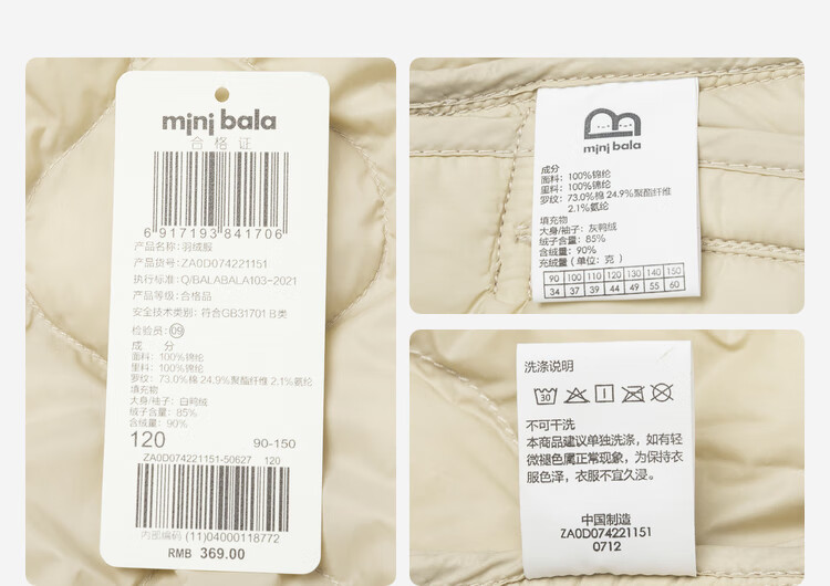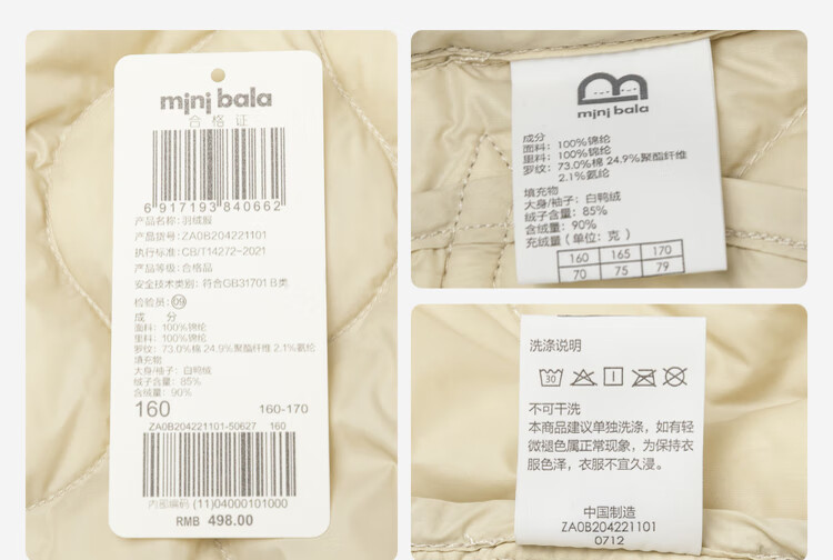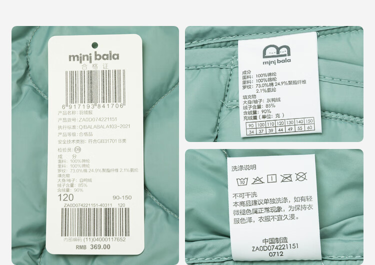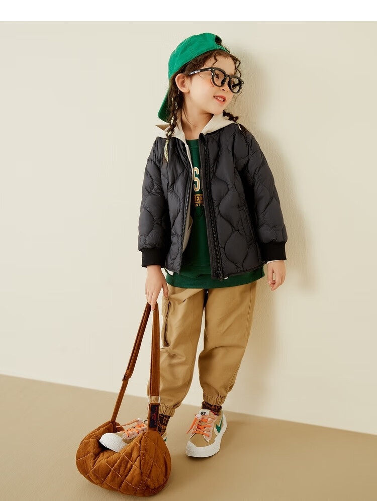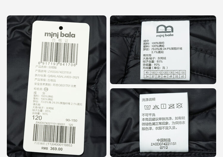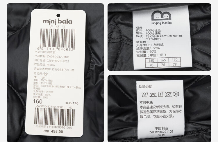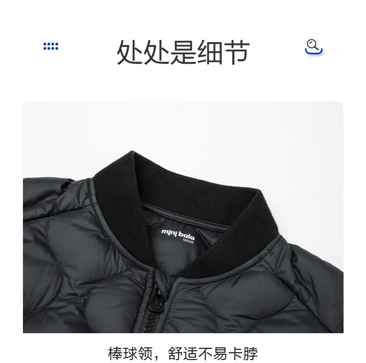 迷你巴拉(minibala)迷你巴拉巴拉【mini亲子】女童羽绒服冬季儿童防水防油棒球外套 黑色90001 90