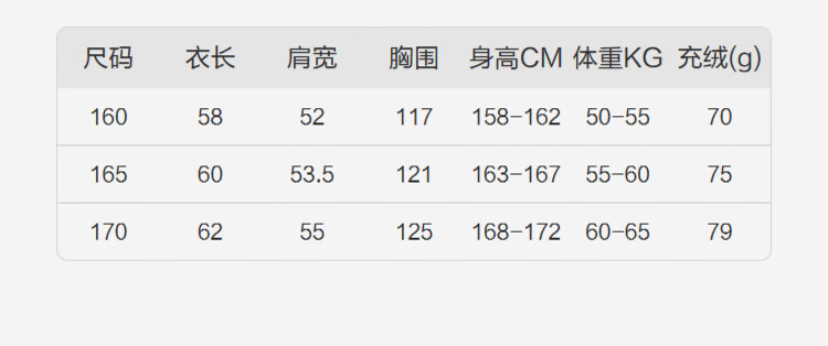 China (cm) 160-165/84-86 165-170 / 88-90 167-172 / 92-96 168-173 / 98-102 170-176 / 106-110