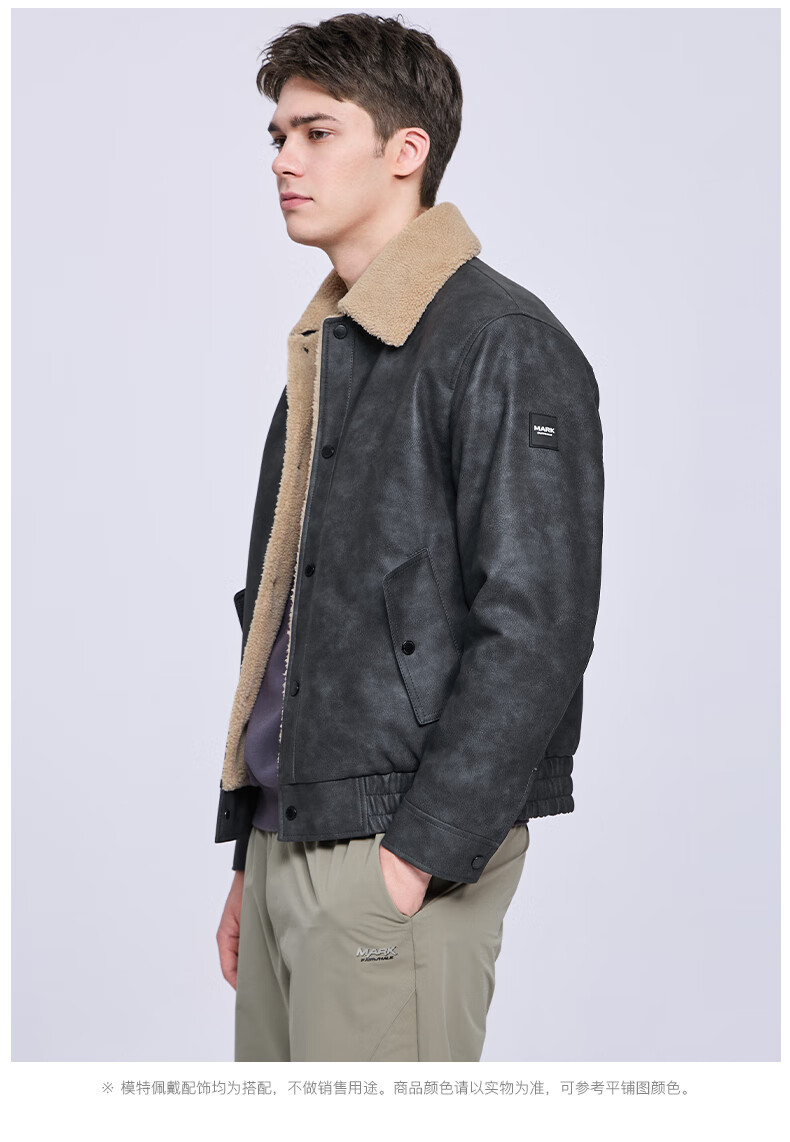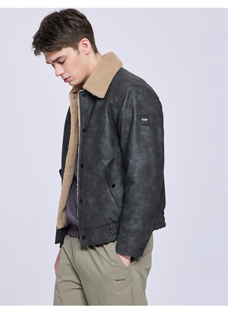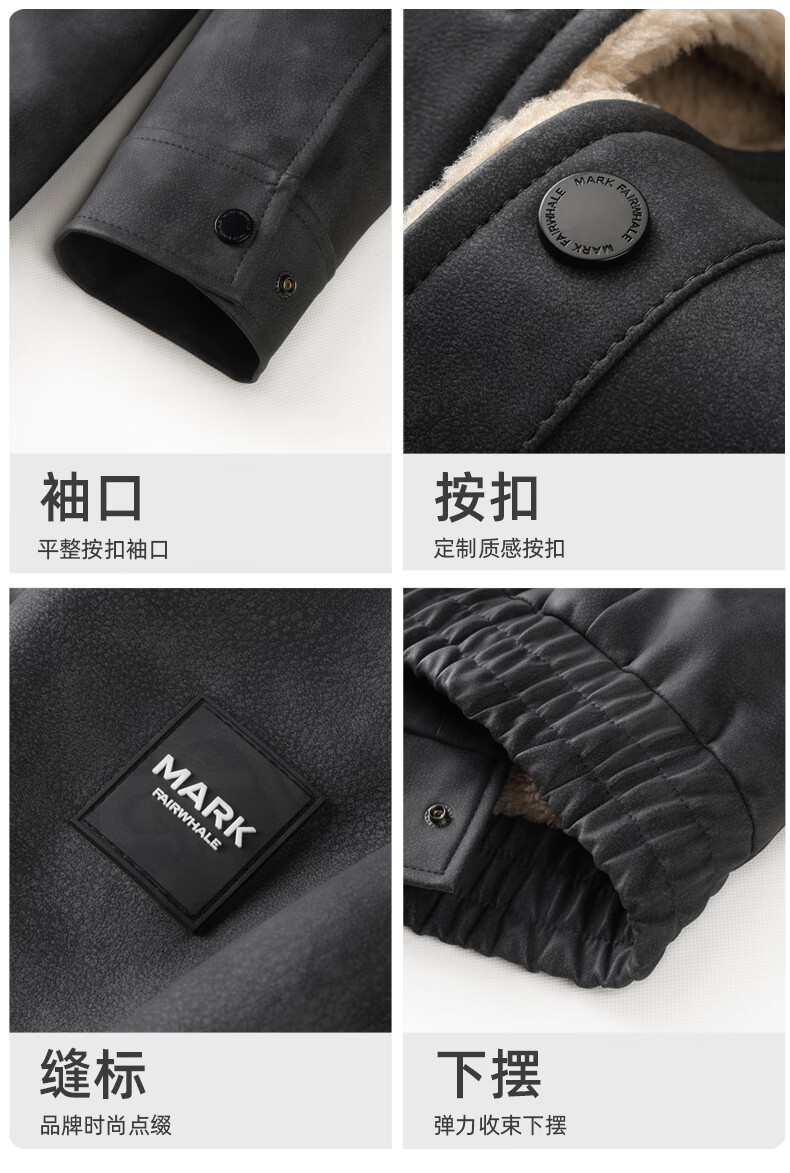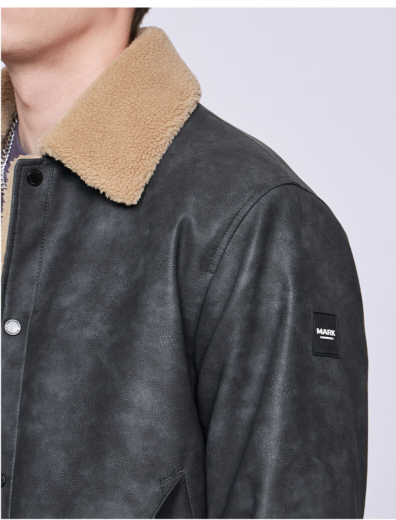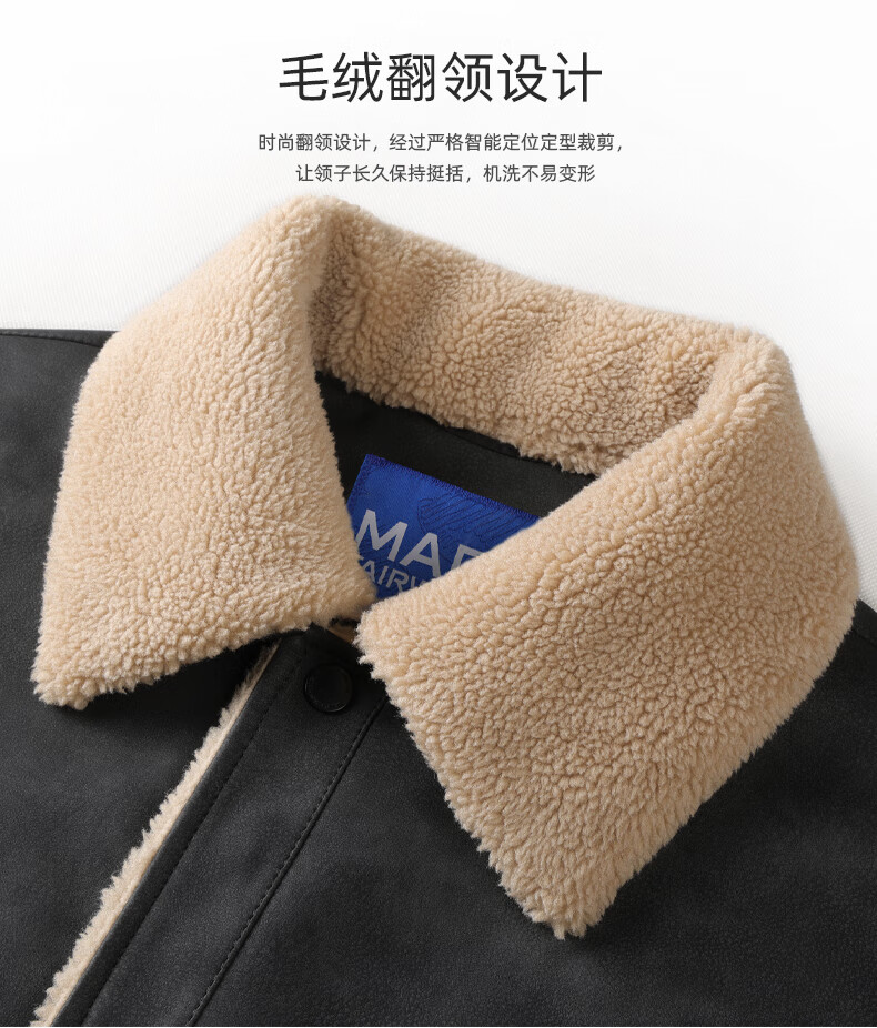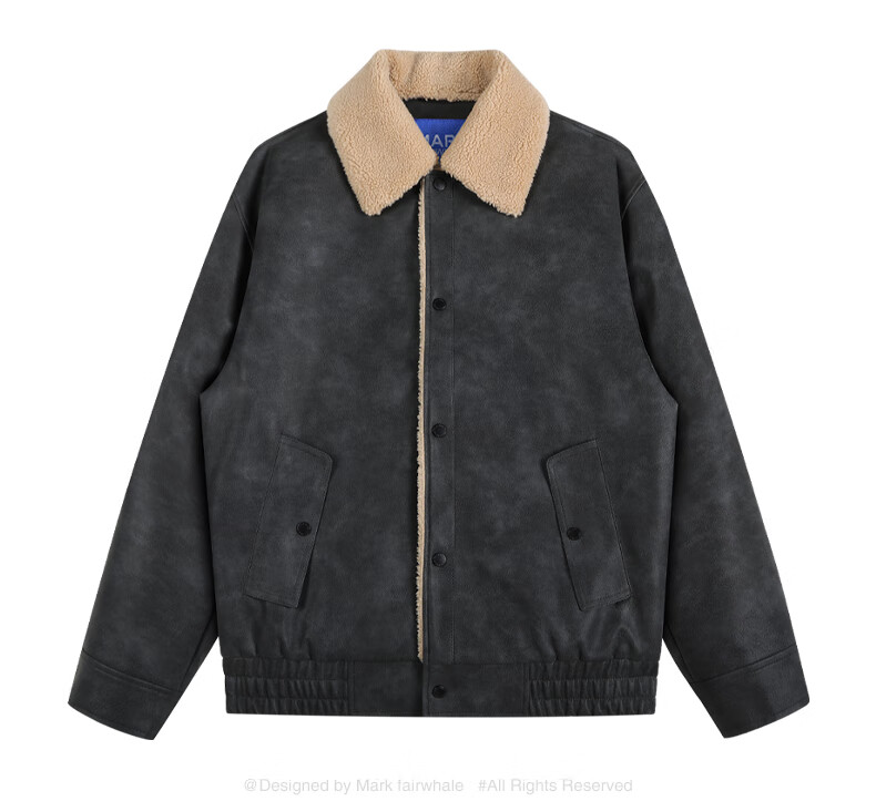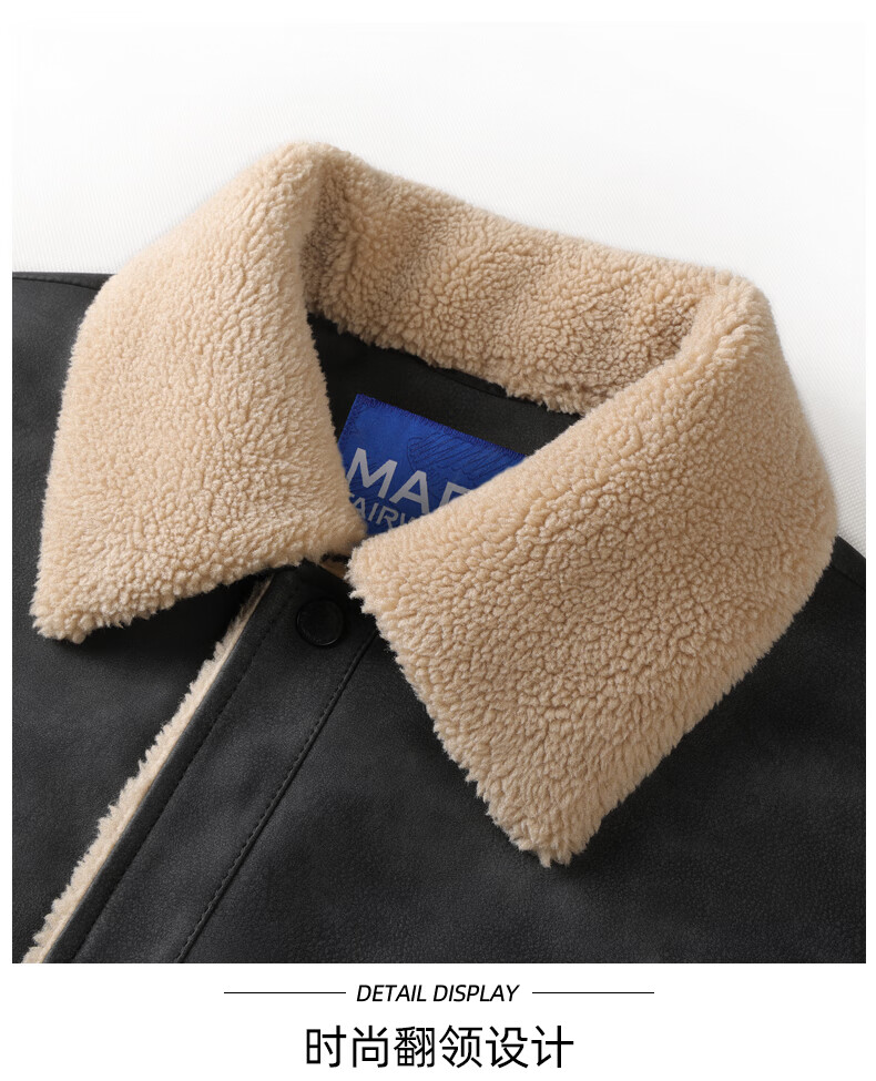 Mark Huafei American Retro Heavy PU Leather Jacket Men's 2025 Autumn and Winter New Warm Thickened Imitation Lamb Wool Jacket 1506 Black 001 M 170