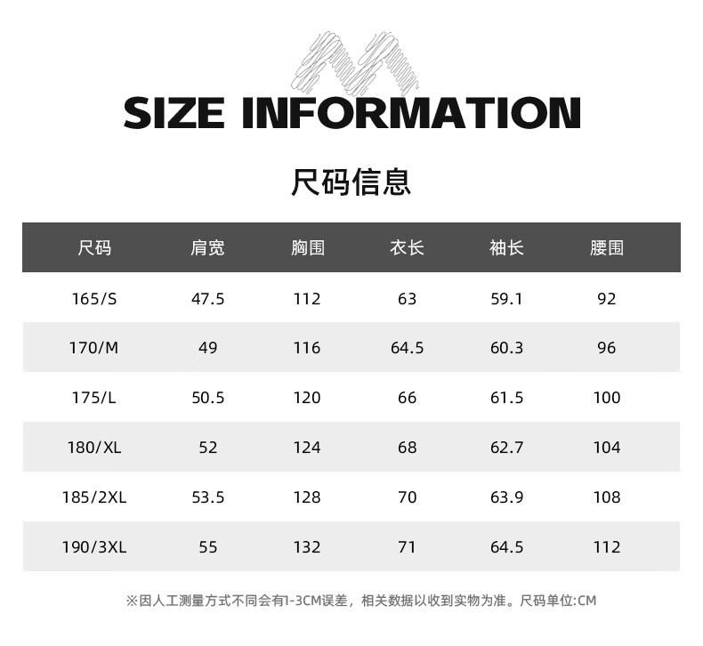 China (cm) 165 / 88-90 170 / 96-98 175 / 108-110 180 / 118-122 185 / 126-130
