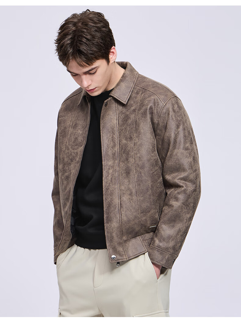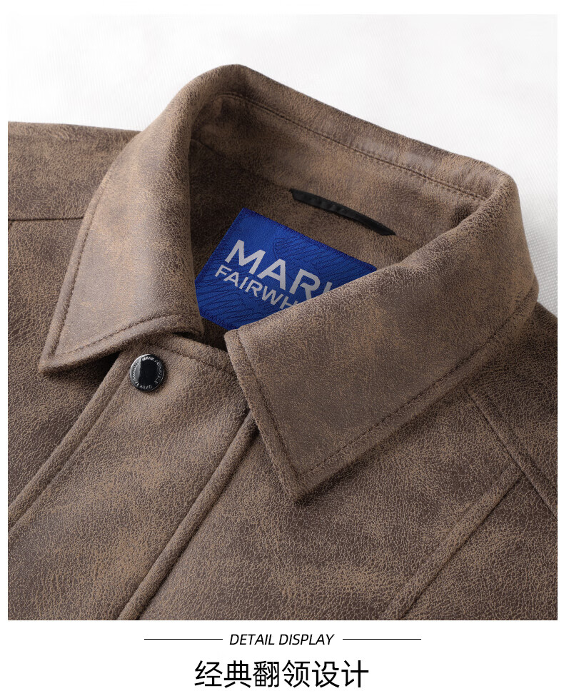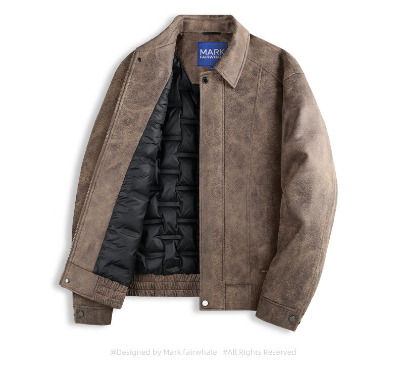 Mark Huafei Down Liner PU Leather Jacket Men's 2025 Autumn and Winter New American Warm Lapel Jacket Leather Jacket 7009 Red Brown 314 S 165