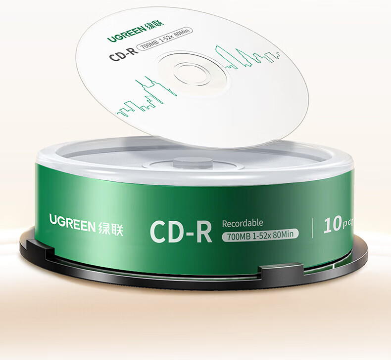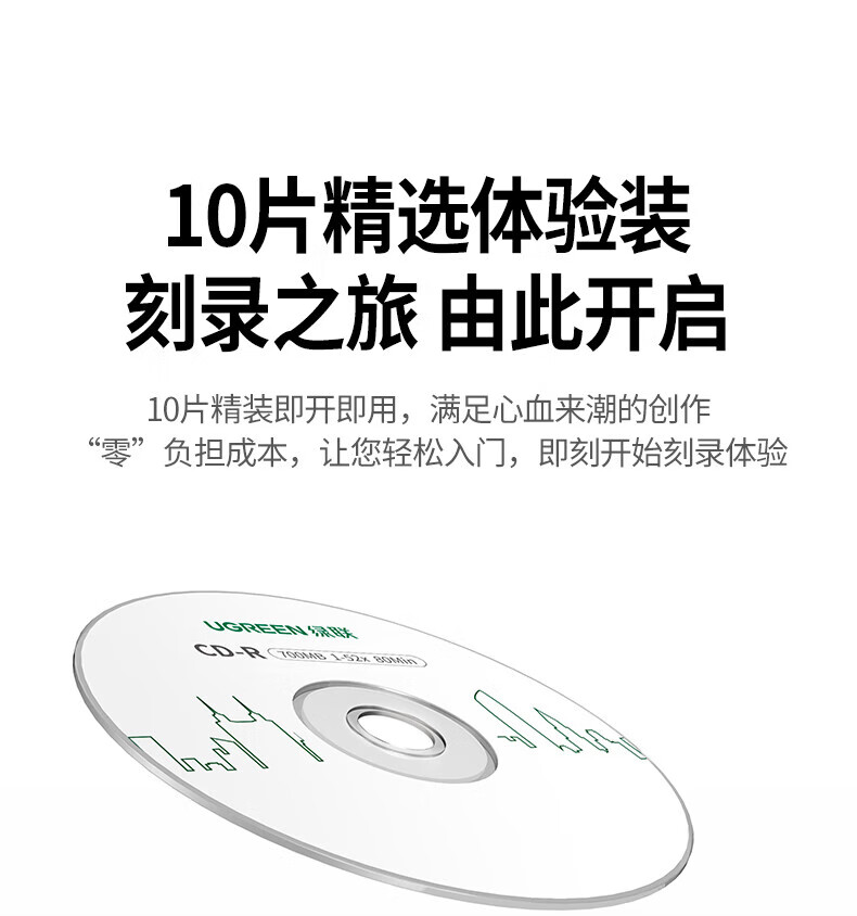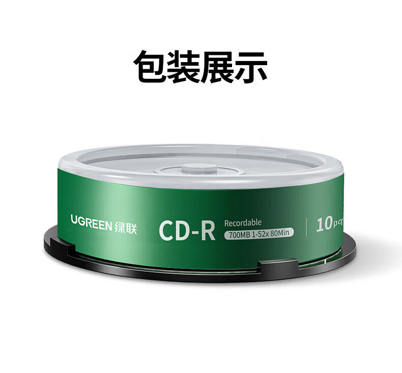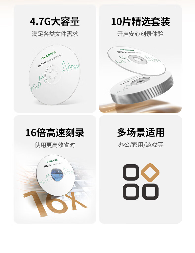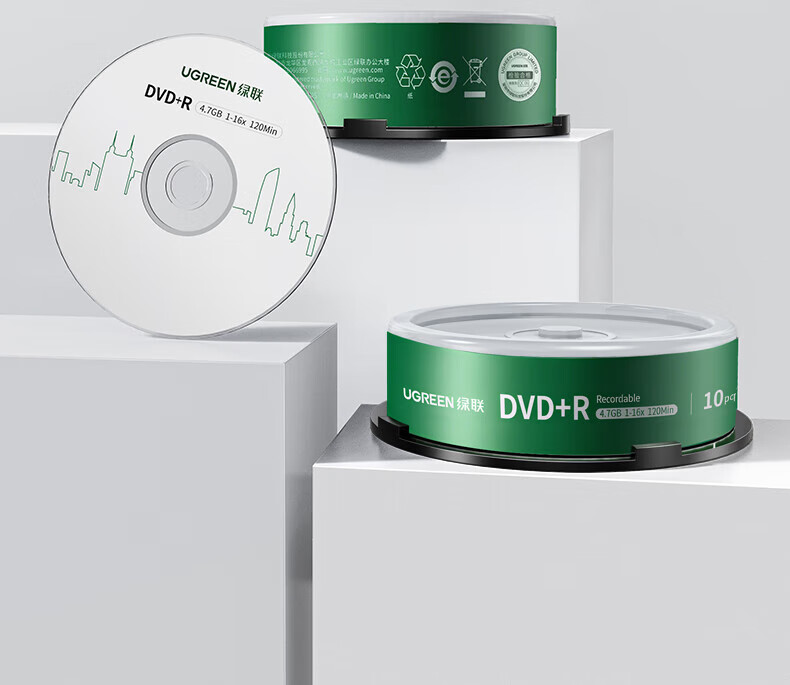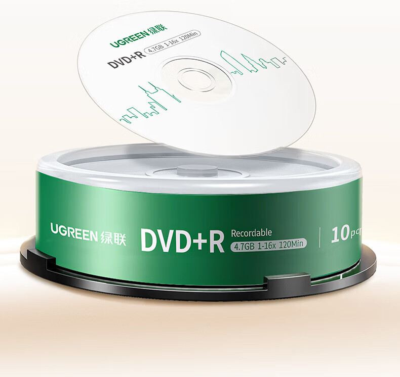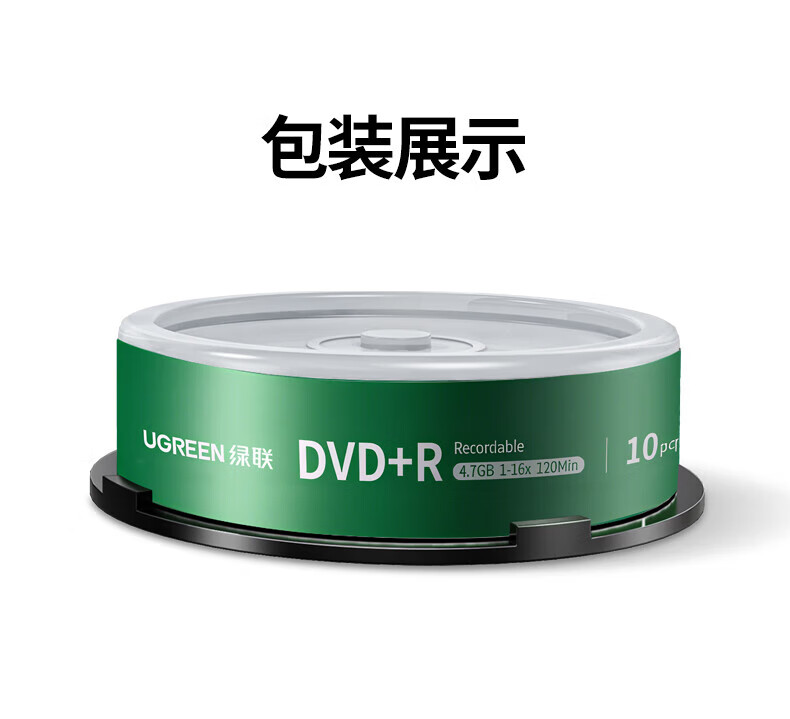 绿联DVD+R/CD-R空白光盘10片装50片装 16倍速4.7GB/700M 52速空白光盘电脑读取刻录存储办公文件数据 【DVD+R 4.7G】10片装