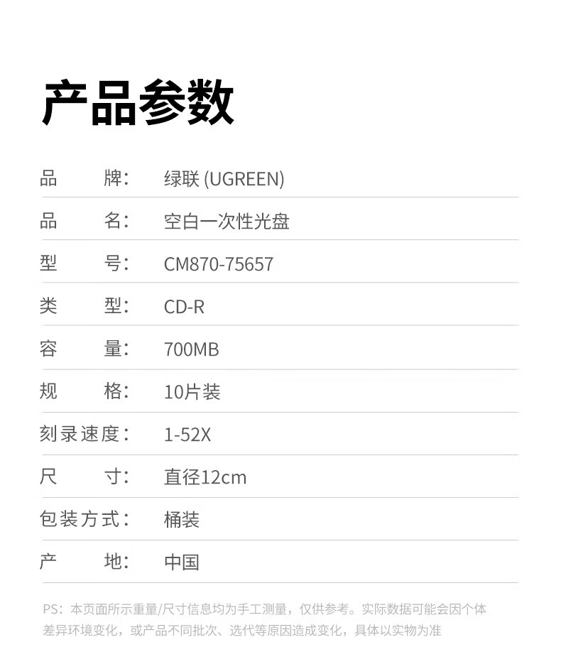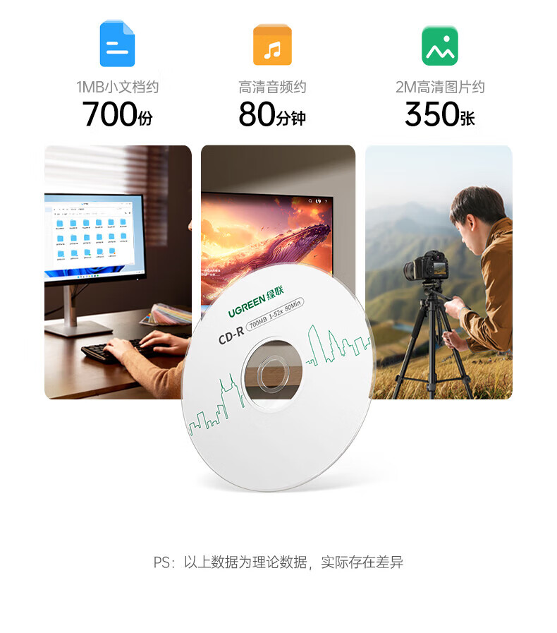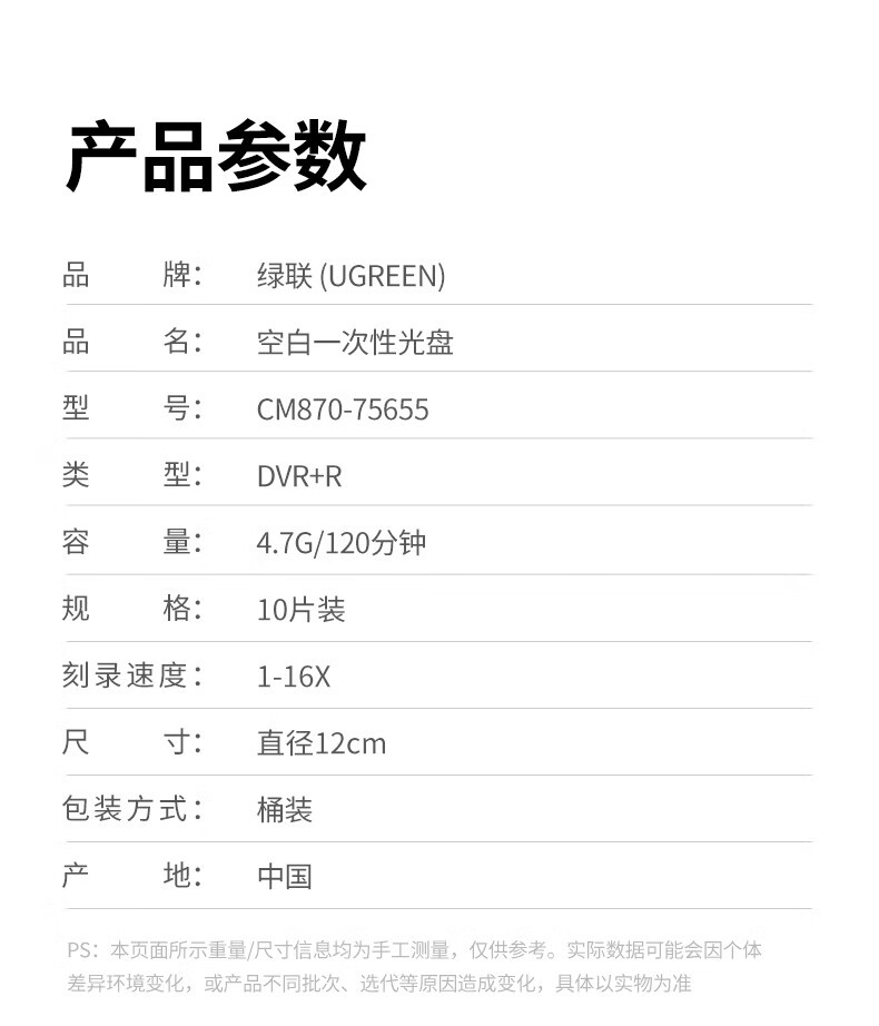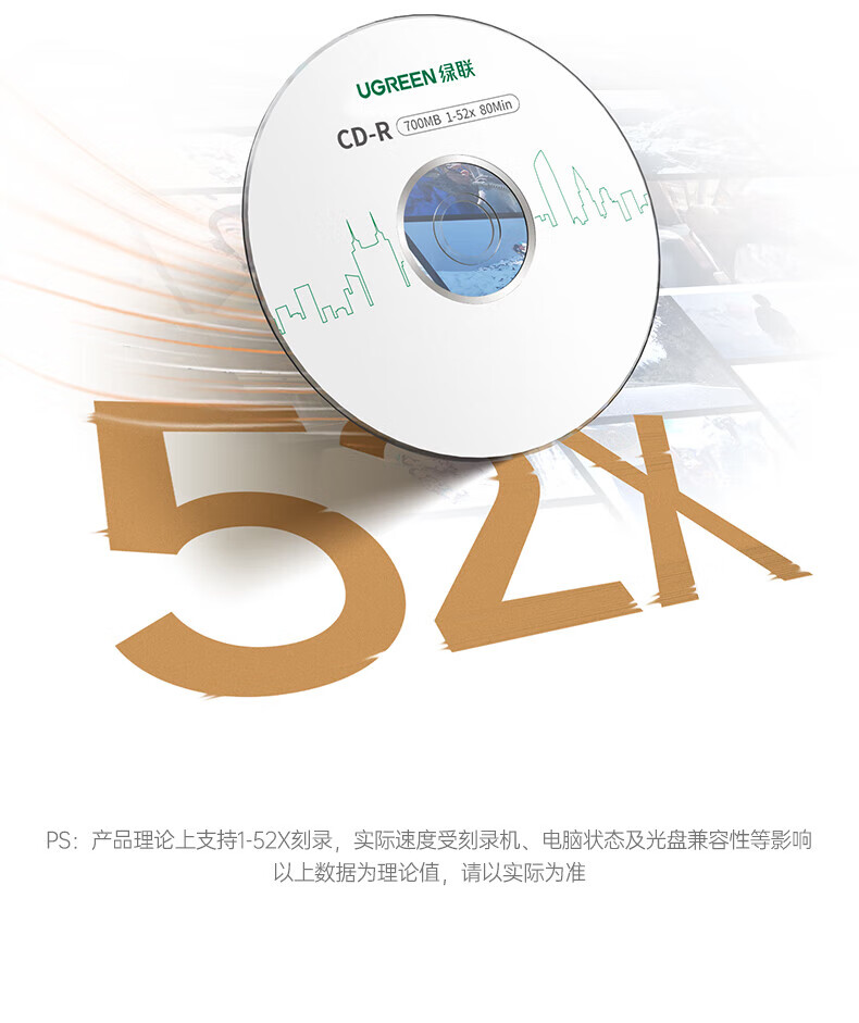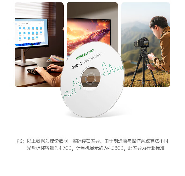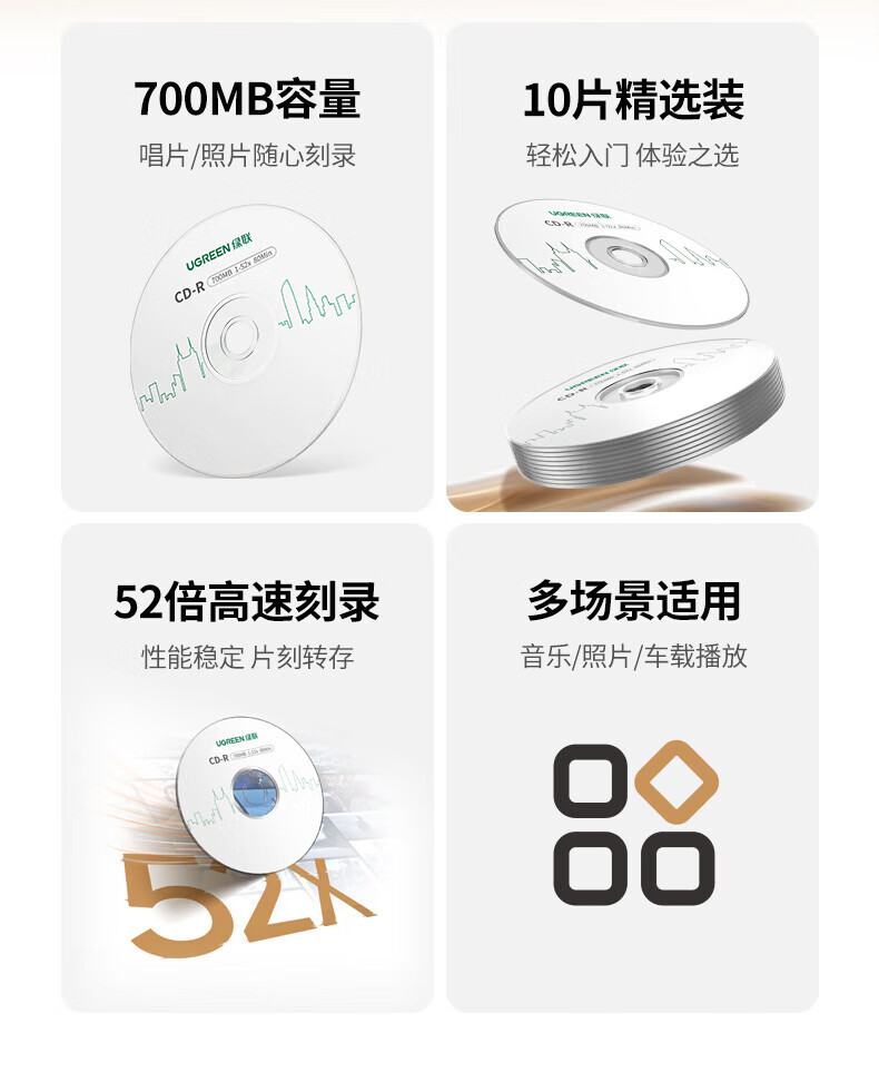 绿联DVD+R/CD-R空白光盘10片装50片装 16倍速4.7GB/700M 52速空白光盘电脑读取刻录存储办公文件数据 【DVD+R 4.7G】10片装