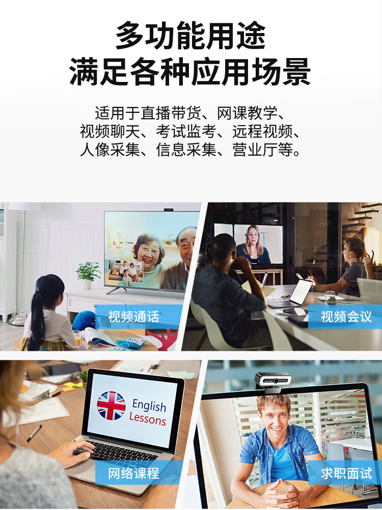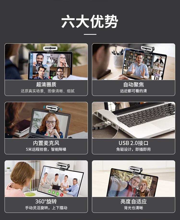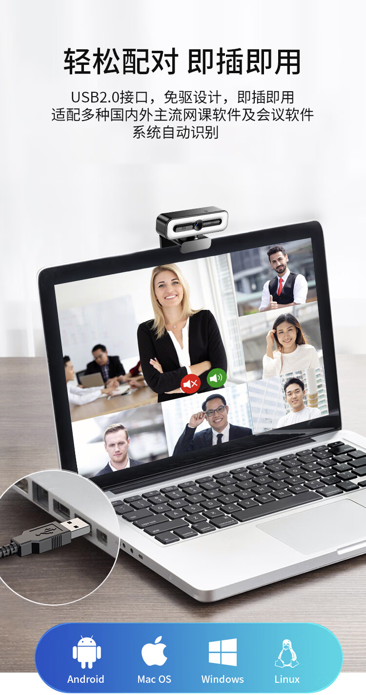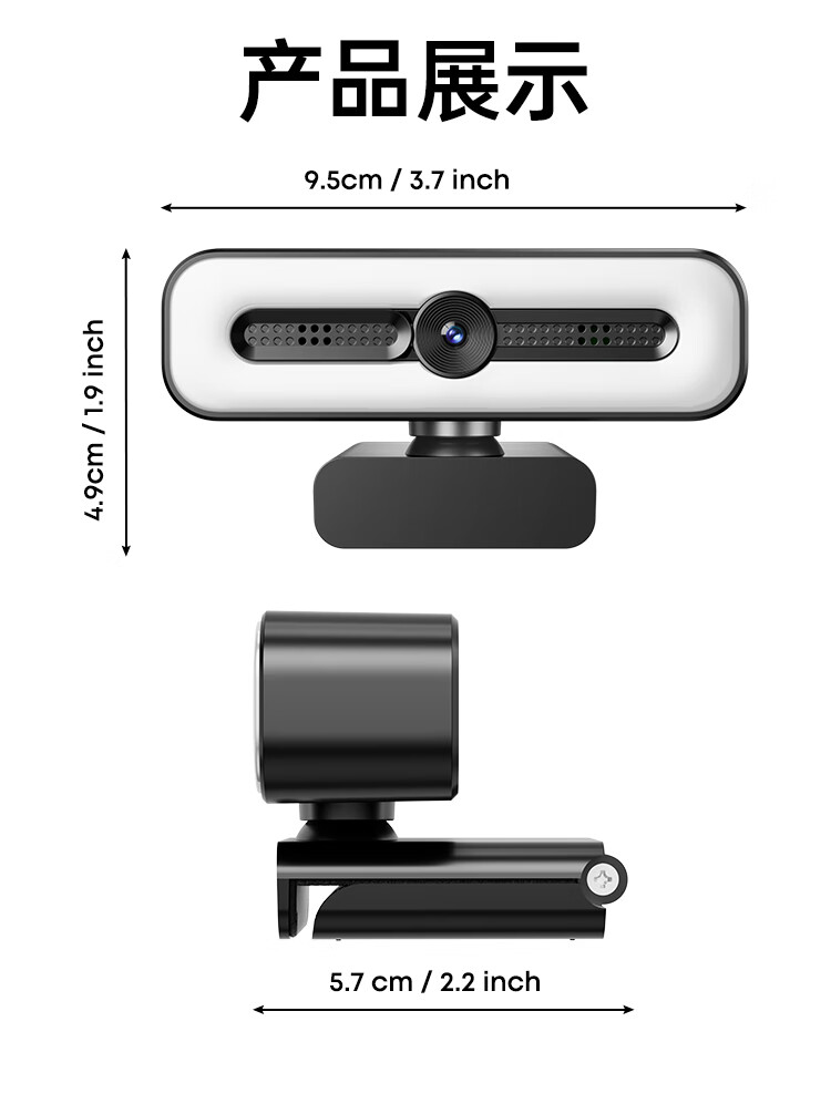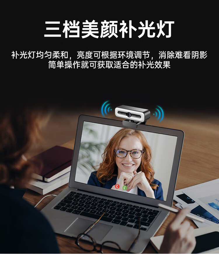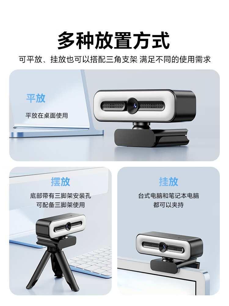 摄像头自带美颜补光灯带支架高清电脑摄像头带隐私盖家用台式机上网课专用直播外置笔记本监控 4K 带支架