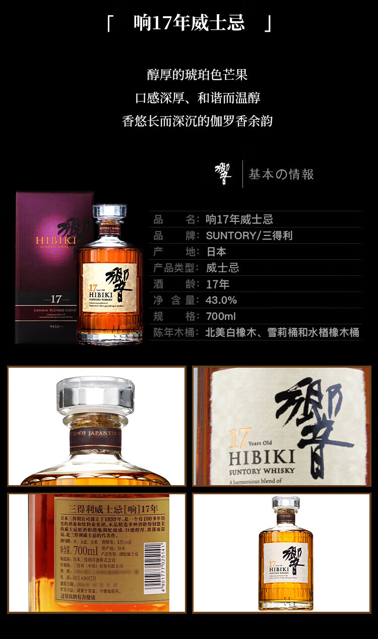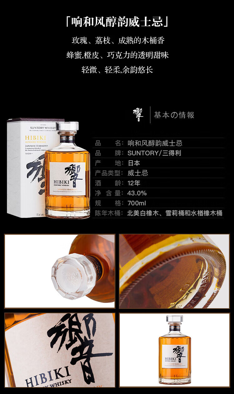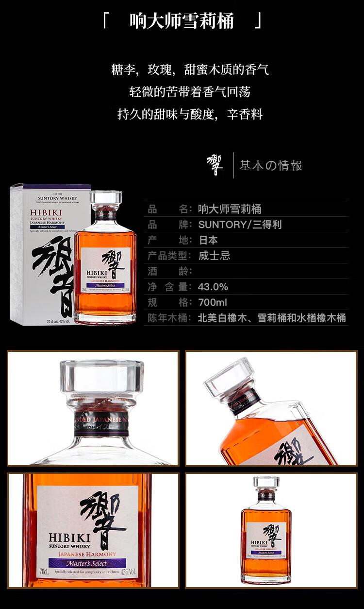 Hibiki Hibiki Japanese style mellow flavor Hibiki Sakura Riwei Hibiki Master Red Wine Barrel Whiskey Japan original imported wine Hibiki Japanese style mellow flavor with box 700mL1 bottle