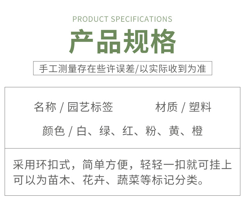 Gardening label thickened waterproof colorful plastic flower label plant flower pot flower name hook type hanging label buckle orange buckle label 100 thickened and light-resistant