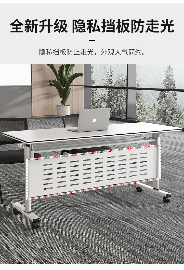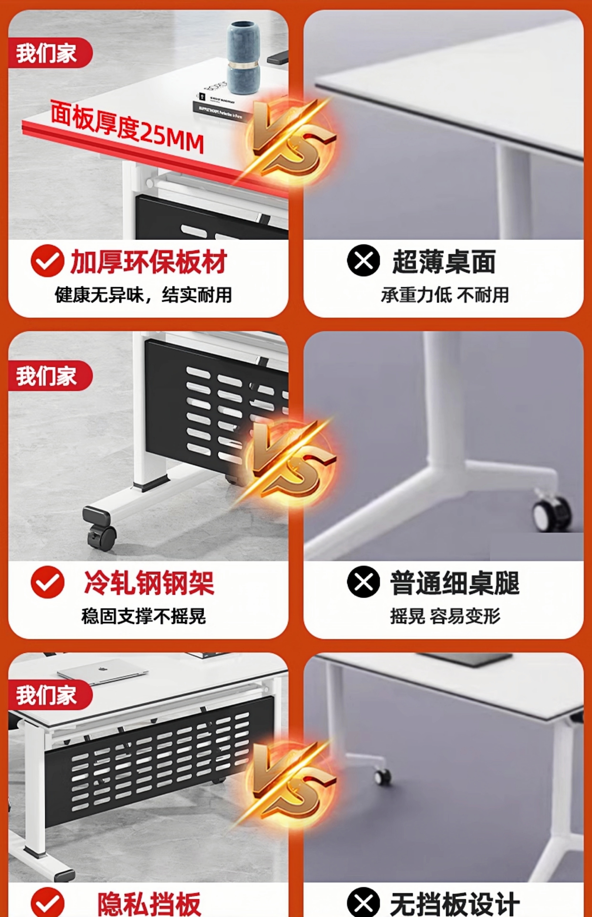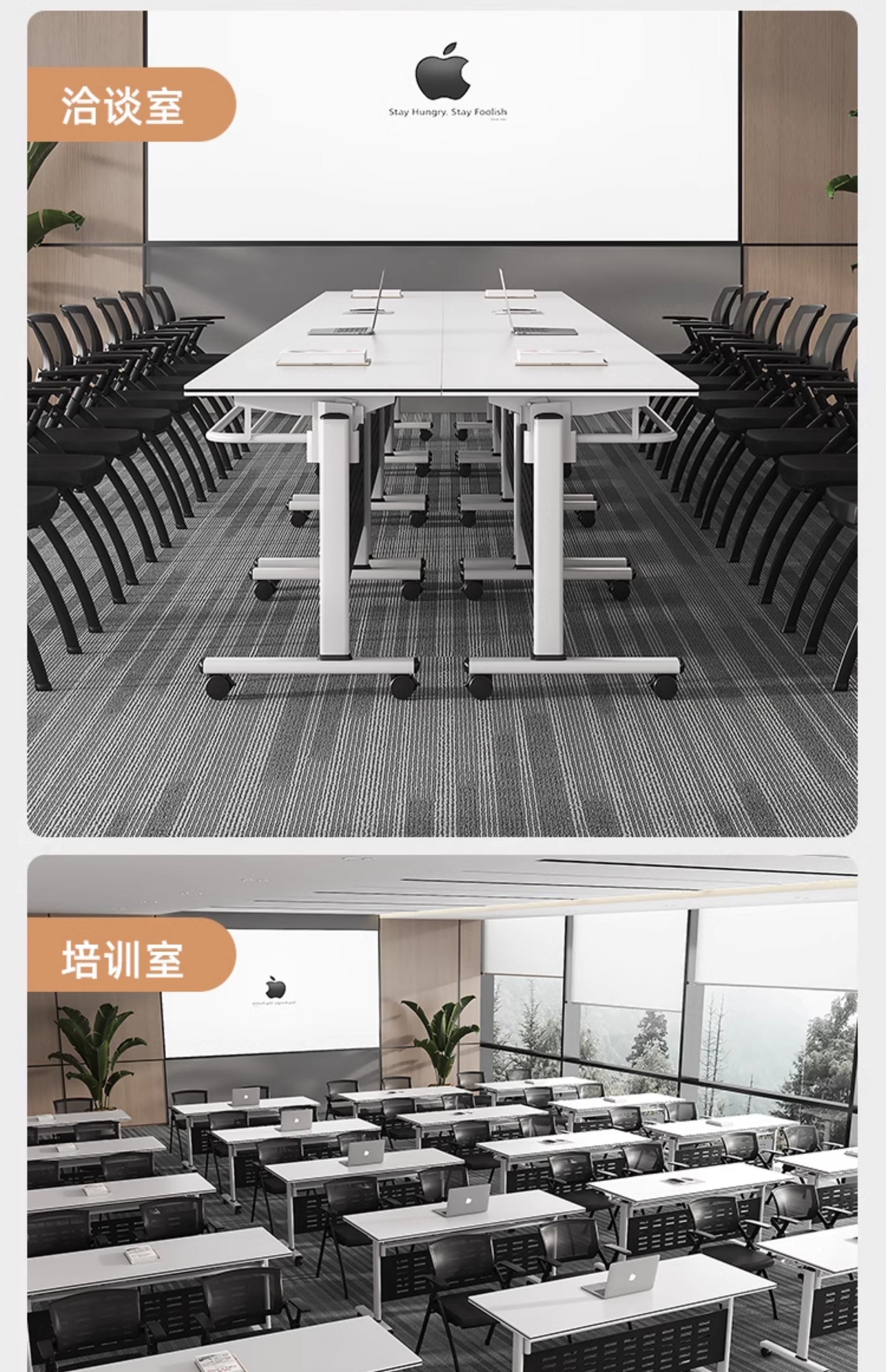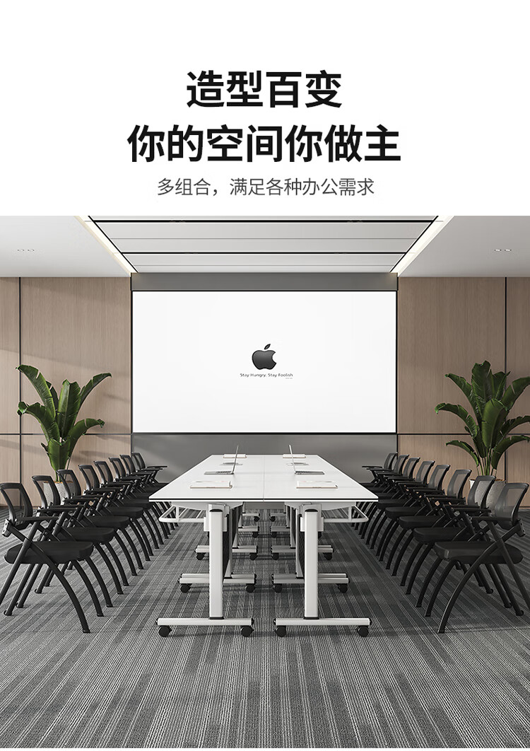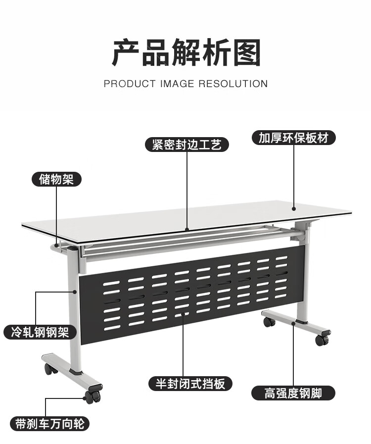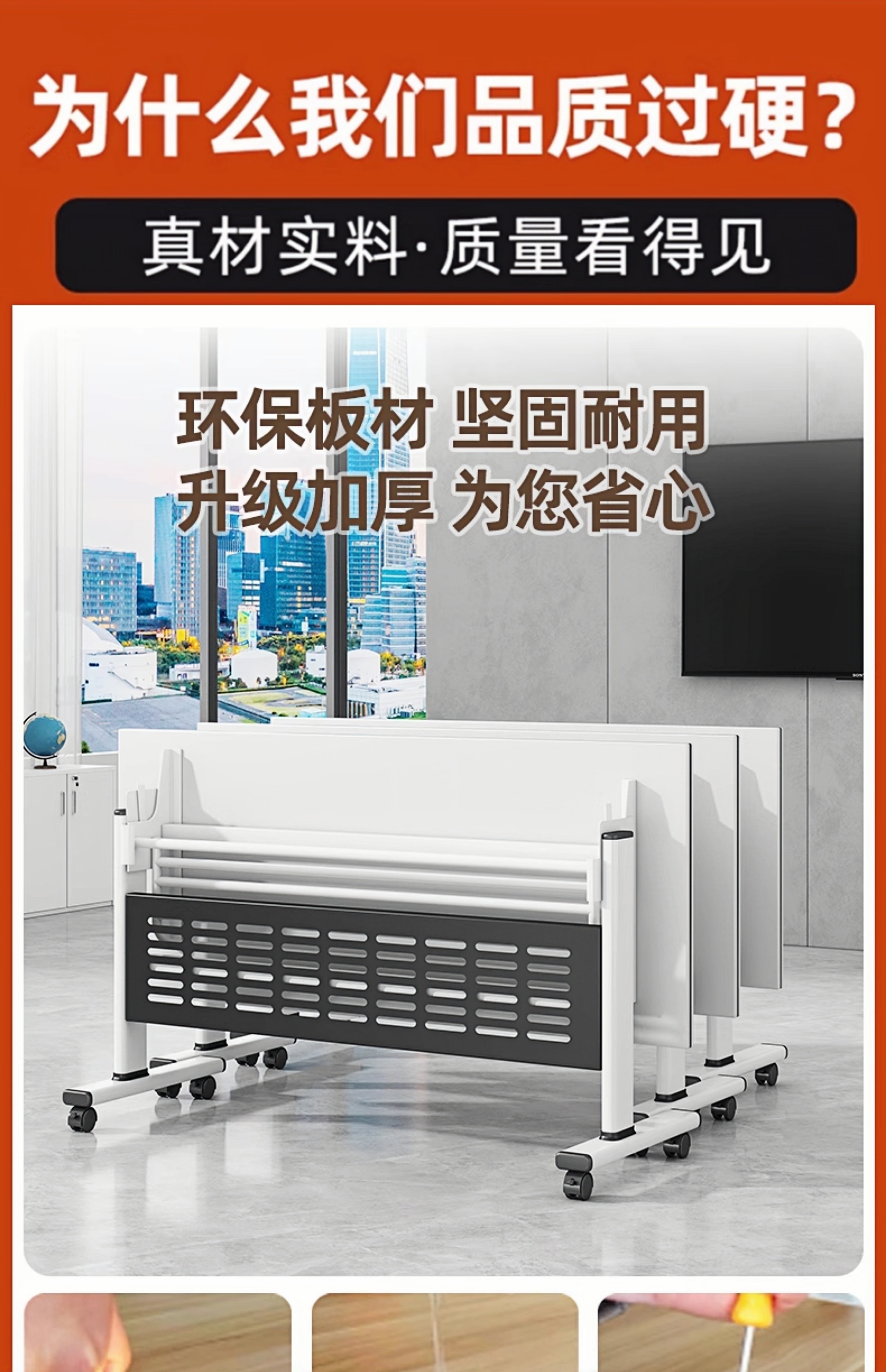 Folding conference table and chairs, removable splicing long table with wheels, multi-functional office desk, training desk and chair combination, length 1200*width 400*height 750-white, self-installation