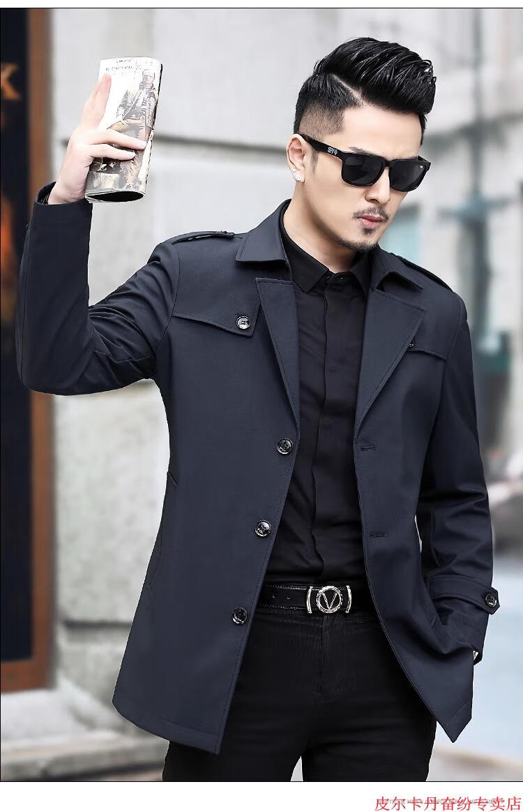 Pierre Cardin Весенне-осенняя хлопковая теплая ветровка Короткая деловая мужская куртка с воротником в британском стиле Модный повседневный вязаный синий топ