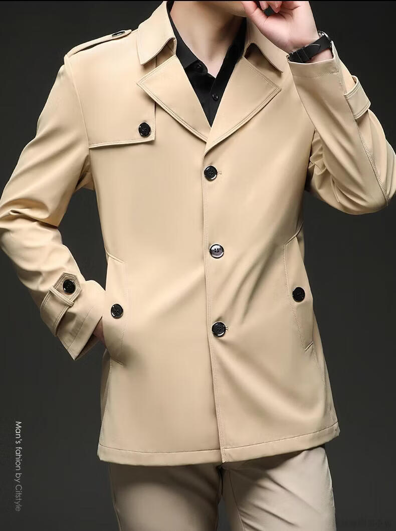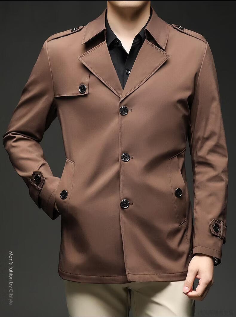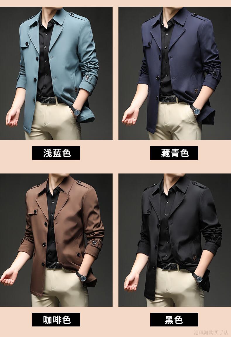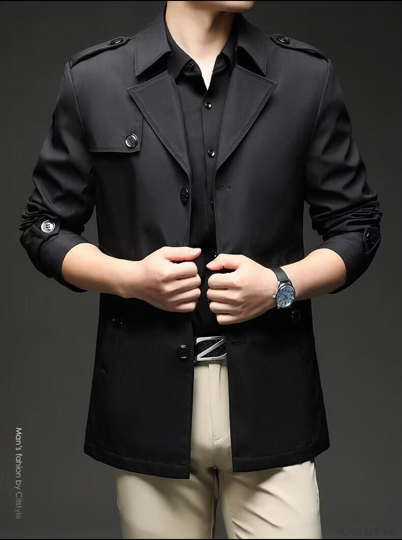 SUSTYLE国际奢侈品牌2025春秋冬季新款风衣青年男士纯色翻领外套 春秋黑色 薄款 8XL (可穿245-265斤)
