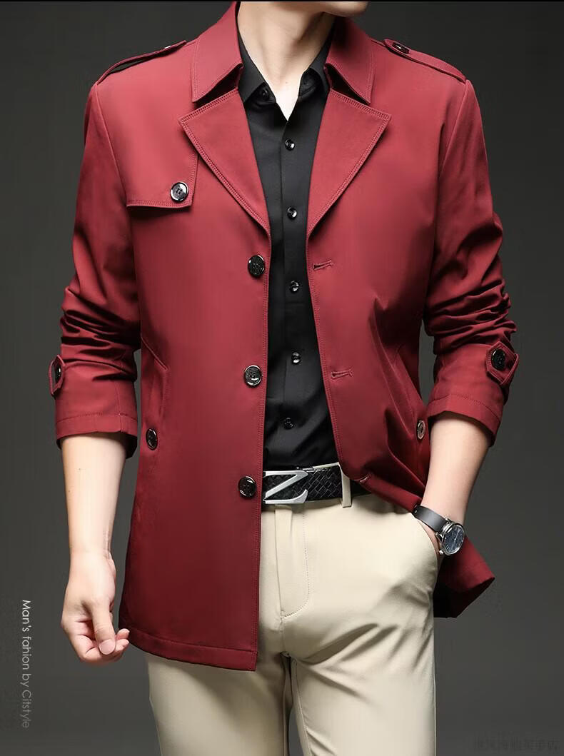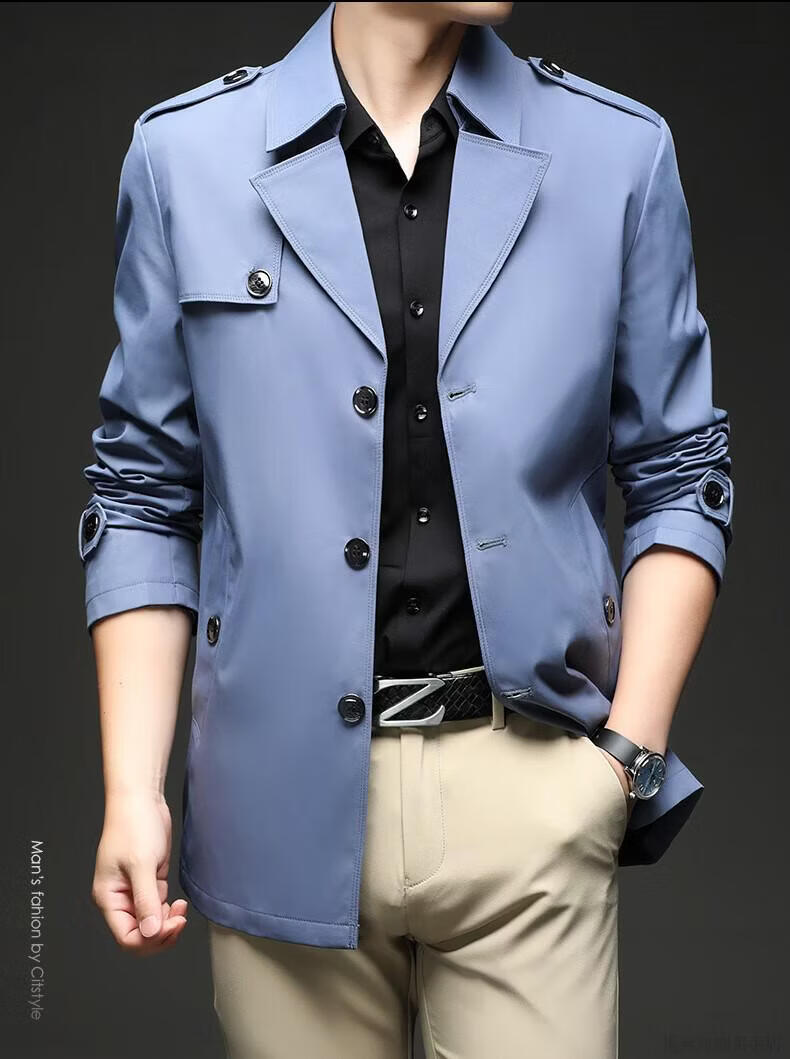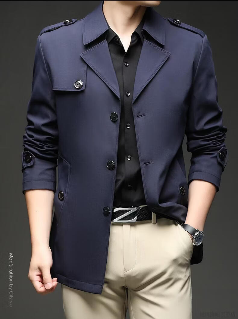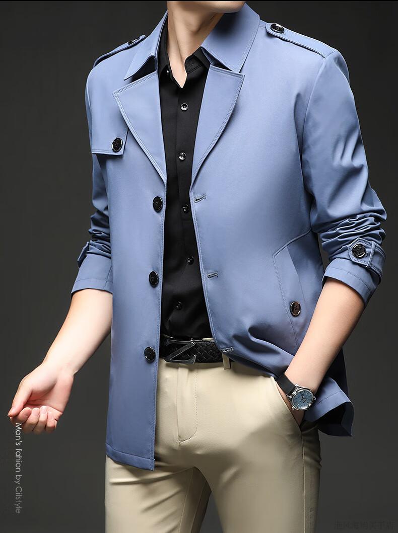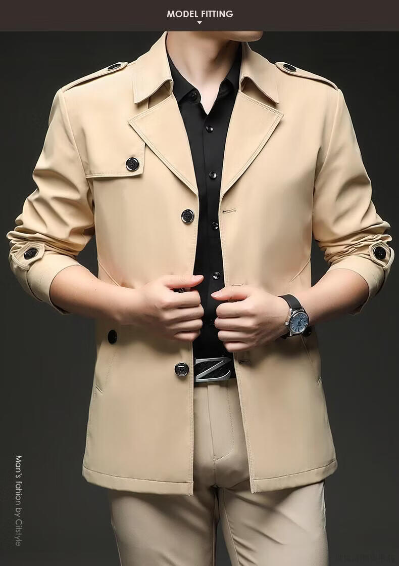 SUSTYLE国际奢侈品牌2025春秋冬季新款风衣青年男士纯色翻领外套 春秋黑色 薄款 8XL (可穿245-265斤)