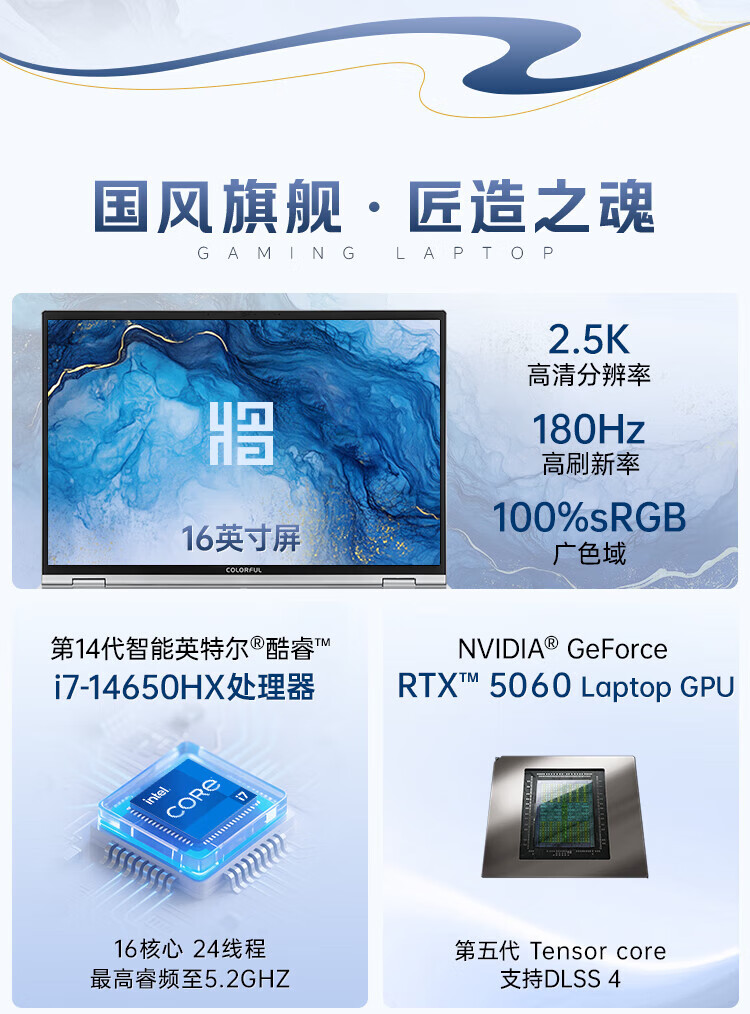 Colorful X16pro 16-inch large-screen gaming notebook 14th generation HX standard pressure processor equipped with RTX5060/5070 full-blood independent high-performance laptop SR7 i7-14650HX/RTX5060-8G 16G memory + 1TBpice solid state drive official standard 180HZ high brush