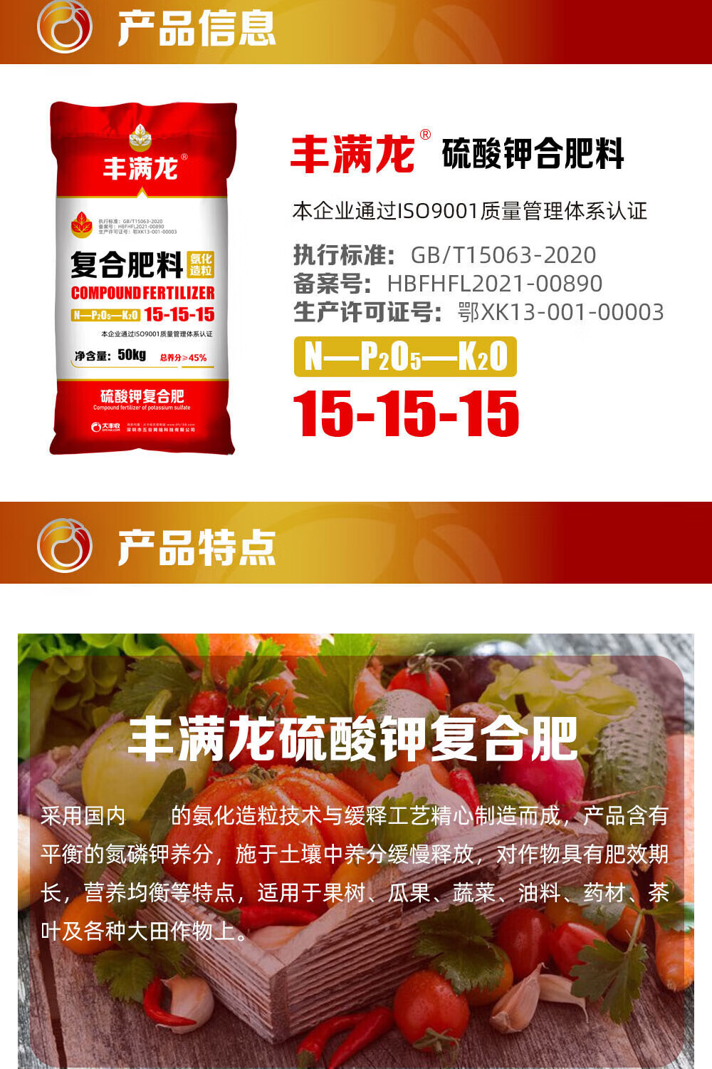 丰满龙复合肥15-15-15高浓度硫酸钾氮磷钾平衡肥果树蔬菜花卉通用 平衡复合肥100斤