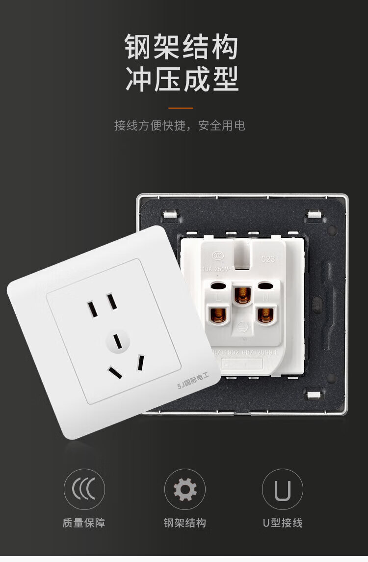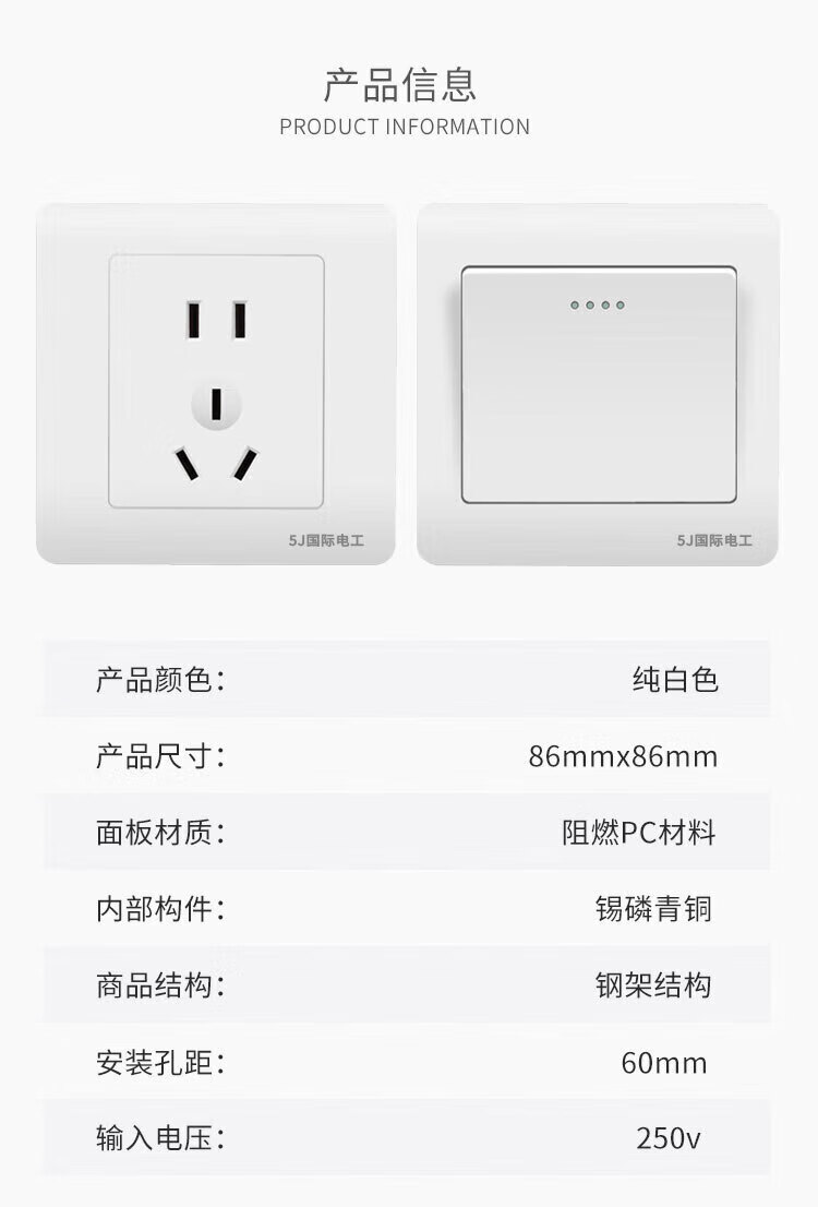 Bull 86 weiß verdeckte Einzelsteuerungs-Schaltsteckdose für den Haushalt, eine offene Doppelsteuerung mit Fünf-Loch-Lichtschalter Bull-One, offene Fünf-Loch-Doppelsteuerung (Stahlrahmen)