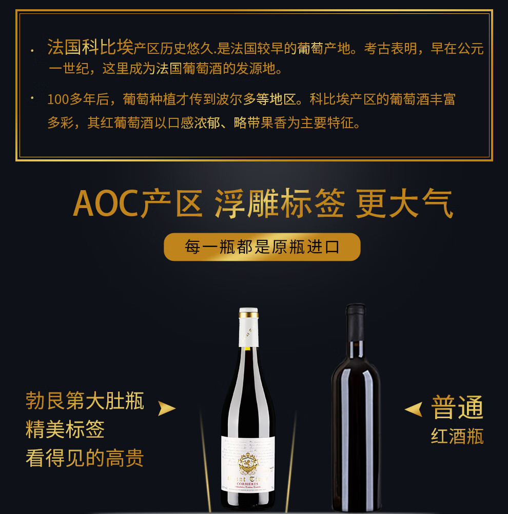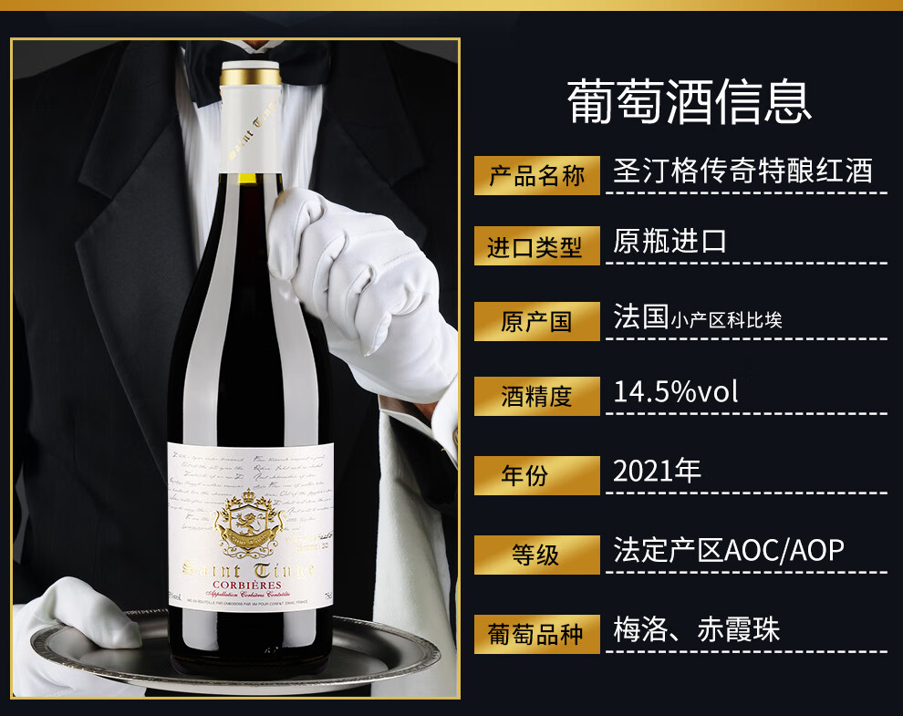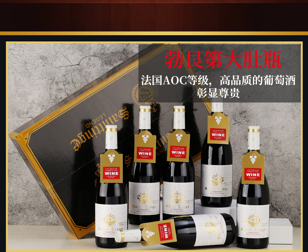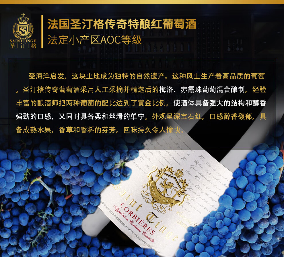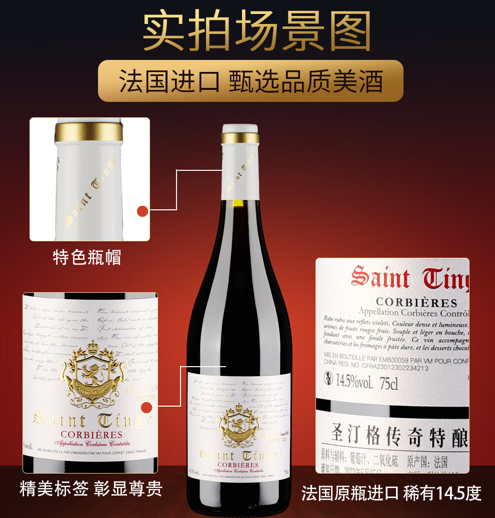 圣汀格(SAINT TINGE)法国原瓶进口红酒 金奖AOC级 14.5度干红葡萄酒 婚宴自饮节日送礼 【金奖红酒】单支装750ml*1瓶