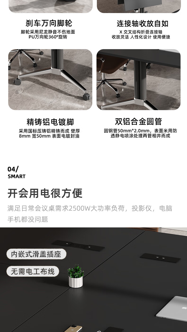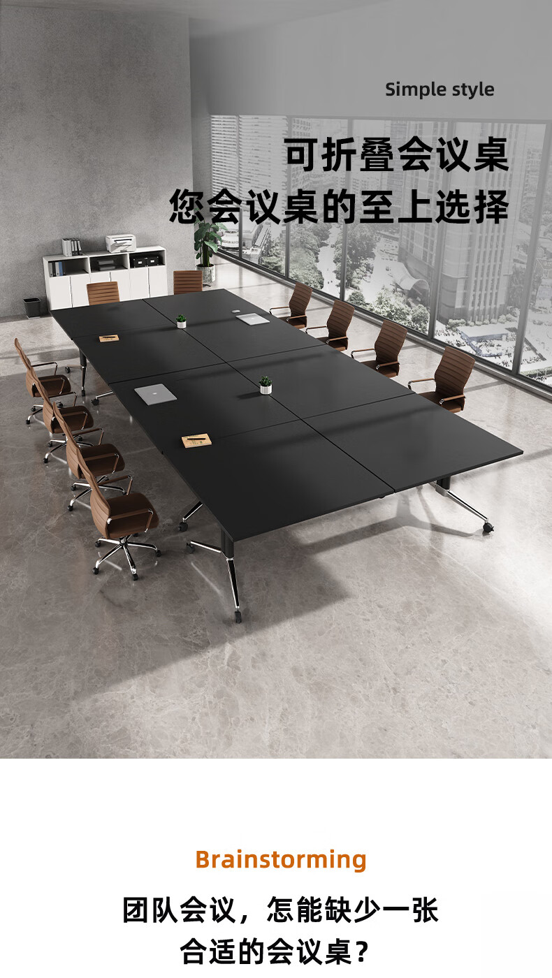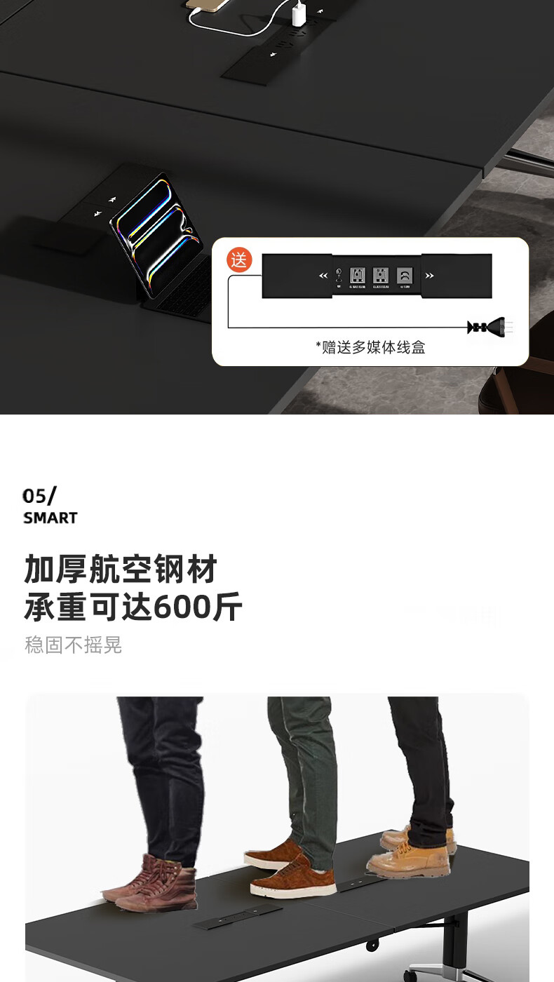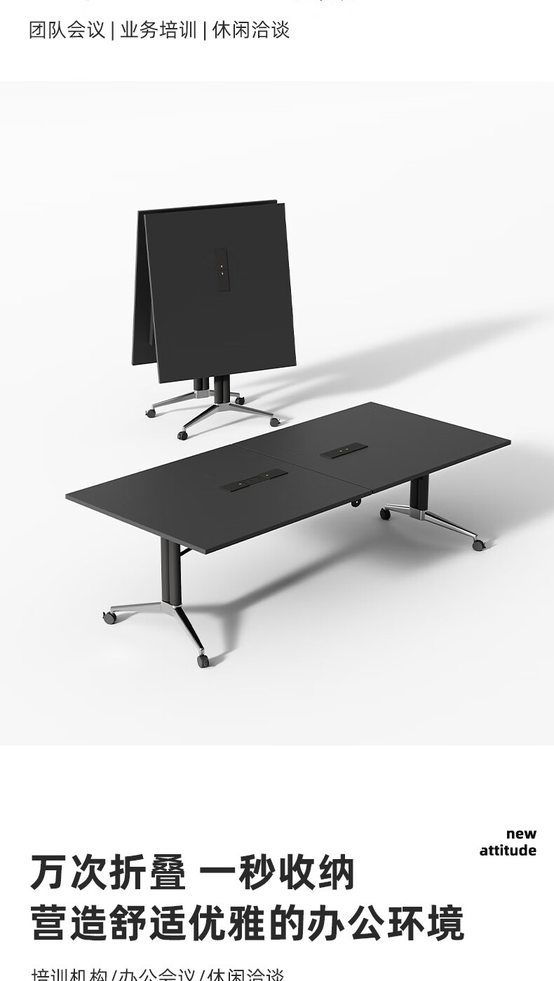 迈亚家具折叠会议桌可移动长条桌移动拼接折叠桌多功能大书桌培训桌包送装 1.6*0.8米 商务黑【无插排】包安装