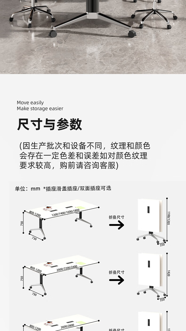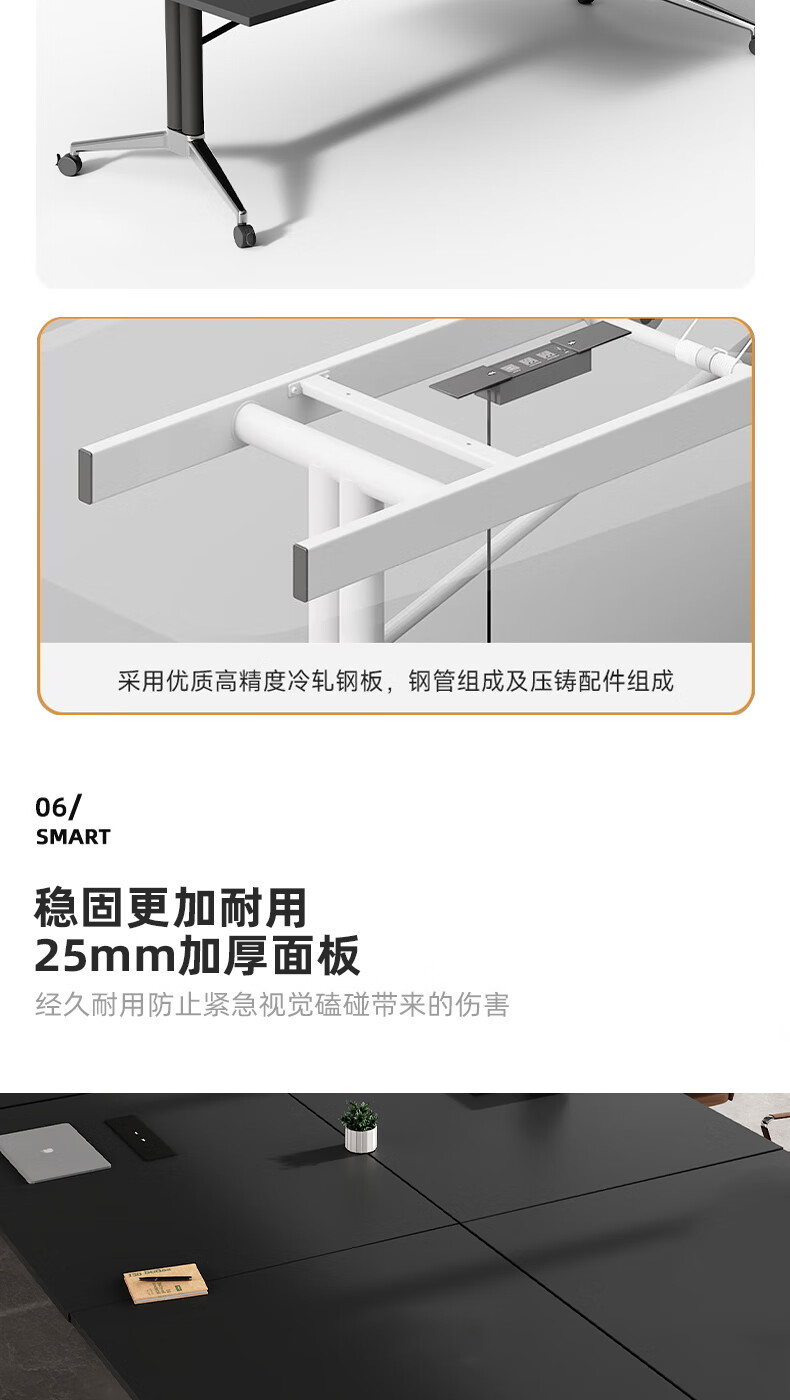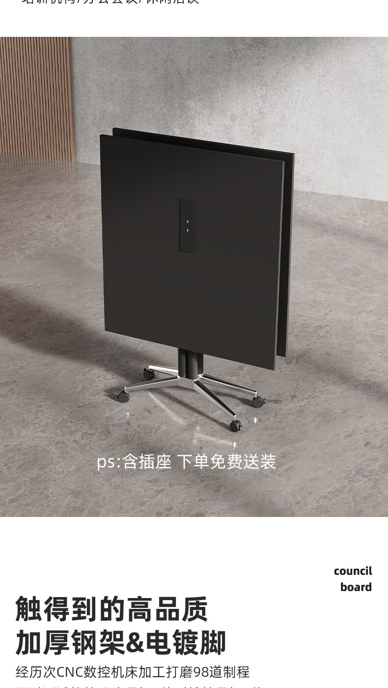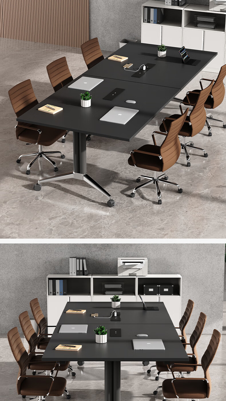 迈亚家具折叠会议桌可移动长条桌移动拼接折叠桌多功能大书桌培训桌包送装 1.6*0.8米 商务黑【无插排】包安装