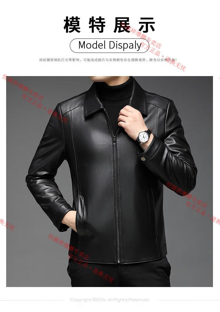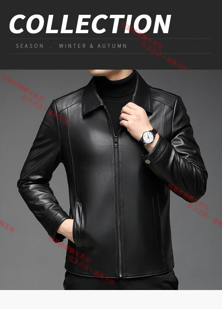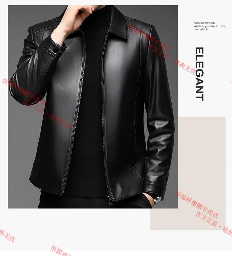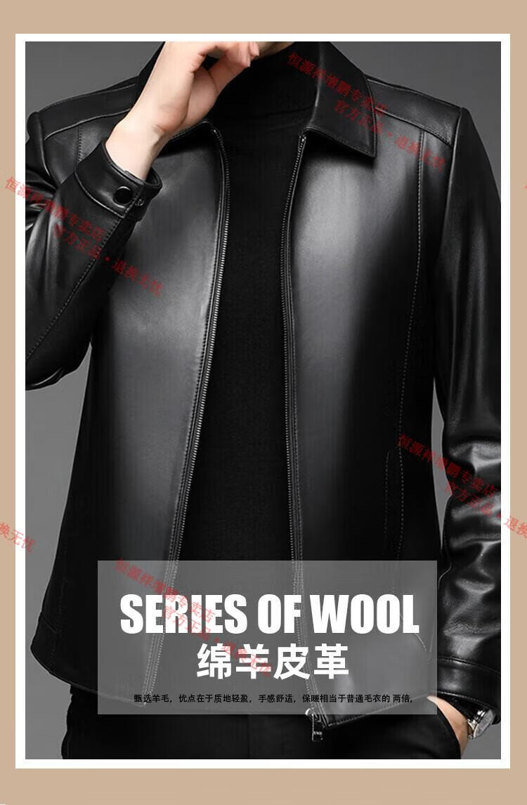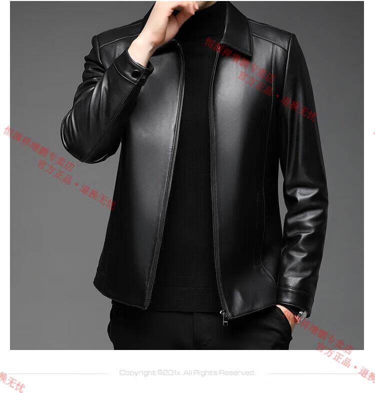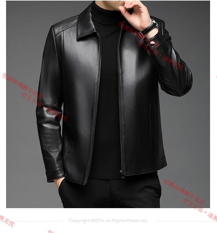Hengyuanxiang Куртка из натуральной кожи, мужская куртка из овчины в деловом стиле с лацканами для папы среднего возраста, осенне-зимняя высококачественная кожаная куртка, толстая черная 2XL 180/100A