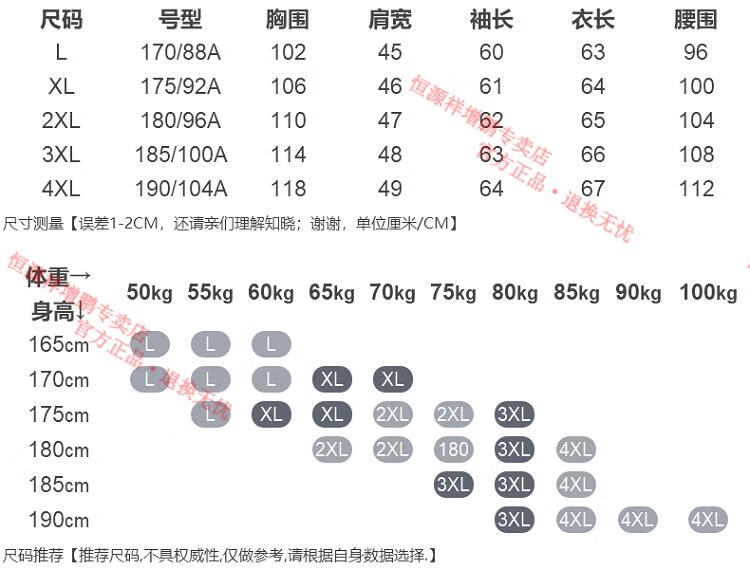 China (cm) 160-165/84-86 165-170 / 88-90 167-172 / 92-96 168-173 / 98-102 170-176 / 106-110