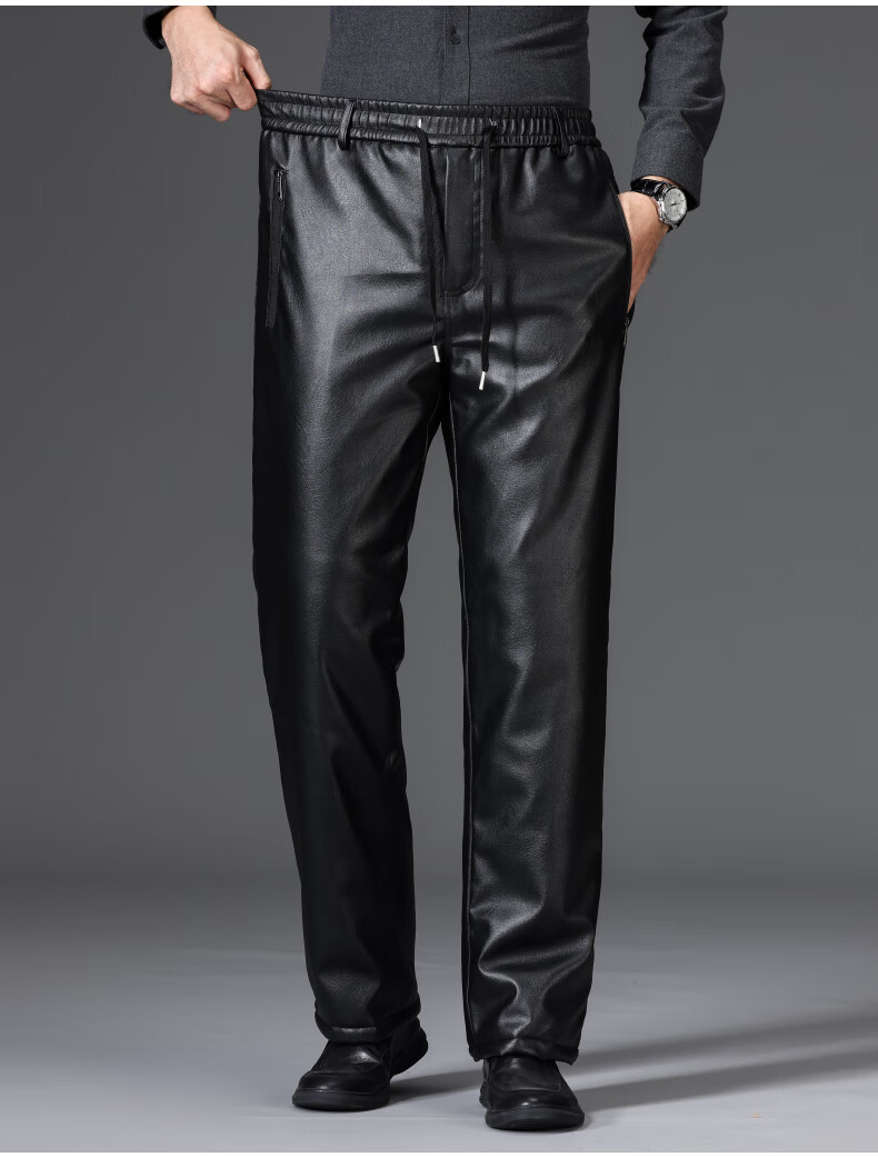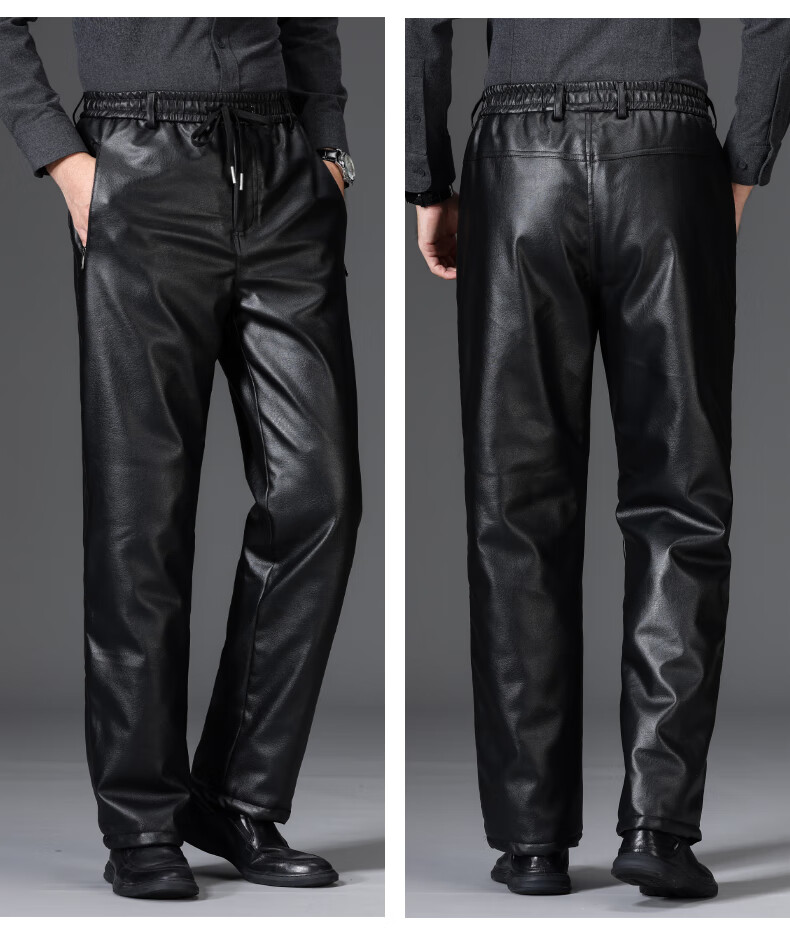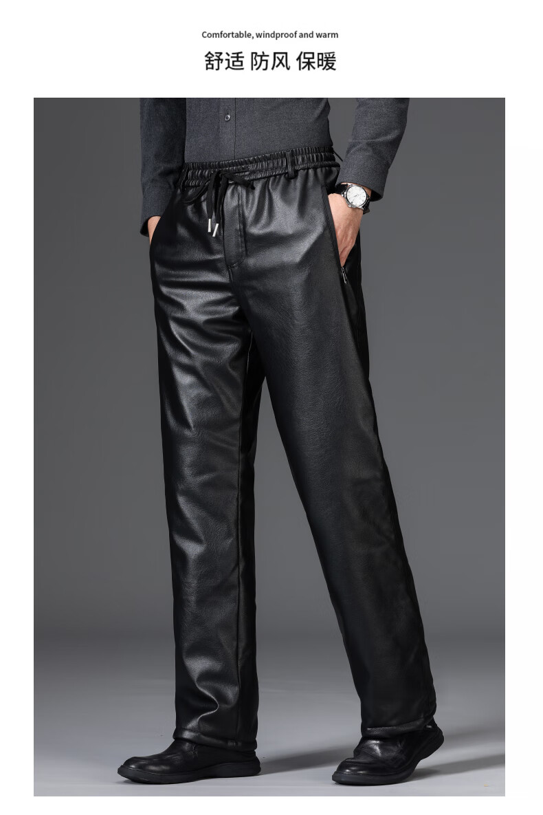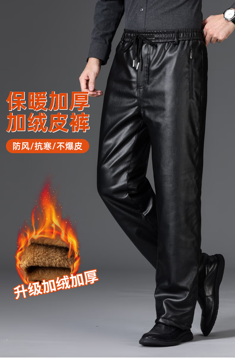 皮裤男款加绒加厚冬季宽松中老年男士摩托车外卖骑行防水保暖裤子 LK-防风皮裤黑色 5XL 约170-190斤可穿