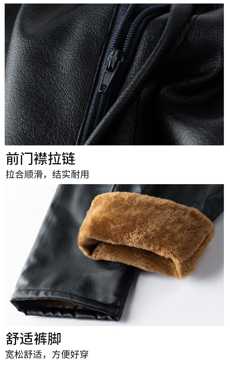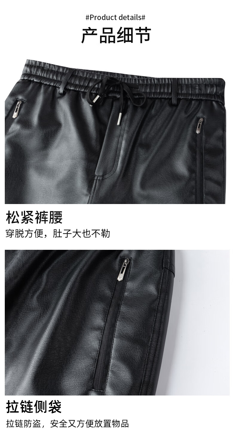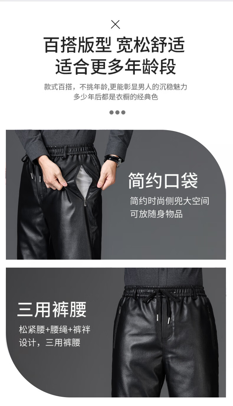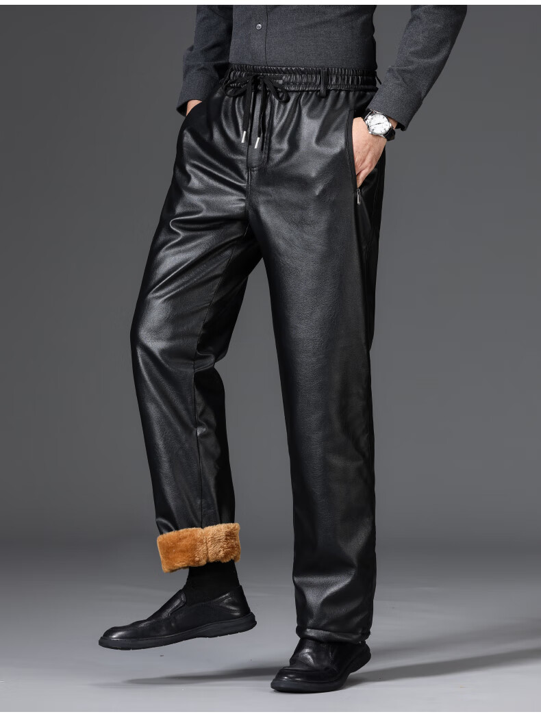 皮裤男款加绒加厚冬季宽松中老年男士摩托车外卖骑行防水保暖裤子 LK-防风皮裤黑色 5XL 约170-190斤可穿