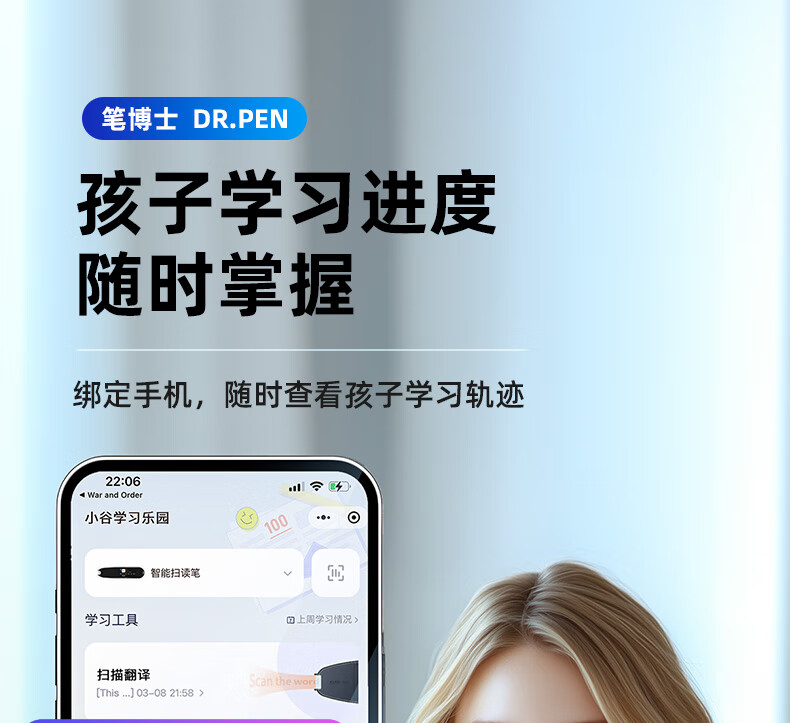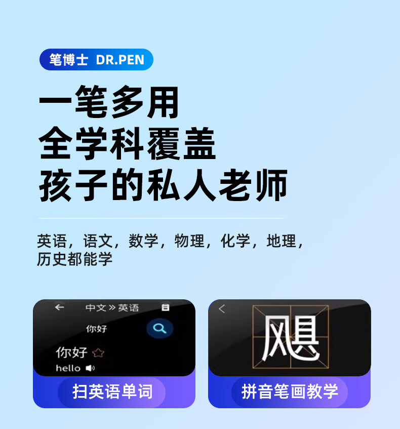 笔博士(DR.PEN)点读笔扫描笔点读机翻译笔英语学习词典笔小学生初高中通用智能人教版电子词典中小学同步 2025新版-天使蓝(不限书本+扫题答疑+小初高)