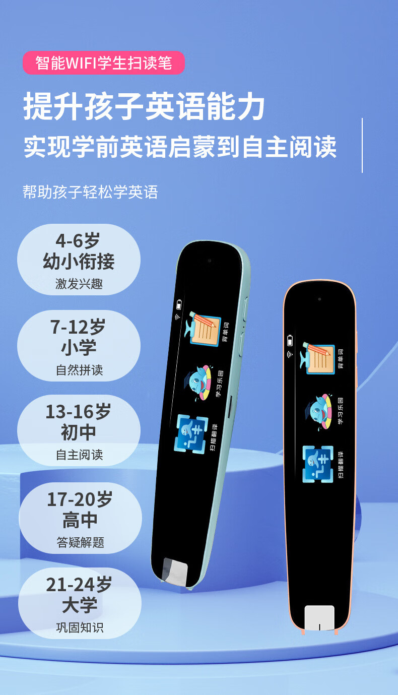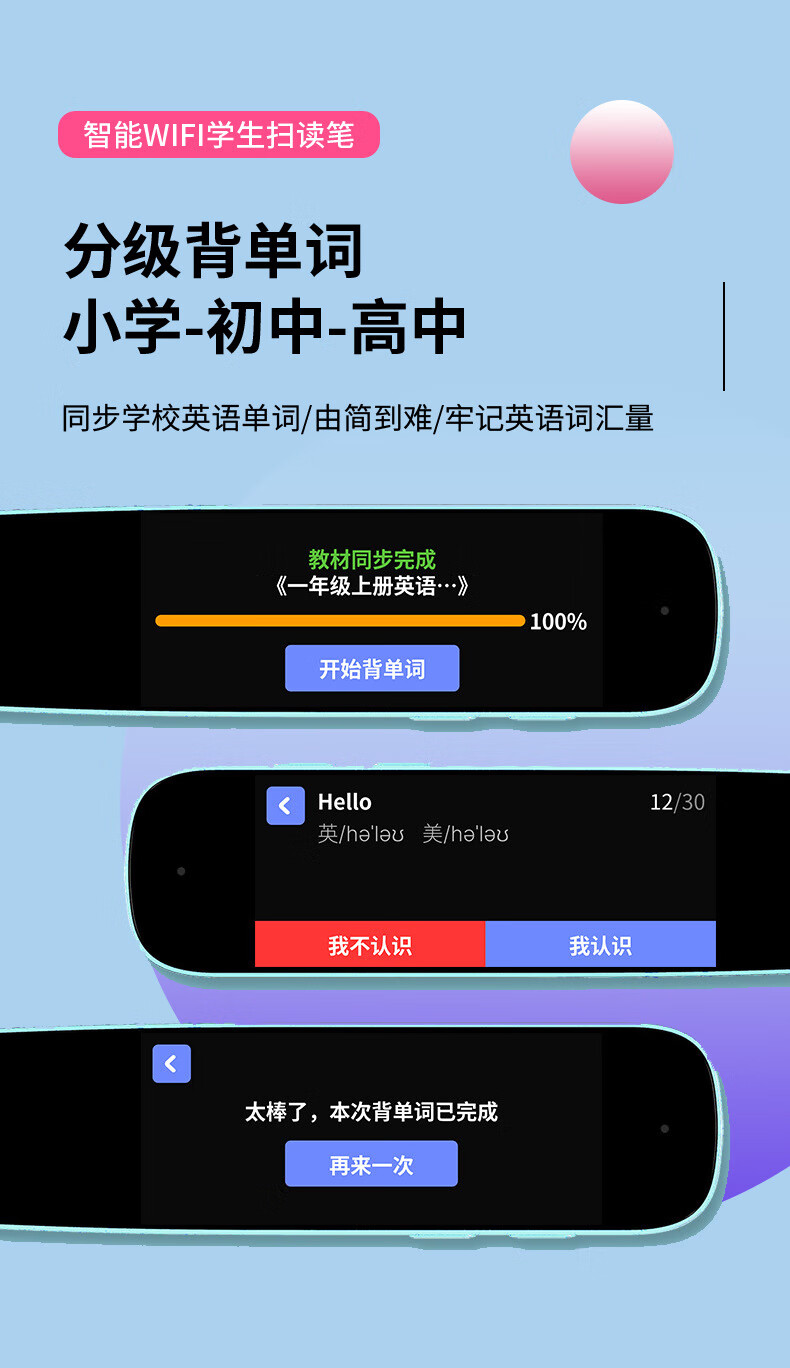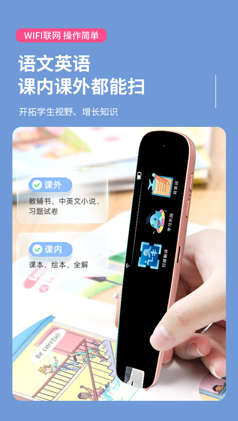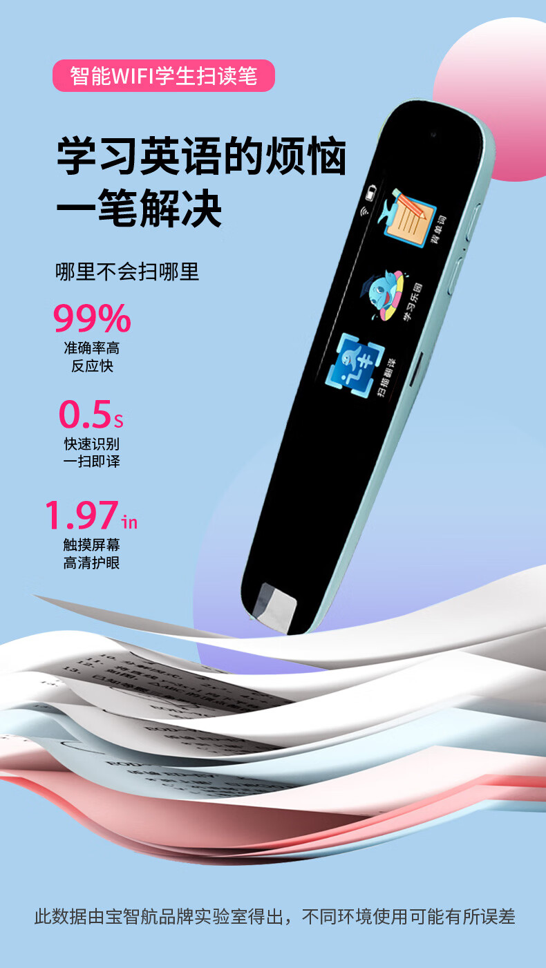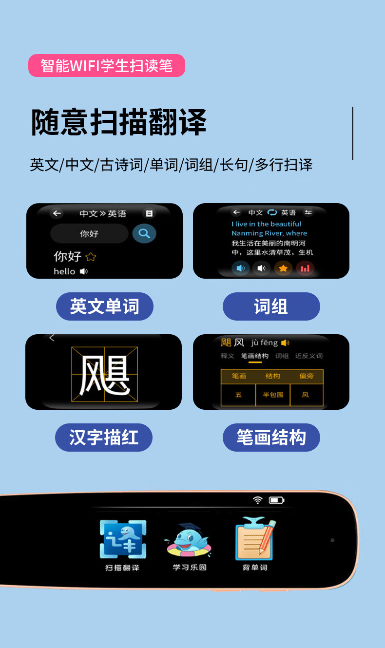 点读笔全科扫描笔多功能翻译笔小学初高中英语学习神器智能通用词典 【A2】WiFi版-粉色-1.97寸 标配+防摔套