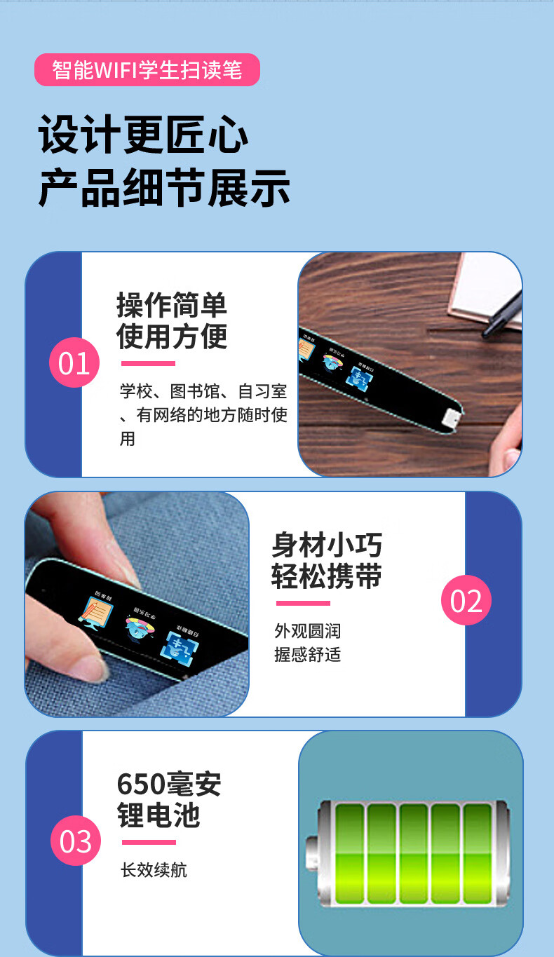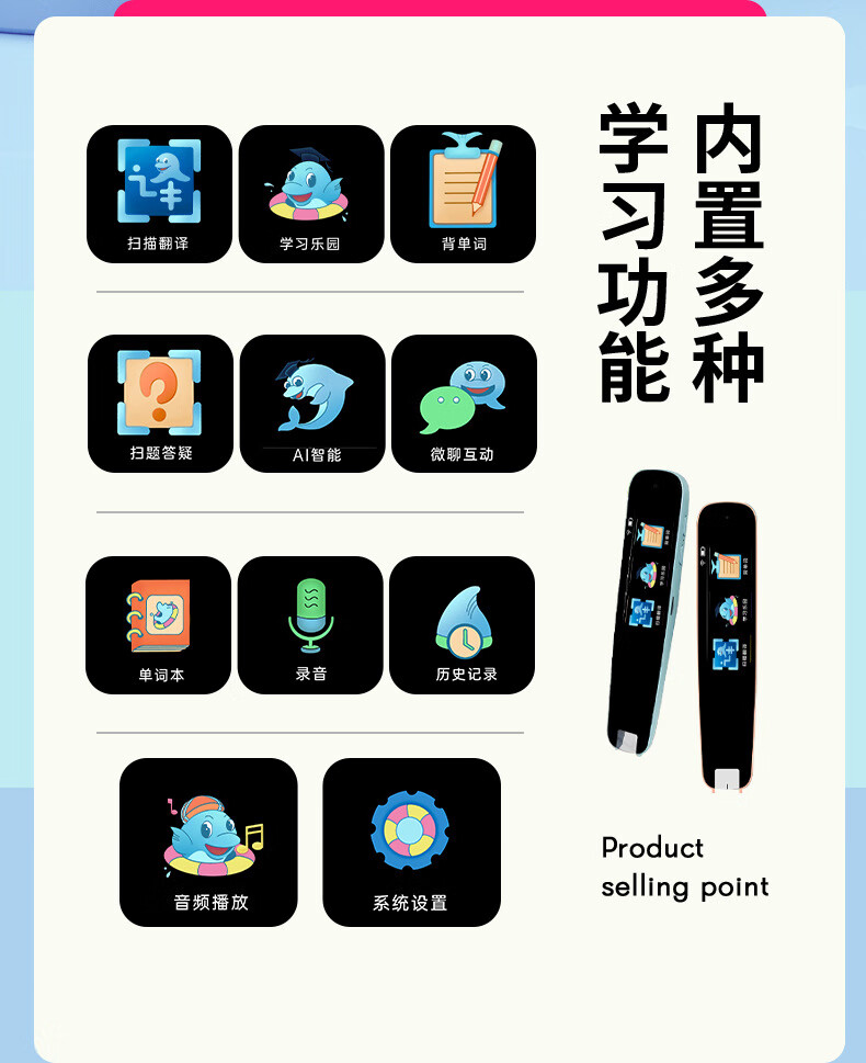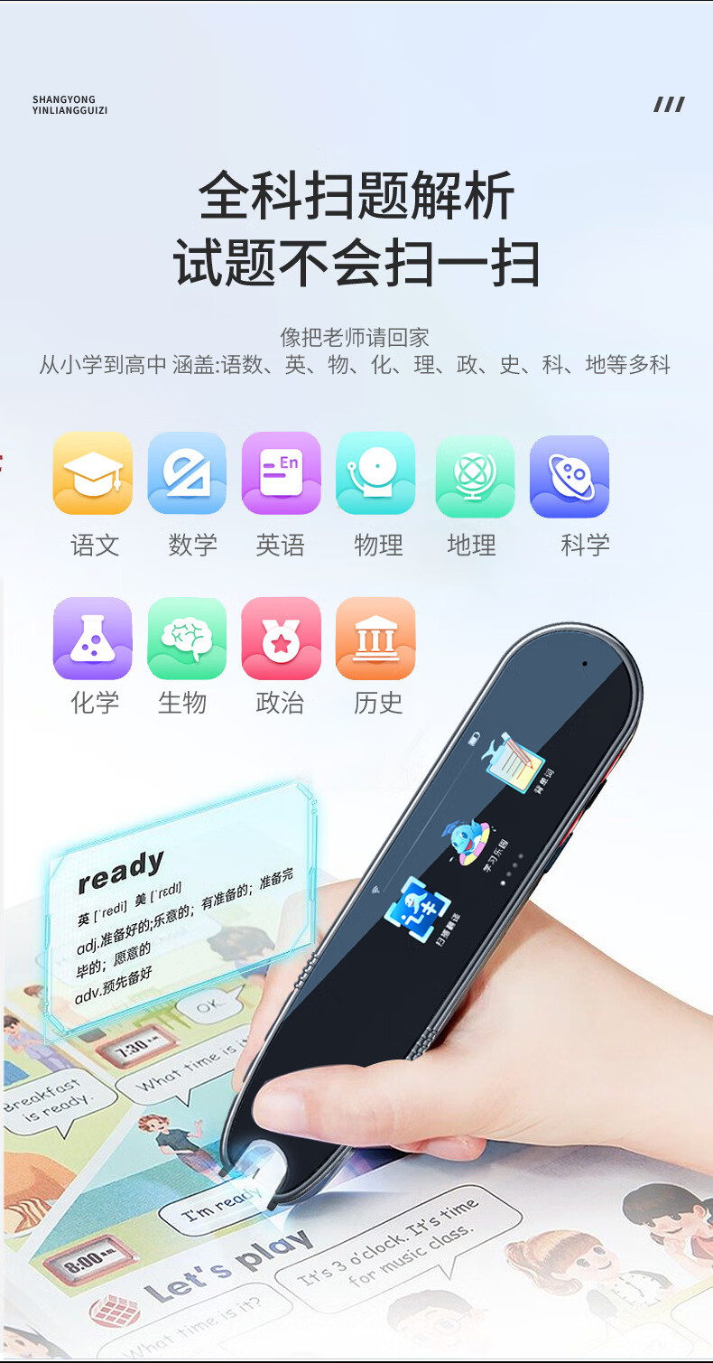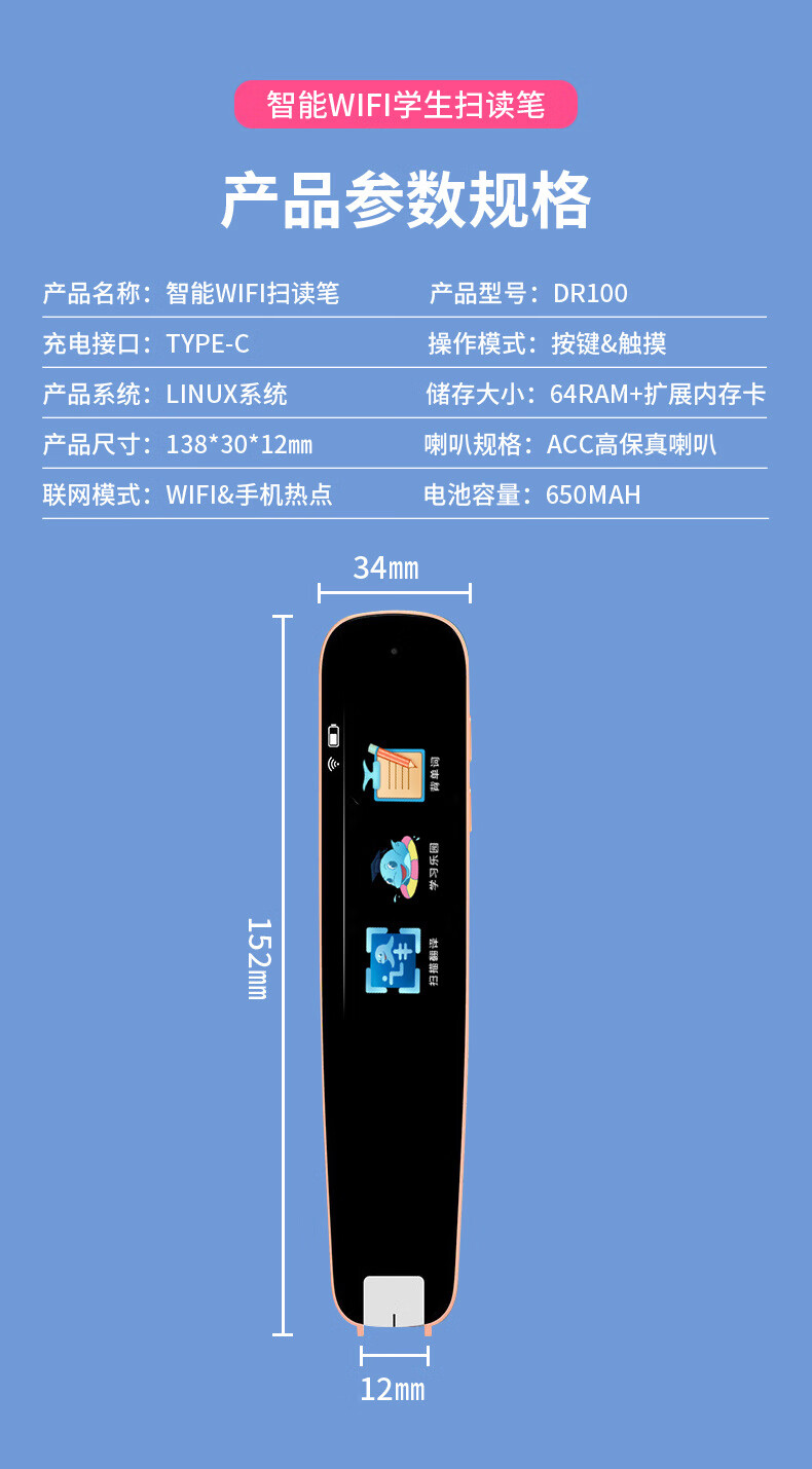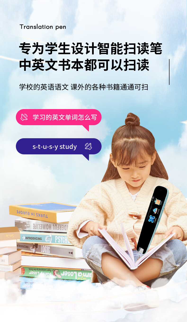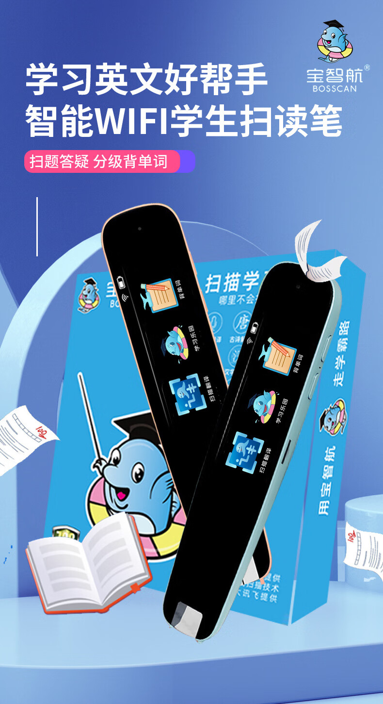 点读笔全科扫描笔多功能翻译笔小学初高中英语学习神器智能通用词典 【A2】WiFi版-粉色-1.97寸 标配+防摔套