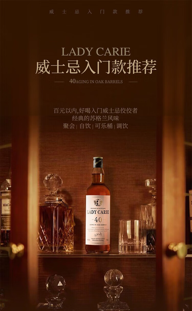 派斯顿(PASSTON)苏格兰洋酒威士忌40°烈酒酒吧可乐桶微醺自饮调酒聚会圣诞送礼 卡尔夫人整箱700ml