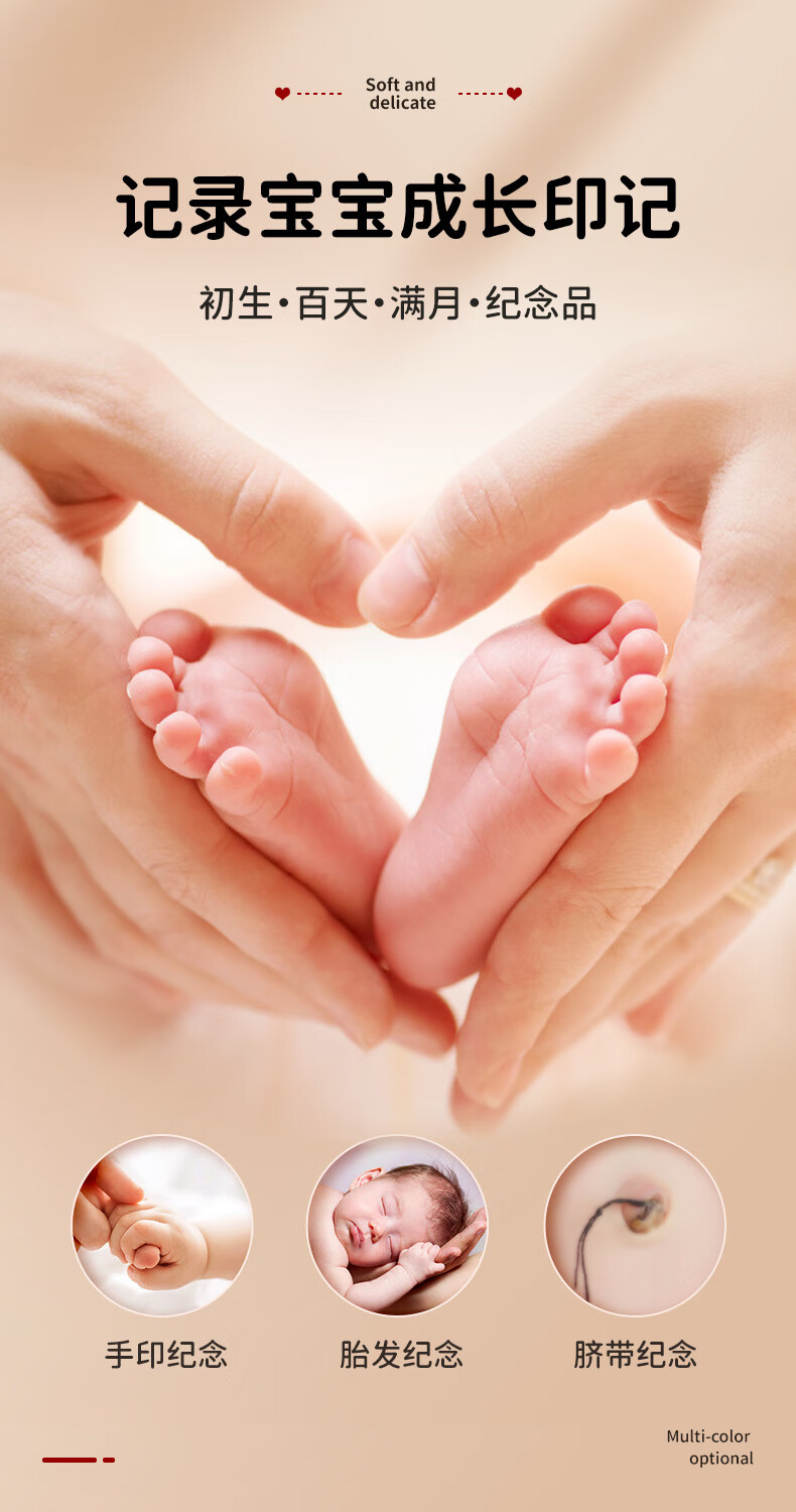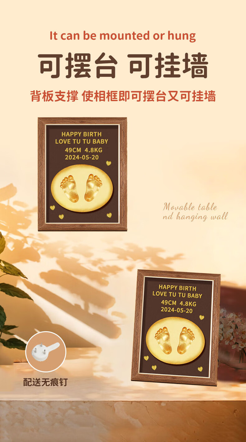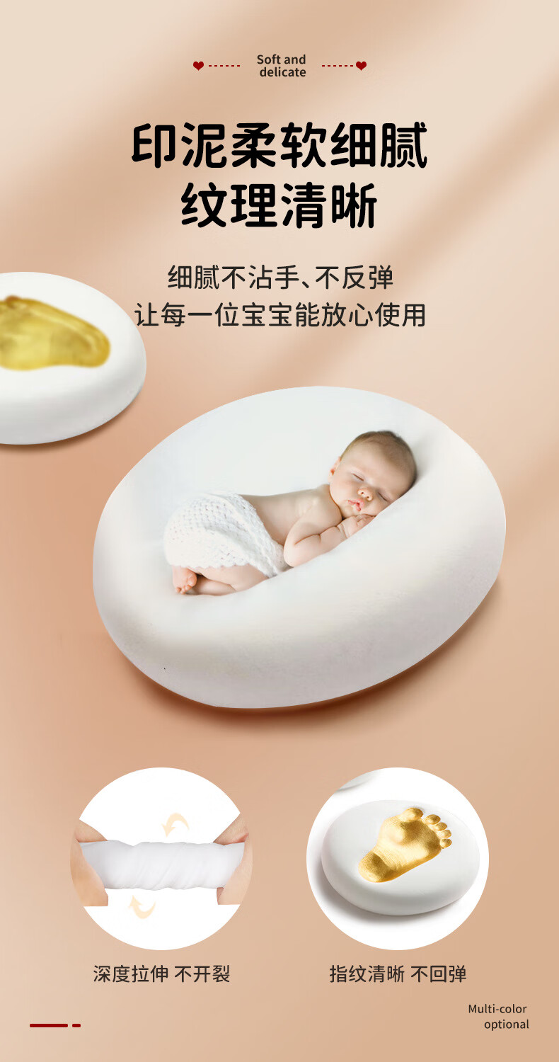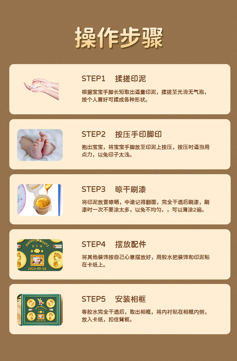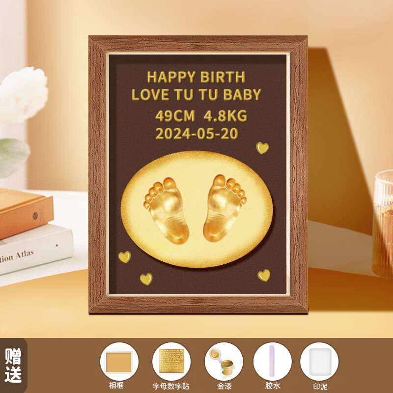 UOSU周岁手足印宝宝周岁礼满月纪念品新生儿百天手足印泥生日装饰礼物 宝宝周岁礼【胡桃色】