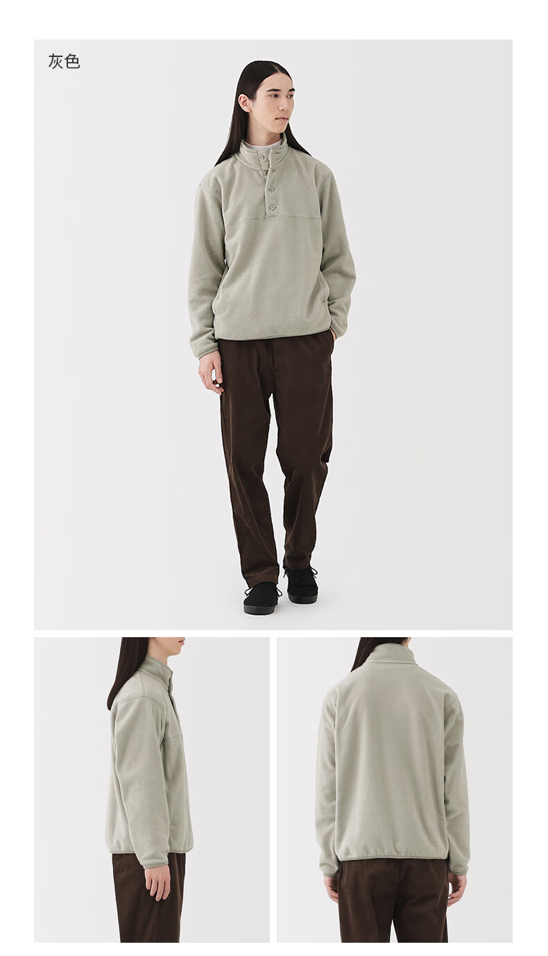 Мужской флисовый пуловер MUJI, мужской свитер, мужская одежда для мальчиков, 25 зимних топов, AB1P9A5A, темно-серый, L (175/100A)
