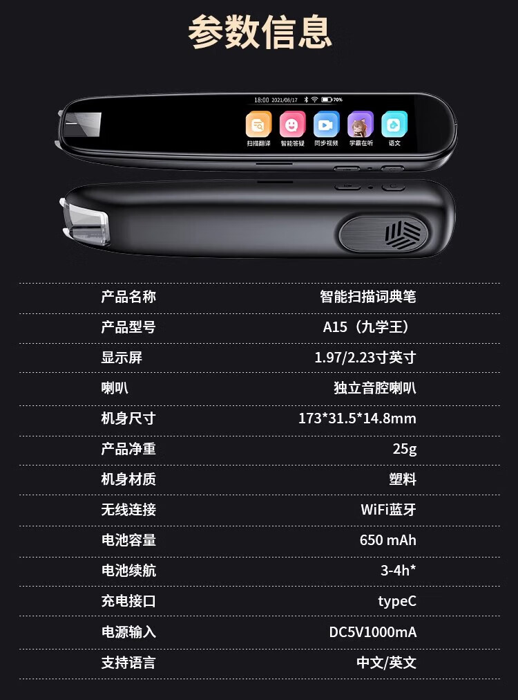 科大讯飞(iFLYTEK)适用科大翻译技术英语点读笔扫读笔多功能学生单词扫描翻译中英词典笔 黑色旗舰款/电视投屏/扫题答疑/九门同步 官方标配